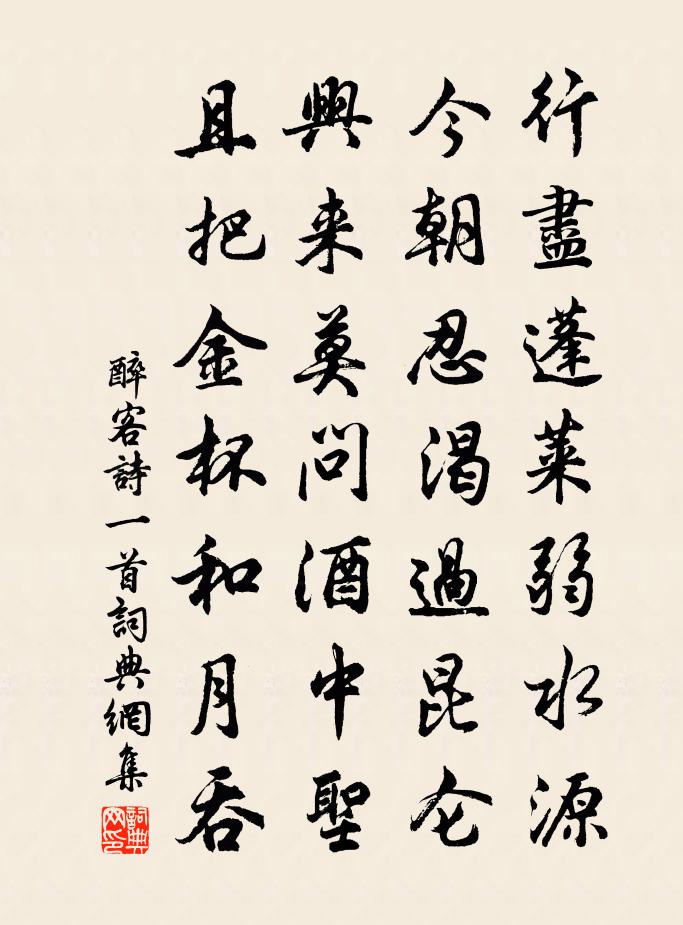 詩詞名句歷史字典書法欣賞書法字典國語詞典說文解字康熙字典古漢語字典標 題 作 者 詩 句 詩一首作者:醉客 朝代:宋代詩一首原文行盡蓬萊弱水源,今朝忍渴過崑崙。興來莫問酒中聖,且把金杯和月吞。詩詞問答問:詩一首的作者是誰?答:醉客問:詩一首寫於哪個朝代?答:宋代醉客詩一首書法欣賞詩一首書法作品詩詞推薦寄澶州孫司理祖無擇〔宋代〕明道二年同夏課,四人兩舉盡登科。孤寒惟子辛勤甚,虛薄伊余忝竊多。宦路驅馳今各自,名場出處舊相過。感今薄薄酒二首蘇軾〔宋代〕薄薄酒,飲兩鍾;粗粗布,著兩重;美惡雖異醉暖同,醜妻惡妾壽乃公。隱居求志義之從,本不計較東華塵土北窗送楊義甫訪雲林子王冕〔元代〕公子翩翩孰與儔?雲林清氣逼高秋。牙籤耀日書充屋,彩筆凌煙畫滿樓。既是有樽開北海,豈雲無榻下南州?相逢聞南盜方回〔宋代〕試與呼蒼昊,云何共綠林。誰歟能受諫,吾欲告司箴。稍有偷生路,應無守死心。古書今不信,衰腐獨沈吟。織婦釋智圓〔宋代〕九月風高未授衣,燈前軋軋夜鳴機。困來不覺支頤睡,鼠齧絲頭四散飛。十二月二十九夜大雪三首楊公遠〔宋代〕六出霏霏餞歲華,終宵撩亂撲窗紗。未言造化工夫巧,且看乾坤景角奢。□□□□□□□,□□□□□□□藥。明下第送宋秀才游岐下、楊秀才還江東許渾〔唐代〕年來不自得,一望幾傷心。風轉蕙蘭色,月移松桂陰。馬隨邊草遠,帆落海雲深。明旦各分首,更聽梁甫吟。金沙井楊蟠〔宋代〕細細沙痕落,流金在井泉。山人邀我飲,化骨共為仙。江湖偉觀趙希桐〔宋代〕華屋巋然占上方,一尊同此寄相羊。江潮翻海莫天闊,湖水拍堤春草長。莽莽越山凝紫翠,搖搖蘇柳間青黃。歸鴻游近山陸游〔宋代〕羸病知難賦遠遊,尚尋好景送悠悠。亂山孤店雁聲晚,一馬二童溪路秋。掃壁有僧求醉墨,倚樓無客話清愁。殘年浣溪沙(建康次韻范元長送邢子方)趙鼎〔宋代〕惜別懷歸老不禁。一年春事柳陰陰。日下長安何處是,碧雲深。已恨梅花疏遠信,休傳桃葉怨遺音。一醉東風分首岳陽別李十七越賓王昌齡〔唐代〕相逢楚水寒,舟在洞庭驛。具陳江波事,不異淪棄跡。杉上秋雨聲,悲切蒹葭夕。彈琴收餘響,來送千里客。平明獻池州牧杜荀鶴〔唐代〕池陽今日似漁陽,大變凶年作小康。江路靜來通客貨,郡城安後絕戎裝。分開野色收新麥,驚斷鶯聲摘嫩桑。縱有和仲伯達蘇軾〔宋代〕歸山歲月苦無多,尚有丹砂奈老何。繡谷只應花自染,鏡潭長與月相磨。君方傍海看初日,我已橫江擊素波。人不挽故司徒侍中贈尚書令韓魏公三首強至〔宋代〕西北油幢疊總戎,六年幕府從裴公。談兵玉帳知何在,宴客金錢定已空。麟閣英姿隨爽氣,鳳池陳跡想清風。白頭谿亭次汪桐陽陳一齋〔宋代〕空亭明遠嶂,老樹黯餘曛。野興臨流坐,秋聲入夜聞。漁歸孤棹月,鶴睡一松雲。記得前溪路,人家兩岸分。送呂周輔宗丞守崇慶樓鑰〔宋代〕從昔傳家學,當今良史才。聲名冠西蜀,風節象東台。朝跡何收速,歸心挽不回。一麾從此去,萬里可能來。試院感懷張舜民〔宋代〕朱戶簾當晝扃,簾霜簾達夜簾懸。沈沈造廣庭,皞皞接眾賢。疏莛叩洪鐘,短綆汲深淵。始知學不迨,內顧多歉然十疊劉克莊〔宋代〕才得幾朝渾拆遍,只消一霎又吹空。何曾學舞能回雪,便不為台與避風。恩賜魏文貞公諸孫舊第,以導直臣裴大章〔唐代〕邢茅雖舊錫,邸第是初榮。跡往傷遺事,恩深感直聲。雲孫方慶襲,池館忽春生。古甃開泉井,新禽繞畫楹。自然名句推薦何當痛飲黃龍府,高築神州風雨樓李大釗《口占一絕(壯別天涯未許愁)》 梧桐半死清霜後,頭白鴛鴦失伴飛。賀鑄《半死桐·重過閶門萬事非》 昔孟母,擇鄰處。子不學,斷機杼。王應麟《三字經·全文》 白雲映水搖空城,白露垂珠滴秋月。李白《金陵城西樓月下吟》 相看兩不厭,只有敬亭山。李白《獨坐敬亭山》 平生端有活國計,百不一試薶九京。黃庭堅《送范德孺知慶州》 性靜情逸,心動神疲。周興嗣《千字文·全文》 稽於眾,捨己從人,不虐無告,不廢困窮佚名《尚書·虞書·大禹謨》 求得人間成小會,試把金尊傍菊叢。晏殊《破陣子·燕子欲歸時節》 黃鸝囀處誰同聽,白菊開時且剩過。司空圖《白菊雜書四首》