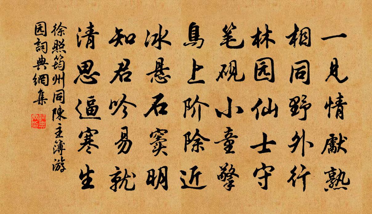 詩詞名句歷史字典書法欣賞書法字典國語詞典說文解字康熙字典古漢語字典標 題 作 者 詩 句 筠州同陳主簿遊園作者:徐照 朝代:宋代筠州同陳主簿遊園原文一見情先熟,相同野外行。林園仙士守,筆硯小童擎。鳥上階除近,冰懸石竇明。知君吟易就,清思逼寒生。詩詞問答問:筠州同陳主簿遊園的作者是誰?答:徐照問:筠州同陳主簿遊園寫於哪個朝代?答:宋代徐照筠州同陳主簿遊園書法欣賞筠州同陳主簿遊園書法作品詩詞推薦索居三首蘇轍〔宋代〕索居非謫地,垂老更窮途。去住看人意,幽憂賴我無。小園花草穢,陋巷犬羊俱。近覺根塵離,忘言日益愚。渚宮秋思舒岳祥〔宋代〕石樹表獨立,瓦蛩相與言。雙鷗定漁社,一犬護柴門。抱翁非吾土,浮家何處村。枕邊黃黍飯,用此了乾坤。華陽吟三十首白玉蟾〔宋代〕飢餐一兩黑龜肝,寒向丹田猛火山。但見心頭無點事,不知人世有饑寒。偈頌七十六首釋師觀〔宋代〕如來結制日,諸緣俱頓息。九十日長期,衲僧口掛壁。咄,正是黑牛臥死水。八聲甘州(金陵懷古)黎廷瑞〔宋代〕恨巨靈、多事鑿長江,消沈幾英雄。恨烏江亭長,天機輕泄,說與重瞳。更恨南陽耕叟,攛掇紫髯翁。一彈金陵土新栽梅白居易〔唐代〕池邊新種七株梅,欲到花時點檢來。莫怕長洲桃李妒,今年好為使君開。送朱職方提舉江淮運監司馬光〔宋代〕熬灑滄波耗,征輸澤國貧。嬰羅矜示子,連策借能臣。拜手觚稜曉,浮舟狼湯春。東南待蘇意,別酒莫逡巡。前調李呂〔宋代〕兩鬢垂。珠璣滿斗猶慵起。玉馬象盤還得意。漏冷銅烏喚不應,更移紅燭桃花底花底。錦鋪地。繡浪瓊枝光似洗。蘇文定衙前至京湖三口帖贊岳珂〔宋代〕周禾周穎,趙不連璧。層見間出,又其偉特。有美潁濱,味道自得。既相師於父子,又齋驅於翰墨。吾評其人,概臨江仙 袁夫人住沙漠,十年後出家,回都,尹志平〔元代〕十載飽諳沙漠景,一朝復到都門。如今一想一傷魂。休看蘇武傳,莫說漢昭君。過去未來都撥置,真師幸遇長春。瀑布黃居萬〔宋代〕龍梭織處人觀見,地軸舒來尺莫量。定是水仙工性巧,逐時裁去補滄浪。詠白蓮皮日休〔唐代〕膩於瓊粉白於脂,京兆夫人未畫眉。靜婉舞偷將動處,西施嚬效半開時。通宵帶露妝難洗,盡日凌波步不移。願作復吳秘正五詩陳造〔宋代〕作宰古尚教,宓齊但橫琴。唐吏猶易為,讀書或松林。一從來海瀕,琴書暗塵侵。俗有隻今異,鞭撲違寸心。科桑范成大〔宋代〕斧斤留得萬枯株,獨速槎牙立暝途。飽盡春蠶收罷繭,更殫餘力付樵蘇。不了語雍裕之〔唐代〕浮名世利知多少,朝市喧喧塵擾擾。車馬交馳往復來,鐘鼓相催天又曉。水龍吟潘牥〔宋代〕(上缺)玉帶懸魚,黃金鑄印,侯封萬戶。待從頭,繳納君王,覓取愛卿歸去。次韻王少清告歸七首項安世〔宋代〕短檠今幸限,文社得同修。何處撩鄉思,催君發棹謳。路逕行雨峽,簽數報程郵。客路看如許,交情可耐不。殷勤採蓮曲劉方平〔唐代〕落日清江里,荊歌艷楚腰。採蓮從小慣,十五即乘潮。恣逍遙 承杜先生傳語王哲〔元代〕識攢上身憔悴。難解怎生遠體。元固壯還養氣。精麥髓。骰潤任緣歡喜。誦經書,捐名利。圭法且休整理。*金鎖游善題寺二首殿西孔武仲〔宋代〕步屜出廣殿,花木何陰陰。鳥聲來迎客,幽趣是山林。當年曾如此,遍入匡廬深。名句推薦俯飲一杯酒,仰聆金玉章。韋應物《郡齋雨中與諸文士燕集》 猶記得、當年深隱,門掩兩三株。張炎《渡江雲·山陰久客一再逢春回憶西杭渺然愁思》 滿月飛明鏡,歸心折大刀。杜甫《八月十五夜月二首》 遨歡任落風前帽,促飲爭吹酒上花。宋祁《九日置酒》 身勞而心安,為之;利少而義多,為之荀子《荀子·修身》 誰念遷客歸來,老大傷名節。李綱《六么令·次韻和賀方回金陵懷古鄱陽席上作》 解釋春風無限恨,沉香亭北倚闌乾。李白《清平調·其三》 精衛銜微木,將以填滄海。陶淵明《讀山海經·其十》 自知者英,自勝者雄。王通《中說·卷四·事君篇》 鳥雀不知郊野好,穿花翻戀小庭中。高珩《春日雜詠》