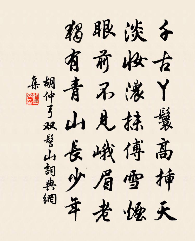 詩詞名句歷史字典書法欣賞書法字典國語詞典說文解字康熙字典古漢語字典標 題 作 者 詩 句 雙髻山作者:胡仲弓 朝代:宋代雙髻山原文千古丫鬟高插天,淡妝濃抹傅雪煙。眼前不見峨眉老,獨有青山長少年。詩詞問答問:雙髻山的作者是誰?答:胡仲弓問:雙髻山寫於哪個朝代?答:宋代胡仲弓雙髻山書法欣賞雙髻山書法作品詩詞推薦國清寺陳堯佐〔宋代〕南越第一寺,偶來心地真。卻嫌橋下水,流去入紅塵。次仲庸初冬即事二首裘萬頃〔宋代〕常歲霜天分外晴,一溪如煉浸冰輪。今年風雨寧無夜,誰與溪梅作小春。寧川冷渡華岳〔宋代〕峰迴路轉六七里,林靜鳥啼三四聲。游女不知行旅恨,一茶留我話平生。猛虎行 ( 此詩蕭士□雲是偽作 ) 【上彬下李白〔唐代〕朝作猛虎行,暮作猛虎吟。腸斷非關隴頭水,淚下不為雍門琴。旌旗繽紛兩河道,戰鼓驚山欲顛倒。秦人半作燕地反遠遊陸游〔宋代〕賣卻貂裘買釣舟,久將身世付悠悠。行歌西郭紅橋路,爛醉東關白塔秋。夜泊驛亭觀月上,曉登僧閣聽猿愁。一生鴻溝和呂聖功韻曾璉〔宋代〕王霸興亡劫幾塵,鴻溝依舊鎖寒雲。不將帝業追三代,只把河山割半分。故壘已隨流水盡,歸鴉空帶夕陽曛。西風和石昌言求牡丹栽梅堯臣〔宋代〕昔年藥欄下,已多香草名。更移花本去,聊助日邊榮。莫問西都品,存吾舊友評。會應包萼吐,可與魏姚並。帶土雞鳴沈說〔宋代〕雞鳴霜葉下,月在紙窗寒。客路千家曉,山居一枕安。秫收催歲釀,韮種接春盤。縱有少年夢,其如主事闌。已亥雜詩 30龔自珍〔清代〕事事相同古所難,如鶼如鰈在長安。從今兩戒河山外,各逮而孫盟不寒。賦雙溪閣用蔡君謨詩聲字韻劉子翬〔宋代〕雄觀今古快幽情,突兀層樓出市甍。二水交流何處盡,孤舟不見亂山橫。丹爐寂寞仙遊遠,劍氣蕭條和恨盈。向晚長門怨(一作長信宮)李端〔唐代〕金壺漏盡禁門開,飛燕昭陽侍寢回。隨分獨眠秋殿里,遙聞語笑自天來。輞川集二十首柳浪裴迪〔唐代〕映池同一色,逐吹散如絲。結陰既得地,何謝陶家時。折縣道中二首孔武仲〔宋代〕天下軍書動,西南霸氣偏。太公謀國妙,伊尹佐時專。季漢基還立,強吳勢外連。兵從新節制,志復舊山川。霜肅西州舊俗每當立春前後以巢菜作餅互相招邀名家鉉翁〔宋代〕朔風吹我過瀛州,釜甑生塵轉可羞。聊向春前尋故事,定知食餅記前修。勸農有感三首高斯得〔宋代〕井卦分明說勞農,周人田制寓其中。但令此念純無已,可使吾民養不窮。數豆荒餐延野老,一篇腐語誨村童。爾忱過青陽縣,望九華山,雲中不真。來早大露,楊萬里〔宋代〕山長百里玉孱顏,百里何緣盡好山。只是縣前青一簇,九芙蓉出五雲間。點絳唇 詠風蘭納蘭性德〔清代〕別樣幽芬,更無濃艷催開處。凌波欲去,且為東風住。忒煞蕭疏,怎耐秋如許?還留取,冷香半縷,第一湘江雨。山居十三首蔡格〔宋代〕觀雲聽雨逐番新,清書綠蔭更可人。滿眼個別無限趣,當窗憩久樂天真。題牧隱二首袁說友〔宋代〕鐘鼎山林志則均,未須牧隱臥漳濱。要令天下歸吾牧,莫為牛羊遽絕人。南窗睡起陸游〔宋代〕夢中忘卻在天涯,一似當年錦里時。狂倚寶箏歌白紵,醉移銀燭寫烏絲。酒來郫縣香初壓,花送彭州露尚滋。起坐名句推薦與死人同病者,不可生也;與亡國同事者,不可存也。韓非及後人《韓非子·孤憤》 拱把之桐梓,人苟欲生之,皆知所以養之者。孟子《孟子·告子章句上·第十三節》 晻靄寒氛萬里凝,闌乾陰崖千丈冰。岑參《天山雪歌送蕭治歸京》 水村山館,夜闌無寐,聽盡空階雨。黃大臨《青玉案·和賀方回韻送伯固還吳中》 欲尋芳草去,惜與故人違。孟浩然《留別王侍御維 / 留別王維》 長風連日作大浪,不能廢人運酒舫。元結《石魚湖上醉歌》 出其東門,有女如雲。佚名《出其東門》 我亦且如常日醉,莫教弦管作離聲。歐陽修《別滁》 霰淅瀝而先集,雪粉糅而遂多。謝惠連《雪賦》 春朝物候妍,愁婦鏡台前。鄭愔《春怨》