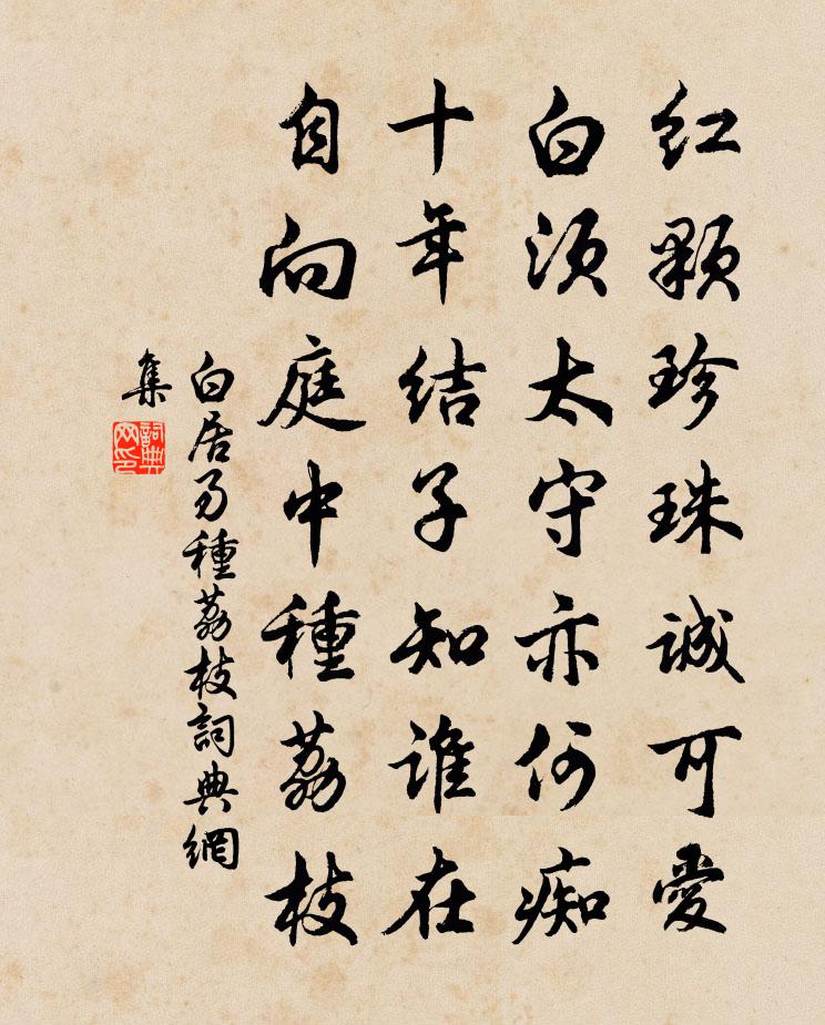 紅顆珍珠誠可愛,白須太守亦何痴。十年結子知誰在,自向庭中種荔枝。