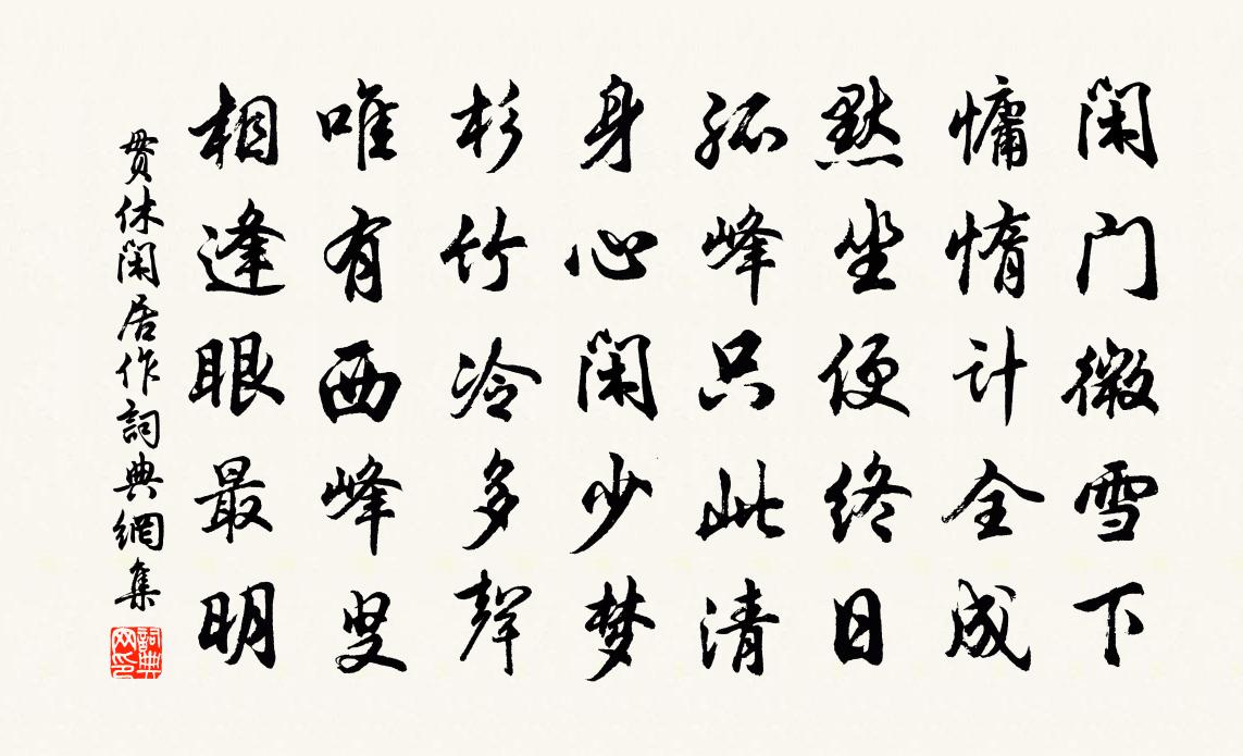 閒門微雪下,慵惰計全成。默坐便終日,孤峰只此清。