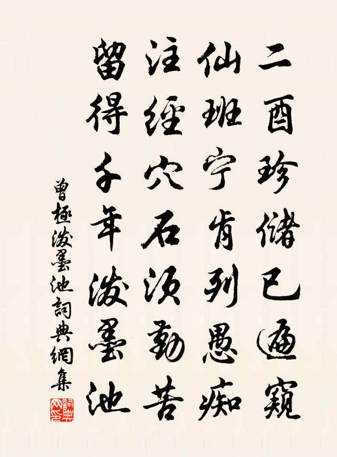 詩詞名句歷史字典書法欣賞書法字典國語詞典說文解字康熙字典古漢語字典標 題 作 者 詩 句 潑墨池作者:曾極 朝代:宋代潑墨池原文二酉珍儲已遍窺,仙班寧肯列愚痴。注經穴石須勤苦,留得千年潑墨池。詩詞問答問:潑墨池的作者是誰?答:曾極問:潑墨池寫於哪個朝代?答:宋代曾極潑墨池書法欣賞潑墨池書法作品詩詞推薦感興六首賀鑄〔宋代〕雛雀學翻飛,不知毛羽微。青鵳笑高樹,待爾飽朝飢。相如滌器圖唐寅〔明代〕琴心挑取卓王孫,買酒臨邛石凍春。狗監猶能薦才子,當時宰相是閒人。夜坐因觀楊伯虎和春字韻詩偶成五絕再寄張鎡〔宋代〕挑盡燈花夜未眠,清寒渾忘是春天。霜侵綠鬢張居士,空坐書幃三十年。土床張載〔宋代〕土床煙足紬衾暖,瓦斧泉乾豆粥新。萬事不思溫飽外,漫然清世一閒人。老槐賀鑄〔宋代〕老樹久枯禿,俯臨清路塵。曾無席地陰,庇暍及斯民。梟巢與狐穴,凶怪相憑親。嗥嘯屬陰黑,驚搖旁近人。周環李監宅二首(一作李鹽鐵)杜甫〔唐代〕尚覺王孫貴,豪家意頗濃。屏開金孔雀,褥隱繡芙蓉。且食雙魚美,誰看異味重。門闌多喜色,女婿近乘龍。華館夜寒有作施樞〔宋代〕可怪輕寒薄短衾,起來搔首傍燈吟。百年易老風前鬢,萬事難侵水樣心。雁叫雲天秋渺渺,蟲鳴露砌夜沉沉。朱絲過八尺遇雨三首楊萬里〔宋代〕垂虹亭登劣歸船,又復毛空暗水天。節里無多好天色,闌風長雨餞殘年。詠西湖上寄潁州相公宋祁〔宋代〕湖邊煙樹與天齊,獨愛湖波照影時。崖蔣渚蘋春披靡,佛樓僧閣暝參差。相君萬一來湖上。手弄潺湲更憶誰。答毅父孔武仲〔宋代〕朝趁朔風出,暮乘殘月歸。塵埃變發毛,豈不損裘衣。憶昔年少日,未知願輕肥。登高作越吟,所喜獨翠微。至今頌古一○一首釋子淳〔宋代〕歸家豈坐碧雲床,出戶不行青草地。南北東西本自由,渠無向背那迴避。宿甘露寺僧舍曾公亮〔宋代〕枕中雲氣千峰近,床底松聲萬壑哀。要看銀山拍天浪,開窗放入大江來。予出蜀日嘗遣僧則華乞簽於射洪陸使君祠使君陸游〔宋代〕少壯不自料,慷慨志四方。謝病還故山,始覺白日長。命薄類蟬翼,功名安可望?狐狸不足問,力不當財狼。惟有偶成葉茵〔宋代〕留得春風趁馬蹄,日長無事綠楊堤。菜花籬落誰家酒,緩轡長歌過小溪。平齋老先生游霅城葉氏園池有作俾次元韻釋文珦〔宋代〕名園無俗情,漁子往來密。憑闌古城近,屏翳秀石出。弁衡山獻青,苕霅水□碧。好景吟不窮,煙霏又將夕。冬日呈應之宋祁〔宋代〕賓席滿浮埃,勞歌倦撫懷。囊風寒薄木,鵾雪夜平階。莊室虛仍白,顏心靜已齋。北山如借問,矯首謝丹崖。金蓮出玉華王丹桂〔元代〕嚴凝天氣。萬物深根而固蒂。*葉全開。仙子移真下寶台。松姿鶴質。遣累齋心超眾異。為祝遐齡。福壽同臻等芥奉和聖製上元夜晏殊〔宋代〕蘭燈照夕開南闕,星弁飛樓拱北辰。在鎬正逢全盛日,祝堯皆是太平人。流風舞妙翻成字,積雪歌長迥繞塵。鸞鵲句李若水〔宋代〕一庭鳥跡天書怪,八尺簟紋人字寒。和興化趙令君二首劉克莊〔宋代〕自古名高眾責全,幾人齎恨到重泉。世傳戇叟難□節,士謂周侯惜末年。扶電駿翻成跛鱉,鳴陽鳳化作寒蟬。嗟予名句推薦知己知彼,將心比心。佚名《增廣賢文·上集》 秀色掩今古,荷花羞玉顏。李白《西施 / 詠薴蘿山》 人道山長山又斷。蕭蕭微雨聞孤館。李清照《蝶戀花·淚濕羅衣脂粉滿》 朝見馬嶺黃沙合,夕望龍城陣雲起。盧思道《從軍行》 人學始知道,不學亦徒然。佚名《增廣賢文·上集》 知賢之為明,輔賢之謂能,勉之強之,其福必長。荀子《荀子·解蔽》 醲肥辛甘非真味,真味只是淡無味洪應明《菜根譚·概論》 鬧里掙錢,靜處安身。佚名《增廣賢文·上集》 今夫天斯昭昭之多,及其無窮也,日月星辰系焉,萬物覆焉。子思《中庸·第二十六章》 念蘭堂紅燭,心長焰短,向人垂淚。晏殊《撼庭秋·別來音信千里》