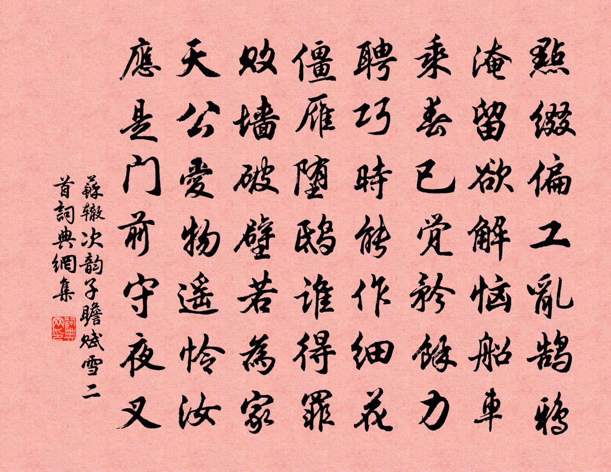 詩詞名句歷史字典書法欣賞書法字典國語詞典說文解字康熙字典古漢語字典標 題 作 者 詩 句 次韻子瞻賦雪二首作者:蘇轍 朝代:宋代次韻子瞻賦雪二首原文點綴偏工亂鵠鴉,淹留欲解惱船車。乘春已覺矜餘力,聘巧時能作細花。僵雁墮鴟誰得罪,敗牆破壁若為家。天公愛物遙憐汝,應是門前守夜叉。詩詞問答問:次韻子瞻賦雪二首的作者是誰?答:蘇轍問:次韻子瞻賦雪二首寫於哪個朝代?答:宋代問:蘇轍的名句有哪些?答:蘇轍名句大全蘇轍次韻子瞻賦雪二首書法欣賞次韻子瞻賦雪二首書法作品詩詞推薦酹江月(詠芍藥)曾協〔宋代〕一年好處,是滿城紅藥,留連□□。十里揚州應費了,多少春工妝飾。弱質欹風,芳心帶露,酒困嬌無力。園林綠再和且答索飲語鄭清之〔宋代〕海塗之人暗摸索,如龜自遮聊以殼。沈湘雖避屈三閭,斷髮奈逢吳太伯。周官自詭庳蠃蚔,羲經取並龍蛇蠖。嫗妃題左正卿壽慈堂楊萬里〔宋代〕萬事絲窠黏露珠,奉親最樂天下無。丘明遠孫千里駒,有母七十發漆如。雪底箏生冰底魚,人間無覓天賜渠。三更到南昌呈宋願父伯仲黃子魯諸丈戴復古〔宋代〕一秋無便寄平安,新雁聲聲報早寒。昨夜檢衣開故篋,去年家信把來看。公辨再贈,複次韻范成大〔宋代〕書生活計極蕭騷,爝火微明似束蒿。犬子地寒徒壁立,元龍身懶謾樓高。筆端未辦夸三絕,酒里猶能掃二豪。又向隆慶楊椿〔宋代〕坤地厚鰲背,艮山比犬牙。雲根生夜雨,石刃湊朝霞。蜀國關防壯,巴山道路斜。璜源宗人珏壽慶樓吳浩〔宋代〕吾宗培世德,盛事褒一門。仰顏有壽母,挽目見子孫。平生青雲器,威鳳宜孤鶱。脫然舍榮爵,回車息深村。服勤擬和元夕御製傅伯成〔宋代〕萬戶千門繡作團,未央宮闕聳巑岏。燈花無數排金粟,月魄不空倚扇紈。香繞御爐煙羃羃,玉瑤仙佩響珊珊。遊人春夜韋明府宅宴得春字駱賓王〔唐代〕酌桂陶芳夜,披薜嘯幽人。雅琴馴魯雉,清歌落范塵。宿雲低迥蓋,殘月上虛輪。幸此承恩洽,聊當故鄉春。久旱石介〔宋代〕風伯且須戢頭角,放出龍啄萬丈長。啄垂一尺雨一尺,得雨萬丈成豐穰。元應善利真人祠唐仲友〔宋代〕周道昔波盪,王子生不辰。忠言諫壅川,親意不我親。天壤不可支,厭此濁世塵。樂師爾何知,吾將去上賓。和韻送逸軒劉民文天祥〔宋代〕少日屠龍事已勞,送人千里發江濤。蓬萊地近風方細,閶闔門開日正高。春里看花須款款,雨中剪韭且陶陶。金吾白紵歌舞四時詞冬楊萬里〔宋代〕秪愁窮臘雪作惡,不道雪天好行樂。玻璃琖底回青春,蒲萄錦外舞玉塵。陽春一曲小垂手,勸君一杯千萬壽。今年郊廟歌辭。祀九宮貴神樂章。壽和佚名〔唐代〕時文哲後,肅事嚴禋。馨我明德,享於貴神。大庖載盈,旨酒斯醇。精意所屬,期於利人。浪淘沙劉禹錫〔唐代〕日照澄洲江霧開,淘金女伴滿江隈。美人首飾侯王印,儘是沙中浪底來。智遠上人釋祖欽〔宋代〕智聰則遠,機圓自轉。似走盤珠,如萬花苑。開落不在春秋,動靜不滯去留。雲悠悠,水悠悠。天外月如鉤,雪峰七夕遇雨訪石堂先生熊禾〔宋代〕高高不可問,神光終朦朧。雲錦不成報,謾爾欺盲聾。柱維久傾折,會有補煉功。胡士彥輓詞二首陳師道〔宋代〕此地來何晚,經年見未頻。薦賢仍賭命,有道可辭貧。徒弟三千子,聲名四十春。襄陽耆舊內,無複姓龐人。晚秋長沙蔡五侍御飲筵,送殷六參軍歸澧州覲省杜甫〔唐代〕佳士欣相識,慈顏望遠遊。甘從投轄飲,肯作置書郵。高鳥黃雲暮,寒蟬碧樹秋。湖南冬不雪,吾病得淹留。已亥雜詩 247龔自珍〔清代〕鶴背天風墮片言,能蘇萬古落花魂。征衫不漬尋常淚,此是平生未報恩。名句推薦君子泰而不驕,小人驕而不泰。孔子弟子《論語·子路篇》 奈何今之人,雙目送飛鴻。李白《鞠歌行》 羈心積秋晨,晨積展游眺。謝靈運《七里瀨》 相看兩不厭,只有敬亭山。李白《獨坐敬亭山》 夜雪初霽,薺麥彌望。姜夔《揚州慢·淮左名都》 普天皆滅焰,匝地盡藏煙。沈佺期《寒食》 數人世相逢,百年歡笑,能得幾回又。何夢桂《摸魚兒·記年時人人何處》 雨後輕寒猶未放。春愁酒病成惆悵。歐陽修《蝶戀花·面旋落花風蕩漾》 中也者,天下之大本也。和也者,天下之達道也。子思《中庸·第一章》 得十良馬,不若得一伯樂;得十良劍,不若得一歐冶;得地千里,不若得一聖人。呂不韋《呂氏春秋·論·不苟論》