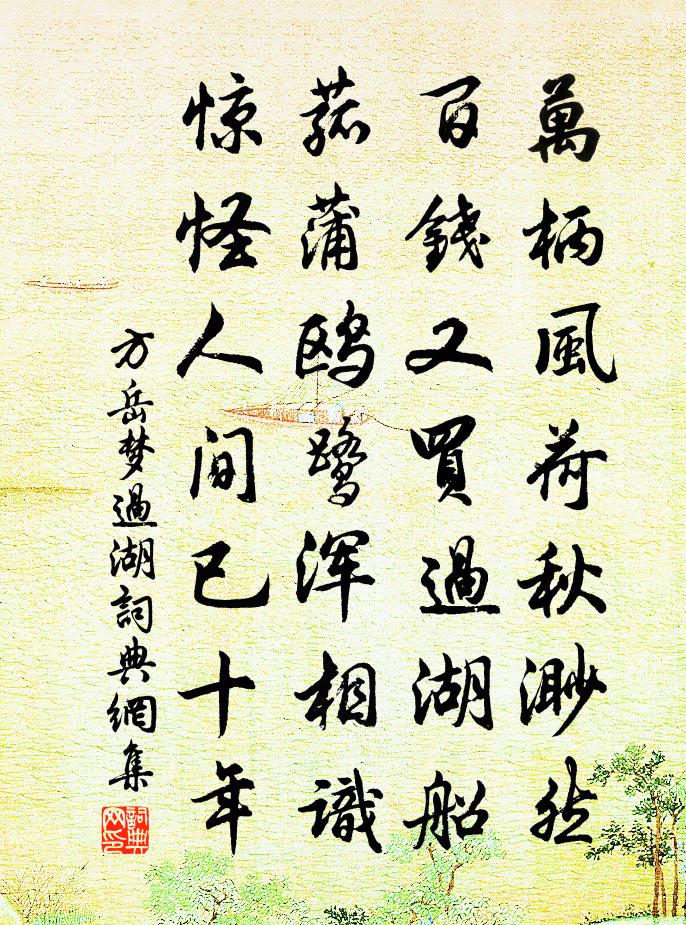詩詞名句歷史字典書法欣賞書法字典國語詞典說文解字康熙字典古漢語字典標 題 作 者 詩 句 夢過湖作者:方岳 朝代:宋代夢過湖原文萬柄風荷秋渺然,百錢又買過湖船。菰蒲鷗鷺渾相識,驚怪人間已十年。詩詞問答問:夢過湖的作者是誰?答:方岳問:夢過湖寫於哪個朝代?答:宋代方岳夢過湖書法欣賞夢過湖書法作品詩詞推薦十五夜月趙蕃〔宋代〕老至自多感,月圓仍此秋。又成愁里見,都白幾分頭。酒罄妨人醉,詩窮不易搜。徑歸掩關臥,還雜候蟲幽。清都觀於革〔宋代〕石壇雨洗月華新,白帢青藤曳履行。老檜不知仙馭遠,屋頭猶帶玉簫聲。頌一百則釋重顯〔宋代〕曾騎鐵馬入重城,敕下傳聞六國清。猶握金鞭問歸容,夜深誰共御街行。正月詞張耒〔宋代〕紅梢一夜櫻桃雨,簾卷曉晴鴝鵒語。簾旌細浪滾東風,迎得春歸與為主。玉手嬌慵添繡線,欄下菖蒲近相見。雲屏泛舟潏水君俞用韓泛南溪韻作詩三首遂和李復〔宋代〕山虧一簣功,泉廢九仞跡。精神去不回,虛牝黃金擲。沂舟望南麓,近岸多巨石。溪流曲折多,波喧奔湍激。野竹【仙呂】襖神急白賁〔元代〕綠陰籠小院,紅雨點蒼苔。誰想東君也是人間客,縱分連理枝,謾解合歡帶,傷春早是心地窄。愁山和悶海,暢會偈頌六十五首釋普濟〔宋代〕一天星斗大家看,獨有渠儂見處偏。打失眼晴拈得口,至今腳下墨漫漫。武夷精舍十詠晚對亭袁樞〔宋代〕落日郁蒼煙,空山轉寒碧。石屏倚天立,端峭一千尺。無言獨與對,足以永朝夕。何用向時流,抵掌恣談劇。贊歷代天師第三代系師諱魯字公期白玉蟾〔宋代〕笑把銅章尹漢中,隱山斗米顯神功。魏兵四畔臨河岸,彈指波心萬丈峰。和主司王起(一作和主司王僕射答華州周侍郎賀放榜作)丁棱〔唐代〕公心獨立副天心,三轄春闈冠古今。蘭署門生皆入室,蓮峰太守別知音。同升翰苑時名重,遍歷朝端主意深。新有氣出唱曹操〔魏晉〕駕六龍,乘風而行。行四海,路下之八邦。歷登高山臨溪谷,乘雲而行。行四海外,東到泰山。仙人玉女,下來翱清閒姜特立〔宋代〕清閒自是神仙福,不是神仙不得閒。我雖凡骨居塵世,十有三年守故山。江州琵琶亭夏竦〔宋代〕年光過眼如車轂,職事羈人似馬銜。若遇琵琶應大笑,何須涕泣滿青衫。清涼寺項安世〔宋代〕楚甸延詩眼,台城壯酒杯。山蓮京口去,江自錦官來。百榼澆難下,千篇勇莫裁。非君湖海氣,誰禁此崔嵬。蠟梅四絕句陳與義〔宋代〕來從底處所,黃露滿衣濕。緣憨翻得憐,亭亭倚風立。陸機宅馬之純〔宋代〕只聞二陸住華亭,卻有書堂在秣陵。如此弟兄無比擬,翕然京洛有聲稱。辨亡著論真難及,受命專征若易能。十萬吳大監輓詞樓鑰〔宋代〕曠典將行日,南宮得舍人。銓衡輕易地,造化漫勞神。舊事誰能記,交情我獨親。吁嗟三昧手,不見掌絲綸。紅林擒近方千里〔宋代〕曉起山光慘,晚來花意寒。映月衣纖縞,因風佩琅玕。三弄江梅聽徹,幾點岸柳飄殘。宛然舞曲初翻。簾影卷波瀾和吳微明疏影橫斜水清淺七詠韻李呂〔宋代〕碧澗潺潺暮山紫,閉關危坐心如水。窗間微見一枝橫,鼻觀得香尤可喜。送李閬州二首李流謙〔宋代〕少陵曾賦閬州詩,苦說城南天下稀。鈴合訟閒簾半卷,胡床客好塵頻揮。著鞭尚及春耕勸,促詔應隨曉仗歸。他日名句推薦去年東武今夕,明月不勝愁。蘇轍《水調歌頭·徐州中秋》 力微休負重,言輕莫勸人。佚名《增廣賢文·上集》 萬壑樹參天,千山響杜鵑。王維《送梓州李使君》 江南江北雪漫漫。遙知易水寒。向子諲《阮郎歸·紹興乙卯大雪行鄱陽道中》 今日雲景好,水綠秋山明。李白《九日》 人心生一念,天地悉皆知,善惡若無報,乾坤必有私。吳承恩《西遊記·第八十七回》 聚斂者,召寇、肥敵、亡國、危身之道也荀子《荀子·王制》 青山如黛遠村東,嫩綠長溪柳絮風。高珩《春日雜詠》 金風細細。葉葉梧桐墜。晏殊《清平樂·金風細細》 背燈和月就花陰,已是十年蹤跡十年心。納蘭性德《虞美人·銀床淅瀝青梧老》