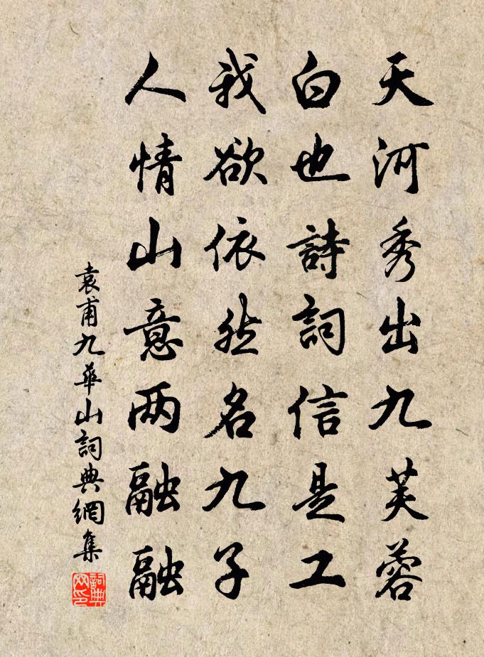 詩詞名句歷史字典書法欣賞書法字典國語詞典說文解字康熙字典古漢語字典標 題 作 者 詩 句 九華山作者:袁甫 朝代:宋代九華山原文天河秀出九芙蓉,白也詩詞信是工。我欲依然名九子,人情山意兩融融。詩詞問答問:九華山的作者是誰?答:袁甫問:九華山寫於哪個朝代?答:宋代袁甫九華山書法欣賞九華山書法作品詩詞推薦題鍾隱簡寂觀圖吳則禮〔宋代〕飽知阿隱有妙處,未見從來丘壑謀。徑呼管城辦能事,和茳貼貼仍晚秋。白頭故作西河夢,獨遣老眼酬南州。邊笳頌古五十七首釋道昌〔宋代〕無位真人,處處獻新。攔胸扭住,不落主賓。乾屎橛,乾屎橛,三人證龜作個鱉。蘇幕遮 請丹陽法體往西關王處一〔元代〕嘆乖夫,違正道。巧使機謀,讒佞奸邪狡。敗壞宗風無處告。破鏡鴟鳶,和我難分曉。到如今召集,誰敢保。密里偶書塔塢水中石何夢桂〔宋代〕白石兮磷磷,清泉兮泠泠。岸有蒲兮水有芹。敲竹筇兮金石聲,長嘯歌兮驚鬼神。世間豈無宦海之可航,仕路之可南歌子佚名〔宋代〕菖蒲泛酒香。水陽精舍曹邍〔宋代〕塔高鈴自語,碑斷蘇成文。老樹擎涼月,初荷卷濕雲。螢飛臨水見,犬吠隔籬聞。靜對高僧坐,無眠到夜分。柳林酒家小樓陸游〔宋代〕桃花如燒酒如油,緩轡郊原當出遊。微倦放教成午夢,宿酲留得伴春愁。遠途始悟乾坤大,晚節偏驚歲月遒。記取次東坡先生用六一先生雪詩律令龜字二十韻舊楊萬里〔宋代〕病身柴立手亦龜,不要人憐天得知。一寒度夕抵度歲,惡風更將乾雨吹。作祥只解誰飢腹,催老偏工欺短髭。透屋婁師德徐鈞〔宋代〕面乾人唾苦無剛,為國求賢慮卻長。不是陰將人傑薦,誰能取日再興唐。西齋秋感二十首方回〔宋代〕靈運永嘉日,玄暉宣城時。池草既清唱,窗岫亦妍辭。郡勝山水媚,心賞良足怡。廟廊有顏沈,味合深己知。桐瀨夜雨陸游〔宋代〕人日春猶淺,雞晨夜向闌。殘缸燈暈小,單枕雨聲寒。難補皇天漏,空思后土乾。山家尊酒薄,懷抱若為寬。在巴南望郡南山呈樂天(時從樂天忠州)白行簡〔唐代〕臨江一嶂白雲間,紅綠層層錦繡班。不作巴南天外意,何殊昭應望驪山。王仙壇林傑〔唐代〕羽客已登仙路去,丹爐草木盡凋殘。不知千載歸何日,空使時人掃舊壇。和符君俞卜鄰楊萬里〔宋代〕朱崖柳 * 春風,庾嶺梅花尚雪容。念子南歸騎瘦馬,只今誰解好真龍。吾鄉端是山水窟,何日來同丘岳胸。白鷺文燕潤卿不至鄭璧〔唐代〕已知羽駕朝金闕,不用燒蘭望玉京。應是易遷明月好,玉皇留看舞雙成。金縷曲(次韻拙逸劉直孺見寄言志)張榘〔宋代〕枌社新相識。恍瞻君、丰神氣貌,飄然仙白。筆底三江鯨浪注,胸次一甌冰雪。怎不做、龍門上客。坎止流行元無和津喜雪二首吳芾〔宋代〕六花一夜降中天,飛繞吾廬頓滿前。紀出仙家新窟宅,疑非塵世舊山川。但驚岩上青松老,不見天邊白雁連。賴有雪夜陸游〔宋代〕村路雪泥人斷行,佛燈一點絳紗明。山前棲鶻歸何晚,磔磔風傳勁翮聲。送錢國博知坊州魏野〔宋代〕遙為坊民賀一方,壽星偏去照光芒。解攜朋友龍三處,隨侍兒孫雁兩行。芳草路中車突兀,落花風裡旆悠颺。眠雲解纜洪咨夔〔宋代〕春落平蕪外,舟行白雨邊。鳩應山爾汝,櫓畫水之玄。官冷誰能吏,身閒便是仙。康廬真箇去,信有夙生緣。名句推薦醉後涼風起,吹人舞袖回。李白《與夏十二登岳陽樓》 林花著雨胭脂濕,水荇牽風翠帶長。杜甫《曲江對雨》 人事有代謝,往來成古今。孟浩然《與諸子登峴山》 千古興亡多少事?悠悠。不盡長江滾滾流。辛棄疾《南鄉子·登京口北固亭有懷》 人生貴得適意爾,何能羈宦數千里以要名爵!劉義慶《世說新語·識鑒》 神龜雖壽,猶有竟時。曹操《龜雖壽》 上謀臣以勢,勢不濟者以術。來俊臣《羅織經·謀劃卷第九》 三人行,則損一人;一人行,則得其友。姬昌《周易·損卦》 學如不及,猶恐失之。孔子弟子《論語·泰伯篇》 騷人可煞無情思,何事當年不見收。李清照《鷓鴣天·桂花》