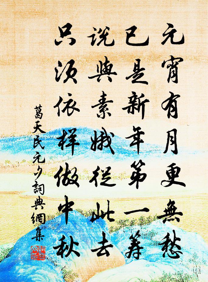 詩詞名句歷史字典書法欣賞書法字典國語詞典說文解字康熙字典古漢語字典標 題 作 者 詩 句 元夕作者:葛天民 朝代:宋代元夕原文元宵有月更無愁,已是新年第一籌。說與素娥從此去,只須依樣做中秋。詩詞問答問:元夕的作者是誰?答:葛天民問:元夕寫於哪個朝代?答:宋代葛天民元夕書法欣賞元夕書法作品詩詞推薦近報黃文雷〔宋代〕青青塞草始知春,又見平林棗頰頳。蛇起天津流枉矢,鳥飛淮甸覆行塵。漆城按堵寧辭蔭,石馬沾溝會有神。千古觀窗前月過有感舒岳祥〔宋代〕檐影倒垂地,月高窗更陰。殘蛩沉積葉,悲鳥發遙岑。易下傷時淚,難平讀史心。胸中猶若此,酒盞可辭深。悲書梅堯臣〔宋代〕悲愁快於刀,內割肝腸痛。有在皆舊物,唯爾與此共。衣裳昔所制,篋笥忍更弄。朝夕拜空位,繪寫恨少動。雖死偈頌一百四十一首釋師範〔宋代〕佛法也不會,世法也不會。一夏九十日,瞎驢隨大隊。避暑山亭趙良坡〔宋代〕茂林深處散清涼,石罅泉聲引興長。高掛角巾舒嘯傲,炎飈那得到山莊。和元規拜違張繼先〔宋代〕才到巍峨畔,還登翠碧重。調青賡白雪,琴靜撫黃鐘。履踐古人道,追遊仙者蹤。自來多福力,想念各疏慵。何處滿庭芳 嗚鶴餘音卷三三於真人〔元代〕落魄閒人,逍遙懶漢,逢人不語西東。騰騰兀兀,來往似塵中。乞化前街後巷,安居住、古廟閒宮。傍人問,這般山居述懷薛嵎〔宋代〕山瓢動瀑冰,一枕曲肱清。未遇勤求日,非沽隱逸名。梅邊月在水,寒夜酒如兵。悟得乘除數,貧中心自平。偈頌四十二首釋祖先〔宋代〕心鏡明鑑明無礙,豁然瑩徹周沙界。萬象森羅不覆藏,一顆圓光非內外。嘲桃李商隱〔唐代〕無賴夭桃面,平明露井東。春風為開了,卻擬笑春風。西江月姬翼〔元代〕挾策亡羊莫問,覆蕉失鹿休窮。大家都在夢魂中。夢裡重重作夢。具足元亨貞利,圓明微妙玄通。眨眉目擊莫形容留題太平寺強至〔宋代〕鄉落少人煙,精廬獨巋然。香花真佛界,棟宇始唐年。鳥啄齋餘食,僧參夜半禪。清涼數畝地,已是隔塵緣。探梅楊公遠〔宋代〕竹杖芒鞋作興來,來時準擬有花開。誰知老樹荒煙里,地冷孤根暖未回。和此陽先生感興詩二十首劉黻〔宋代〕交遊重金石,里巷毋泛尋。胸中抱明鏡,妍醜不相侵。熱交但以貌,冷交惟其心。勢利易苟合,道義難力任。詠春雨後散步後園陸游〔宋代〕淡日輕雲未快晴,涓涓溝水去無聲。為憐一徑新 * ,別就牆陰取路行。送徐似之歸新城方回〔宋代〕趁潮小緩轉船頭,不枉湖山十日留。喜得閻徐二學士,為傳佳句過中州。示兒陸游〔宋代〕斥逐襆被歸,招喚振衣起;此是鄙夫事,學者那得爾。前年還東時,指心誓江水。亦知食不足,但有餓而死。小兒漁家傲歐陽修〔宋代〕八月微涼生枕簟。金盤露洗秋光淡。池上月華開寶鑑。波瀲灩。故人千里應憑檻。蟬樹無情風苒苒。燕歸碧海珠簾句孟安序〔宋代〕扁舟卻下五溪水,勝地重遊八跡壇。和晏太尉早夏宋祁〔宋代〕寂寥春花盡,岑蔚夏陰稠。舌反禽稀弄,頭昂麥並秋。直宜處台榭,稍欲厭巾{鞲革換巾}。可待蒲葵直,思從謝名句推薦地勢,坤;君子以厚德載物。佚名《易傳·象傳上·坤》 惟有樓前流水,應念我、終日凝眸。李清照《鳳凰台上憶 * ·香冷金猊》 豆蔻連梢煎熟水,莫分茶。李清照《攤破浣溪沙·病起蕭蕭兩鬢華》 攻取者先兵權,建本者尚德化。陳壽《三國志·魏書·荀彧攸賈詡傳》 春日遲遲,卉木萋萋。佚名《出車》 人有所優,固有所劣;人有所工,固有所拙。王充《論衡·卷二十八·書解篇》 盤心清露如鉛水,又一夜、西風吹折。張炎《疏影·詠荷葉》 神椎鑿石塞神潭,白馬參覃赤塵起。溫庭筠《拂舞詞 / 公無渡河》 安得倚天劍,跨海斬長鯨。李白《臨江王節士歌》 諸葛大名垂宇宙,宗臣遺像肅清高。杜甫《詠懷古蹟五首·其五》