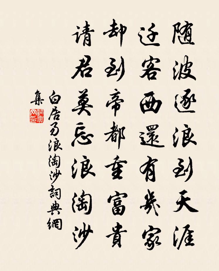 隨波逐浪到天涯,遷客西還有幾家。卻到帝都重富貴,請君莫忘浪淘沙。