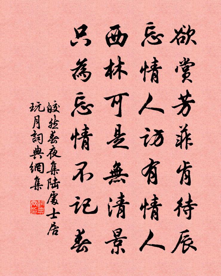 詩詞名句歷史字典書法欣賞書法字典國語詞典說文解字康熙字典古漢語字典標 題 作 者 詩 句 春夜集陸處士居玩月作者:皎然 朝代:唐代春夜集陸處士居玩月原文欲賞芳菲肯待辰,忘情人訪有情人。西林可是無清景,只為忘情不記春。詩詞問答問:春夜集陸處士居玩月的作者是誰?答:皎然問:春夜集陸處士居玩月寫於哪個朝代?答:唐代問:春夜集陸處士居玩月是什麼體裁?答:七絕皎然春夜集陸處士居玩月書法欣賞春夜集陸處士居玩月書法作品注釋全唐詩:卷817-62詩詞推薦九成宮杜甫〔唐代〕蒼山入百里,崖斷如杵臼。曾宮憑風回,岌嶪土囊口。立神扶棟樑,鑿翠開戶牖。其陽產靈芝,其陰宿牛斗。紛披久雨陸游〔宋代〕水長平侵岸,雲低半失村。菰蒲亂鳧鴨,泥潦困雞豚。弄筆排孤悶,煎茶洗睡昏。荒郊多狗盜,及早閉柴門。祁門范成大〔宋代〕石樑平波心,金剎駕岩腹。溪藤卷霜繪,山骨琢紫玉。東堂有嘉名,窈窕窗紗綠。落花掃無跡,蕉葉森似束。主人金雞叫馬鈺〔元代〕入道已蒙相許了。火坑深、宜乎猛跳。男兒出語無虛矯。慎勿遲疑,休使傍人笑。斷制家緣回日早。休似鶴、留言吏部侍郎李公靖康小雅〔宋代〕烈烈李公,實備全德。義動幽明,氣貫金石。扈蹕敵營,爰究忠烈。杞人之憂,廢立大厄。公挺不雇,二將面叱。寄盧生溫庭筠〔唐代〕遺業荒涼近故都,門前堤路枕平湖。綠楊陰里千家月,紅藕香中萬點珠。此地別來雙鬢改,幾時歸去片帆孤。他年興化打克賓克賓如此答頌釋德光〔宋代〕罰錢出院揚家醜,興化聱頭遇克賓。父子不傳真秘訣,棒頭敲出玉麒麟。送鮮于運使西歸晁公溯〔宋代〕飛鳥避漢節,朔風揚旆旌。光茫候躔次,始見入蜀星。父老喜公至,來臨此江濱。陽侯為先驅,歸指唐安城。君恩行宮文天祥〔宋代〕十里宮牆一聚塵,天津晚過客愁新。花啼杜宇歸來血,樹掛蒼龍脫去鱗。神德儻存終有晉,秣陵未改已無秦。秋風會新第進士和陳振享韻袁說友〔宋代〕梧桐風細月將樓,猶得公餘款俊游。喜入芳樽涼徹夜,風生綺席氣橫秋。兩魁前躅高三輔,八雋飛觴照一州。屈指憶王孫 和熊元修蘇州感興謝應芳〔元代〕銅駝淚濕翠苔茵。落地花如墮玉人。可是東君不惜春。問花神。海變句任逢〔宋代〕縱無渭水周家望,合有嚴陵漢室光。春蟬元稹〔唐代〕我自東歸日,厭苦春鳩聲。作詩憐化工,不遣春蟬生。及來商山道,山深氣不平。春秋兩相似,蟲豸百種鳴。風松董著作嘗為參謀歸話西事梅堯臣〔宋代〕子說頗驍勇,築城收漢疆。提兵無百騎,偷路執生羌。大將罪專輒,舉軍皆感傷。歸來出萬死,羸馬亦摧藏。送盧員外往饒州李嘉祐〔唐代〕為郎復典郡,錦帳映朱輪。露冕隨龍節,停橈得水人。早霜蘆葉變,寒雨石榴新。莫怪諳風土,三年作逐臣。題桐葉杜牧〔唐代〕去年桐落故溪上,把葉因題歸燕詩。江樓今日送歸燕,正是去年題葉時。葉落燕歸真可惜,東流玄發且無期。笑筵古劍強至〔宋代〕只因耕戰地,得此古龍泉。磨拭自今日,埋藏曾幾年。無將試蛟窟,宜待靜狼煙。寄語奸邪輩,當鋒莫向前。將歸二首宋祁〔宋代〕遠假西南守,三逢梅柳新。衰令宦情薄,老惜歲華頻。郫釀供銷日,巴禽巧喚春。離家何所恨,雁後作歸人。頌古五十三首釋文禮〔宋代〕即心便是佛,姮娥不畫眉。才將脂粉污,妍好卻成媸。太諫詩筆因題絕句魏閒〔宋代〕文如吐鳳筆如龍,珍重華林墨尚濃。清氣已銷名跡在,世間誰復繼仙翁。名句推薦聞君有兩意,故來相決絕。卓文君《白頭吟》 心既托聲於言,言亦寄形於字劉勰《文心雕龍·練字》 將軍金甲夜不脫,半夜軍行戈相撥,風頭如刀面如割。岑參《走馬川行奉送出師西征 / 走馬川行奉送封大夫出師西征》 滿目飛花萬點,回首故人千里,把酒沃愁腸。葛長庚《水調歌頭·江上春山遠》 成人不自在,自在不成人。佚名《增廣賢文·下集》 長恨去年今夜雨,灑離亭。晏幾道《愁倚闌令·花陰月》 目不能兩視而明,耳不能兩聽而聰。荀子《荀子·勸學》 讀書不覺已春深,一寸光陰一寸金。王貞白《白鹿洞二首·其一》 不茶不飯,不言不語,一味供他憔悴。蜀妓《鵲橋仙·說盟說誓》 酒未開樽句未裁,尋春問臘到蓬萊。曹雪芹《訪妙玉乞紅梅》