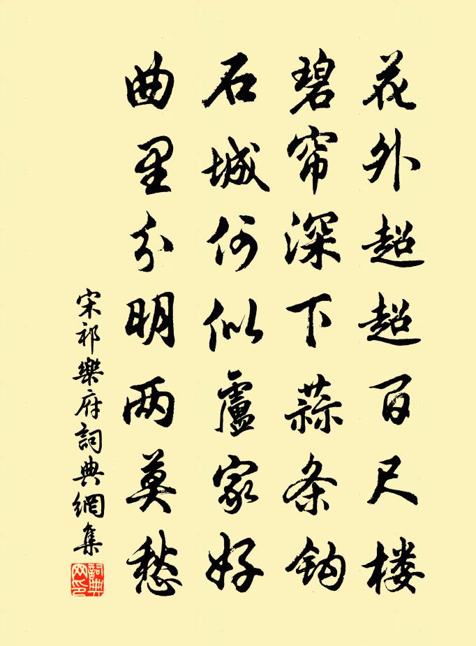 詩詞名句歷史字典書法欣賞書法字典國語詞典說文解字康熙字典古漢語字典標 題 作 者 詩 句 樂府作者:宋祁 朝代:宋代樂府原文花外超超百尺樓,碧簾深下蒜條鉤。石城何似盧家好。曲里分明兩莫愁。詩詞問答問:樂府的作者是誰?答:宋祁問:樂府寫於哪個朝代?答:宋代問:宋祁的名句有哪些?答:宋祁名句大全宋祁樂府書法欣賞樂府書法作品詩詞推薦次韻張秘校喜雪三首黃庭堅〔宋代〕落月煙沙靜渺然,好風吹雪下平田。瓊瑤萬里酒增價,桂玉一炊人少錢。學子已占秋食麥,廣文何憾客無氈。睡余次韻王適春雪二首蘇轍〔宋代〕春雪飄搖旋不成,依稀屨跡散空庭。山藏復閣猶殘白,日照南峰已半青。哭章泉二首劉克莊〔宋代〕小扉通水竹,幽絕少比鄰。家似巢棲者,詩非火食人。於今無宿士,若昔有先民。彊作徵君誄,居然語未親。泊流潢驛,潮風大作二首楊萬里〔宋代〕忽看草樹總離披,記得沙行昨日時。除卻潮來無別事,海風動地亦何為。再次贈張學錄韻十詩陳造〔宋代〕解頤匡鼎來,詩語窮益新。政用追前輩,不勞吞吾人。禪人寫真求贊釋正覺〔宋代〕眉稜稜,眼烱烱。自愛情閒,人嫌面冷。片雲出岫之心,孤月濯潭之影。絕憐百億分身,恰滿三千化境。一錢行贈林茂之吳嘉紀〔清代〕先生春秋八十五,芒鞋重踏揚州路。故交但有丘塋存,白楊催盡留枯根。昔游倏過五十載,江山宛然人代改。滿地諸公唱和多記經歷之事因感昔游復用元韻凡三蘇頌〔宋代〕平生南北與東西,豈是揚波與汩泥,晚入金門諸彥接,來同綺席賜尊攜。時逢寵渥欣陪預,老遇風光懶詠題。共戴再遣朝華秦觀〔宋代〕玉人前去卻重來,此度分攜更不回。腸斷龜山離別處,夕陽孤塔自崔嵬。翻經台趙湘〔唐代〕勝事如飛去不還,無人更立白雲間。西風落盡貝多葉,明月自來天竺山。岩桂影寒泉暗滴,玉爐香減蘚空斑。孤猿晚待明叔不至趙蕃〔宋代〕為霜未就覺風繁,撥火成灰思晤言。立壁舊諳寧怲怲,孤燈垂上只昏昏。讖言已過一陽復,歸去可忘三徑存。趙孟寄楊六(楊攝萬年縣尉,余為贊善大夫)白居易〔唐代〕青宮官冷靜,赤縣事繁劇。一閒復一忙,動作經時隔。清觴久廢酌,白日頓虛擲。念此忽踟躕,悄然心不適。豈無送包使君入朝除左曹郎二首戴復古〔宋代〕金門行入奏,何以告君王。請下求賢詔,兼陳活國方。解紛□□□,救弊細思量。若見高常簿,言予病在床。立秋夕涼風忽至,炎暑稍消,即事詠懷,寄汴白居易〔唐代〕裊裊檐樹動,好風西南來。紅缸霏微滅,碧幌飄颻開。披襟有餘涼,拂簟無纖埃。但喜煩暑退,不惜光陰催。河秋走別張文峙、杜於皇、蒼略,因登雞鳴山閻修齡〔清代〕雪裡人歸急,踟躕別友生。衝風尋釣港,匹馬向台城。廟闕非前代,山川嘆遠征。太平堤柳在,蕭颯不勝情。庾公樓袁說友〔宋代〕危樓千尺俯江津,天外飛帆點點勻。作此雄觀真壯士,奈何猶說污人塵。有感二首牟融〔唐代〕何事離懷入夢頻,貧居寂寞四無鄰。詩因韻險難成律,酒為愁多不顧身。眼底故人驚歲別,尊前華發逐時新。十年於長史山池三日曲水宴陳子昂〔唐代〕摘蘭藉芳月( 一作日 )。祓宴坐回汀。泛灩清流滿。葳蕤白芷生。金弦揮趙瑟。玉指弄秦箏。岩榭風光媚。郊【中呂】仙客張可久〔元代〕春思魚尾釵,風頭鞋,花邊美人安在哉?煙冷寶爐香,塵昏玉鏡台。燕子歸來,月淡朱簾外。括山道中雲冉冉,草呈陳和叔王安石〔宋代〕毀車為屋僅容身,三歲相要薄主人。晝寓槨磚常至夜,冬沿溝彴復尋春。南陔不洎公歸里,蒼墓垂成我喪親。後會名句推薦樂民之樂者,民亦樂其樂。孟子《孟子·梁惠王章句下·第四節》 舊苑荒台楊柳新,菱歌清唱不勝春。李白《蘇台覽古》 煙蘿翠竹,欠羅袖、為倚天寒日暮。吳文英《絳都春·余往來清華池館六年賦詠屢矣感昔傷今益不堪懷乃復作此解》 上有青冥之長天,下有淥水之波瀾李白《長相思·其一》 憶昔霍將軍,連年此征討。高適《登百丈峰二首》 欲持一瓢酒,遠慰風雨夕。韋應物《寄全椒山中道士》 地白風色寒,雪花大如手。李白《嘲王歷陽不肯飲酒》 復恐匆匆說不盡,行人臨發又開封。張籍《秋思》 不畏浮雲遮望眼,自緣身在最高層。王安石《登飛來峰》 故國梅花歸夢,愁損綠羅裙。孔夷《南浦·旅懷》