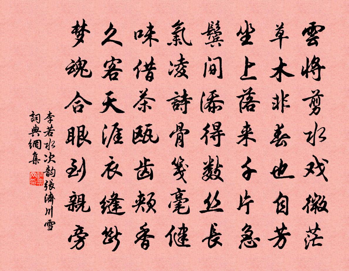 - 驚風亂颭芙蓉水,密雨斜侵薜荔牆。