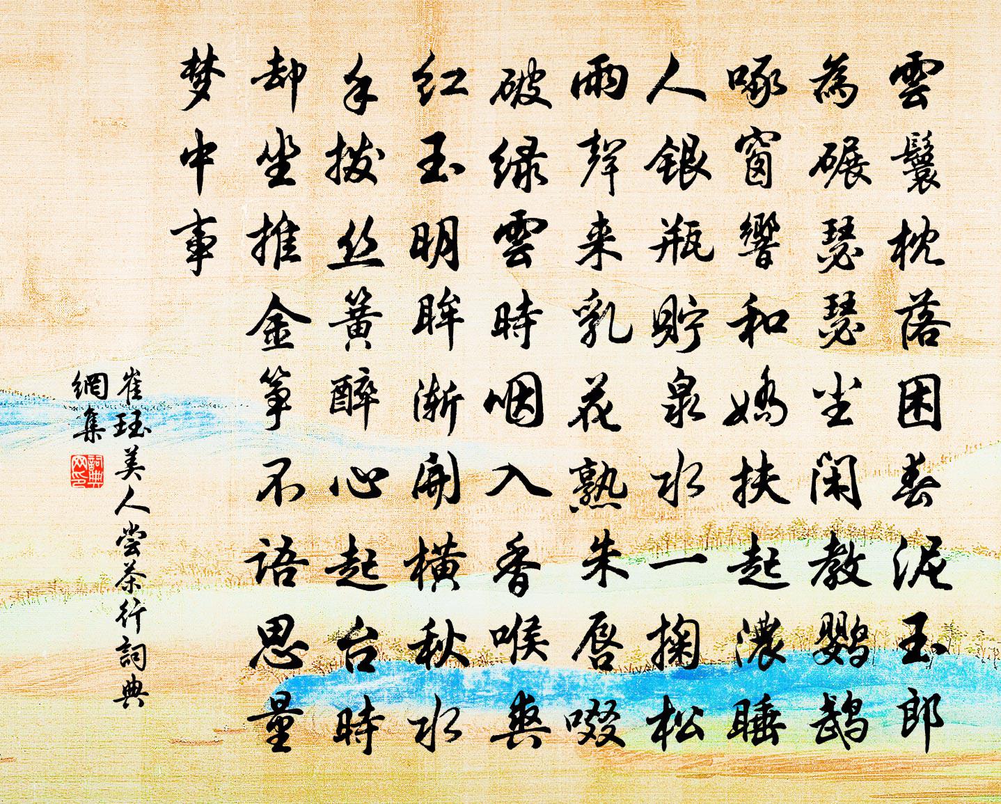 - 碧溪影里小橋橫,青簾市上孤煙起。