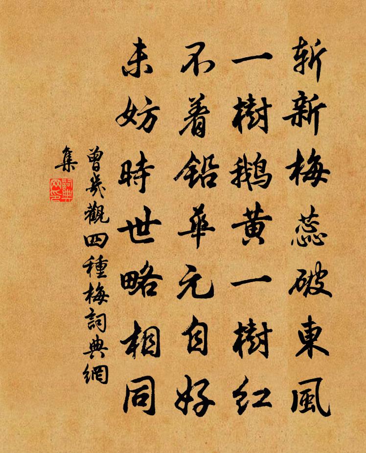 斬新梅蕊破東風,一樹鵝黃一樹紅。不著鉛華元自好,未妨時世略相同。