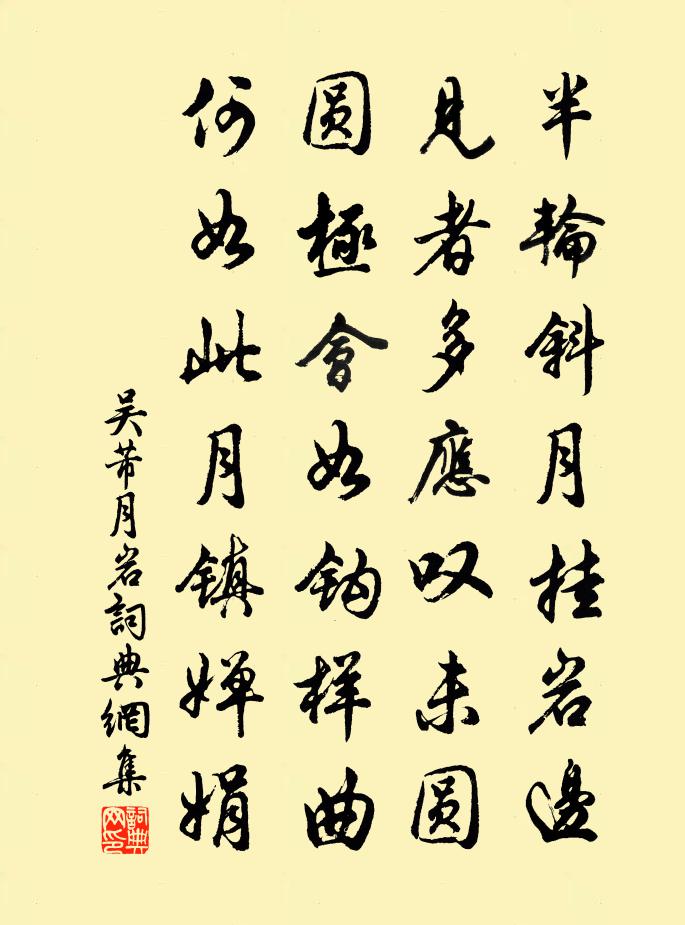 詩詞名句歷史字典書法欣賞書法字典國語詞典說文解字康熙字典古漢語字典標 題 作 者 詩 句 月岩作者:吳芾 朝代:宋代月岩原文半輪斜月掛岩邊,見者多應嘆未圓。圓極會如鉤樣曲,何如此月鎮嬋娟。詩詞問答問:月岩的作者是誰?答:吳芾問:月岩寫於哪個朝代?答:宋代吳芾月岩書法欣賞月岩書法作品詩詞推薦句張先〔宋代〕霓舟忽艤鱸魚鄉,槎閣卻凌雲漢域。楓樹舒岳祥〔宋代〕屈原廟外千株碧,高帝祠前萬葉紅。楚尾吳頭風景在,片帆不復更西東。頌古三十二首釋明辯〔宋代〕玉洞玄關道路長,蟠桃豈是等閒芳。遮藏不許人間見,只恐春風漏泄香。水仙釋智愚〔宋代〕芳心塵外潔,道韻雪中香。自是神仙骨,何勞更洗妝。戲贈李朝散蘇轍〔宋代〕江霧霏霏作雪天,樽前醉倒不知寒。後堂桃李春猶晚,試覓酥花子細看。雨中茲感寺泛舟李洪〔宋代〕渺渺江舟雨滿川,樓台煙靄幕愁邊。春風邀勒梅都謝,夜雨淋浪柳尚妍。僧缽偶分蒲塞供,佛香時送水沉煙。佳時和徐伯遠見寄三首王之道〔宋代〕三詩自可當尺書,得書何必須雙魚。黃花強把酬雪白,丐君捧腹聊軒渠。曲江二首杜甫〔唐代〕一片段預告飛減卻春,風飄萬點正愁人。且看欲盡花經眼,莫厭傷多酒入唇。江上小堂巢翡翠,花邊高冢臥麒麟。細推念奴嬌姜特立〔宋代〕宦途巇險,問急流勇退,幾人聞早。自別修門今正是,一紀生朝還到。綠野風光,平泉草木,爭似梅山好。園林如八月十夜廣文直聞永叔內當梅堯臣〔宋代〕聞向蓬萊宿,鰲峰第幾層。秋聲暗葉雨,殘夢空堂燈。推枕感孤雁,抽琴彈壞陵。誰知廣文直,桃簟冷於冰。五月下旬夢趙文鼎書寄斯遠趙蕃〔宋代〕我不見君死,直疑君固生。賦詩無所寄,始復為失聲。雞窗已三號,不但當既鳴。恍雲秋之中,取酒相與傾。坐有秋日湖上佚名〔唐代〕落日五湖游,煙波處處愁。沈浮千古事,誰與問東流。送蘇寺丞宰廣德宋庠〔宋代〕早捧諸侯檄,新登九列丞。庇身聊制錦,受命更懷冰。浦藥薰行櫂,江禾壓翠塍。高樓如可望,西北一長憑。送宋秀才綦毋潛〔唐代〕冠古積榮盛,當時數戟門。舊交丞相子,繼世五侯孫。長劍倚天外,短書盈萬言。秋風一送別,江上黯消魂。行路難贈蕭坦翁朱繼芳〔宋代〕行路難,居不易,旋買生柴煮一字。三千風不直一杯水,何用狂吟動天地。郡不見陸天隨。忍窮讀書白眼屠沽兒。句張良臣〔宋代〕老去青林又一霜。冷泉亭俞桂〔宋代〕步入侵雲嶺,亭高路恰平。池邊幽樹占,水底細沙明。無友詩難詠,逢僧話轉清。此中真勝地,林寂鳥無聲。新市雜詠十首華岳〔宋代〕遲遲蓮漏不相催,亭館地人午夜開。風欲捲簾花影動,夢魂疑是故人來。為仇近仁賦山村釋文珦〔宋代〕我愛山村人,自得山村趣。唯與漁樵狎,絕無軒冕慕。高情寄雲松,至樂在霜芋。長吟招隱詩,更作閒居賦。出處三月十七日以檄出行賑貸旬日而復反自州門至趙蕃〔宋代〕聞道高原尚苦乾,未妨平陸欲生湍。眼中乍見扶藜出,耳畔未嗟啼鳥歡。漢詔當知本寬大,豳詩政復著艱難。爾能名句推薦指也者,天下之所無也;物也者,天下之所有也。公孫龍《公孫龍子·指物論》 山無陵,江水為竭。佚名《上邪》 問姓驚初見,稱名憶舊容。李益《喜見外弟又言別》 人有不及,可以情恕。房玄齡《晉書·列傳·第六章》 信使可覆,器欲難量。周興嗣《千字文·全文》 思來江山外,望盡煙雲生。張九齡《秋晚登樓望南江入始興郡路》 墦間人散後,烏鳥正西東。范成大《清明日狸渡道中》 對瀟瀟暮雨灑江天,一番洗清秋。柳永《八聲甘州·對瀟瀟暮雨灑江天》 道之以政,齊之以刑,民免而無恥。孔子弟子《論語·為政篇》 入世冷挑紅雪去,離塵香割紫雲來。曹雪芹《訪妙玉乞紅梅》