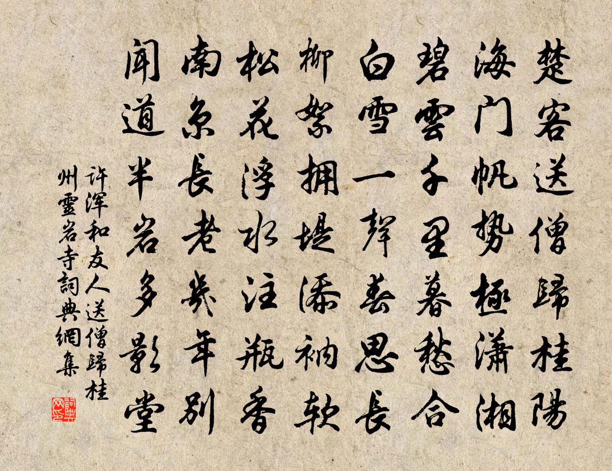 和友人送僧歸桂州靈岩寺原文
