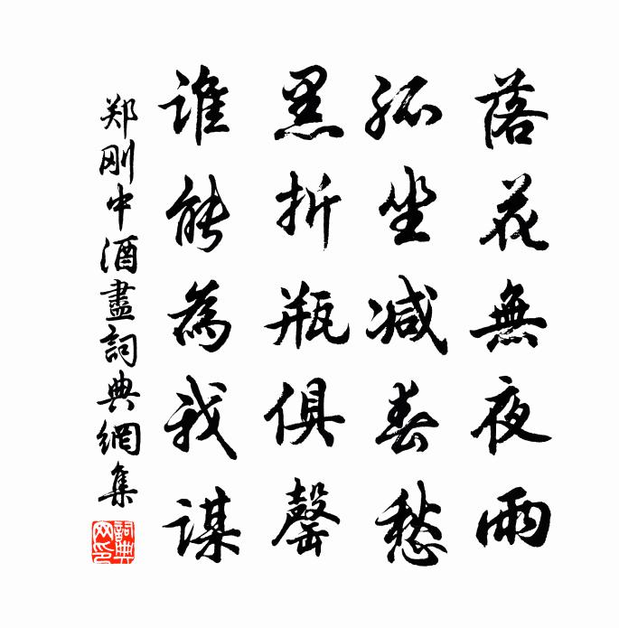 詩詞名句歷史字典書法欣賞書法字典國語詞典說文解字康熙字典古漢語字典標 題 作 者 詩 句 酒盡作者:鄭剛中 朝代:宋代酒盡原文落花無夜雨,孤坐減春愁。黑折瓶俱罄,誰能為我謀。詩詞問答問:酒盡的作者是誰?答:鄭剛中問:酒盡寫於哪個朝代?答:宋代鄭剛中酒盡書法欣賞酒盡書法作品詩詞推薦送三十叔赴任晉陵(心字)權德輿〔唐代〕春雲結暮陰,侍坐捧離襟。黃綬輕裝去,青門芳草深。十年塵右職,三逕寄遐心。便道停橈處,應過舊竹林。菊軒吟為劉君章作仇遠〔宋代〕大江秋風高,紅葉紛滿地。采采黃金華,專此秋富貴。主翁庭宇靜,霜日自清媚。豈不懷淵明,異榻同夢寐。春融對隔壍梅贈斯遠趙蕃〔宋代〕梅開壍邊勿渠陋,倚竹長年固成瘦。風期喚得高人就,幾度行看仍落齅。是花佳處絕難摹,思雖宛轉終不如。我詩臨江玉虛觀有牡丹思後輔亦正開恨不與集趙善括〔宋代〕絳苞翠幄壓朱欄,秀色生香觀里看。小圃相須春爛熳,大家應是醉團欒。名韁久縱心無累,利徑雖馳興易闌。但願寄梁隆吉方鳳〔宋代〕羨爾英年早息機,羅衣脫卻著荷衣。黃醪白釀供吟詠,野史稗官漫是非。舊事橫看東澗水,新餐誰共北山薇。金閨送靈應禪師(一作送禪師)周賀〔唐代〕寒天仍遠去,離寺雪霏霏。古蹟曾重到,生涯不暫歸。坐禪山店暝,補衲夜燈微。巡禮何時住,相逢的是稀。辭吊富沙梨山大王祠鄭起〔宋代〕梨山之陽兮有廟煌煌,州人祭享兮釃酒椎羊。王之未死兮守土此方,王之既死兮州人不志。建山之峭兮建水之長,雨中遣懷陸游〔宋代〕霏霏春雨細如絲,正是春寒欺客時。心向宦途元淡薄,夢尋鄉國苦參差。樓前新漲綠三尺,牆外尚余紅幾枝。擺撥沈莊可號菊花山人即其所言戴復古〔宋代〕老貌非前日,清吟似舊時。已無藏酒婦,幸有讀書兒。連歲修茅屋,三秋繞菊籬。寒儒有奇遇,太守為刊詩。後天易吟三十首方回〔宋代〕震位東方木,胡為以帝言。一芽觀出處,主宰見天根。槜李道中二首周文璞〔宋代〕臥龍山下聽吟松,細雨清明似夢中。柳蔭朱欄三百尺,渴烏猶自泣春風。題李公麟山莊圖其十延華洞蘇轍〔宋代〕共恨春不長,逡巡就搖落。一見洞中天,真知世間惡。夜宴詞四錫〔宋代〕天如瑟瑟盤,恢廓億萬里。古稱天傾西北半在地,夜轉繁星磨海水。逡巡轉上星彩高,北斗未定光飄飄。楚王夜入和參政丁侍郎洛下新植小園寄留台張郎中二首宋祁〔宋代〕水竹郊園占洛畿,私書素友約忘機。公今已為蒼生出,雖有雲山那得歸。春日即事俞桂〔宋代〕春光滿目是吳頭,水碧琉璃拍岸流。憶著去年桃葉渡,相思無限使人愁。薔薇二首李建勛〔唐代〕萬蕊爭開照檻光,詩家何物可相方。錦江風撼雲霞碎,仙子衣飄黼黻香。裛露早英濃壓架,背人狂蔓暗穿牆。彩箋泊冷水浦楊萬里〔宋代〕前夕放船湘口步,約到銜州來日午。五程一減作三程,謝渠江漲半篙清。今日雨來三四五,又閉疏篷聽暮雨。長年讀史陸游〔宋代〕顏良文丑知何益,關羽張飛死可傷。等是人間號驍將,太山寧比一毫芒。南陂遠望儲嗣宗〔唐代〕閒門橫古塘,紅樹已驚霜。獨立望秋草,野人耕夕陽。孤煙起蝸舍,飛鷺下漁梁。唯有田家事,依依似故鄉。張麗華墓劉克莊〔宋代〕台上柏蕭蕭,空堂閉寂寥。芳魂三尺土,往事幾回潮。墮翠尋難見,埋紅恨未銷。猶勝江令在,白首入隋朝。名句推薦青楓江上秋帆遠,白帝城邊古木疏。高適《送李少府貶峽中王少府貶長沙》 紅板橋空,濺裙人去,依舊曉風殘月。納蘭性德《淡黃柳·詠柳》 凡學之道,嚴師為難。戴聖《禮記·學記》 清香隨風發,落日好鳥歸。李白《詠鄰女東窗海石榴》 問姓驚初見,稱名憶舊容。李益《喜見外弟又言別》 傷心千古,秦淮一片明月!薩都剌《念奴嬌·登石頭城次東坡韻》 仁義禮善之於人也,辟之若貨財粟米之於家也。荀子《荀子·大略》 相馬失之瘦,相士失之貧。司馬遷《史記·滑稽列傳》 一曲當筵落淚,重掩羅巾。晏殊《山亭柳·贈歌者》 父母教,須敬聽。父母責,須順承。李毓秀《弟子規·入則孝》