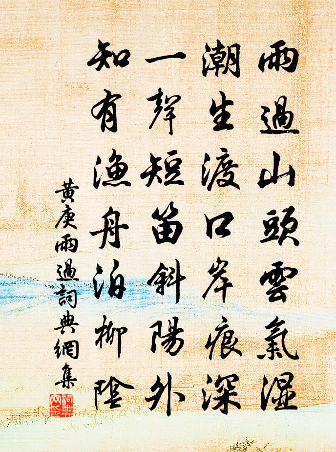 詩詞名句歷史字典書法欣賞書法字典國語詞典說文解字康熙字典古漢語字典標 題 作 者 詩 句 雨過作者:黃庚 朝代:宋代雨過原文雨過山頭雲氣濕,潮生渡口岸痕深。一聲短笛斜陽外,知有漁舟泊柳陰。詩詞問答問:雨過的作者是誰?答:黃庚問:雨過寫於哪個朝代?答:宋代黃庚雨過書法欣賞雨過書法作品詩詞推薦先兩國初忌文天祥〔宋代〕北風吹黃花,落木寒蕭颼。哀哀我慈母,玉化炎海秋。日月水東流,音容隔悠悠。小祥哭下邳,大祥哭幽州。今此憶與唐公游西湖宋祁〔宋代〕紅鮮高下照橫溪,勃窣含 * 上堤。手攬緗莖那忍折,戲魚長在葉東西。題楊次公蕙蘇軾〔宋代〕蕙本蘭之族,依然臭味同。曾為水仙佩,相識楚詞中。幻色雖非實,真香亦竟空。發何起微馥,鼻觀已先通。邀涼亭五首彭龜年〔宋代〕簿書本不俗,定能礙涼颸。少陵冰壑心,卻恨與事違。宮詞王珪〔唐代〕侍輦歸來步玉階,試穿金縷鳳頭鞋。階前摘得宜男草,笑插黃金十二釵。山居寄友人姚合〔唐代〕獨在山阿里,朝朝遂性情。曉泉和雨落,秋草上階生。因客始沽酒,借書方到城。詩情聊自遣,不是趁聲名。九里松李石〔宋代〕荷花湖上船,松影沙外渡。松行又九里,涼蘚引深步。石橋枕溪斜,中有入山路。意行忘屈曲,拄杖扣層戶。入門送李嘉祐正字括圖書兼往揚州覲省司空曙〔唐代〕不事蘭台貴,全多韋帶風。儒官比劉向,使者得陳農。晚燒平蕪外,朝陽疊浪東。歸來喜調膳,寒筍出林中。感皇恩 贈元舜舉。嘗為宋文屯田官,以善歌王惲〔元代〕今夕是何年,故人相遇。快著銀杯瀉春露。高陽舊友,要聽一聲金縷。行雲留不去、驚如許。鳳*微吟,珠繩低度暗香吳潛〔宋代〕澹然絕色。記故園月下,吹殘龍笛。悵望楚雲,日日歸心大刀折。猶怕冰條冷蕊,輕點污、丹青凡筆。可怪底,屈南柯子譚處端〔元代〕雲去南山靜,風來渭水寒。凌波凝結一團團。萬里晴空,清爽此時觀。雄劍鳴開匣,人頭落玉盤。一輪明月上欄桿送鄭秉叔西征王邁〔宋代〕聊轡而西三十程,風餐雨宿費經營。間關閱舊途經熟,老大逢新曆日驚。我正與時相枘鑒,君方隨詔赴弓旌。獨班歸途喜晴陳文蔚〔宋代〕來時風雪亂紛紛,歸日川原處處春。因識發生真意思,雨餘花柳更精神。東山道院白玉蟾〔宋代〕煙月荒涼野色寒,松梢滴露夜將闌。人家曠絕無雞犬,一鶴飛來點翠山。南亭韓偓〔唐代〕每日在南亭,南亭似僧院。人語靜先聞,鳥啼深不見。松瘦石稜稜,山光溪澱澱。塹蔓墜長茸,島花垂小蒨。行簪送黃機宜叔愚歸省四明喻良能〔宋代〕灑落孤標第一流,笑談傾座氣橫秋。聊參機密東州幕,曾與風流玉局游。聽雨忽驚形夢寐,臨風那肯更遲留。橘堂金陵府舍重建金山亭二首蘇頌〔宋代〕故時台榭對池心,空有名傳擬穴金。鬋理茅茨修竹茂,經營軒檻綠楊深。橋橫斷岸虹流彩,花滿芳園鳥囀音。盛府上劉計使陳元晉〔宋代〕水心吾師今昌黎,如椽巨筆光虹蜺。先公潛德粲版,卻恨不識嵇中散。九苞五彩丹穴雛,不巢阿閣翔海隅。南來只蝶戀花陳允平〔宋代〕落盡櫻桃春去後。舞絮飛綿,撲簌穿簾牖。異別情懷愁對酒。翠條折贈勞親手。繡幕深沉寒尚透。雨雨晴晴,妝點阮郎歸向滈〔宋代〕隔離疏影照橫塘。東風吹暗香。隴頭歸路指蒼茫。江南春興長。扃小院,靜迴廊。有人憑短牆。角聲驚夢月橫窗。名句推薦陌上花開蝴蝶飛,江山猶是昔人非。蘇軾《陌上花三首》 所作福德不應貪著。鳩摩羅什譯《金剛經·不受不貪》 白日淪西河,素月出東嶺。陶淵明《雜詩十二首·其二》 法令至行,公平無私劉向《戰國策·秦一·衛鞅亡魏入秦》 江南憶,最憶是杭州。白居易《憶江南詞三首》 白頭搔更短,渾欲不勝簪。杜甫《春望》 南去北來徒自老,故人稀。賀鑄《釣船歸·綠淨春深好染衣》 千里稻花應秀色,五更桐葉最佳音。曾幾《蘇秀道中》 心欲小而志欲大,智欲員而行欲方劉安及其門客《淮南子·主術訓》 黃梅時節家家雨,青草池塘處處蛙。趙師秀《約客 / 有約》