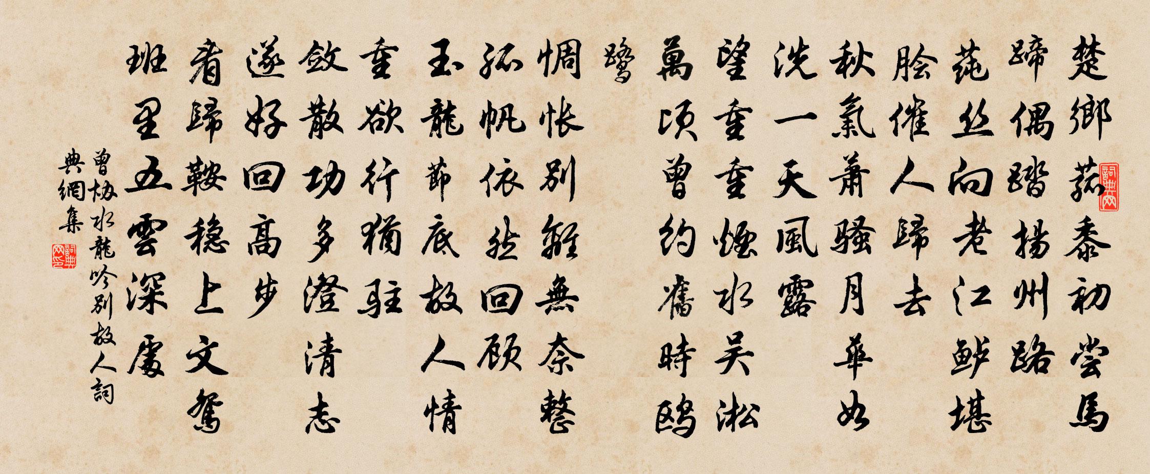 詩詞名句歷史字典書法欣賞書法字典國語詞典說文解字康熙字典古漢語字典標 題 作 者 詩 句 水龍吟(別故人)作者:曾協 朝代:宋代水龍吟(別故人)原文楚鄉菰黍初嘗,馬蹄偶踏揚州路。蓴絲向老,江鱸堪膾,催人歸去。秋氣蕭騷,月華如洗,一天風露。望重重煙水,吳淞萬頃,曾約舊時鷗鷺。惆悵別離無奈,整孤帆、依然回顧。玉龍節底,故人情重,欲行猶駐。斂散功多,澄清志遂,好回高步。看歸鞍穩上,文鴛班裡,五雲深處。詩詞問答問:水龍吟(別故人)的作者是誰?答:曾協問:水龍吟(別故人)寫於哪個朝代?答:宋代問:水龍吟(別故人)是什麼體裁?答:詞曾協水龍吟(別故人)書法欣賞水龍吟(別故人)書法作品詩詞推薦觀獵會圖朱翌〔宋代〕一日射雉六十三,命中要是人所難。一日射虎三直六,驍勇無前誰不伏。沙平草軟雪泥乾,手拓弓弦腰兩鏃。祥麟浣溪沙向子諲〔宋代〕樂在煙波釣是閒。草堂松桂已勝攀。梢梢新月幾回彎。一碧太湖三萬頃,屹然相對洞庭山。況風浪起且須還。簡仁山海老用山谷贈靈源老人韻李處權〔宋代〕禪關無復老萊衣,陟屺心摧怨夕暉。泣血可憐猶不死,望鄉無處欲何歸。仁山老子方傳法,枯木堂中久息機。不見己丑二月三日大風雨雪 其一王冕〔元代〕狂風推雲若山倒,積雪滿路行人稀。大家得意頻喚酒,老子畏寒愁解衣。梅花出竹似索笑,沙鷗見我能忘機。卻思鴻門宴王轂〔唐代〕寰海沸兮爭戰苦,風雲愁兮會龍虎。四百年漢欲開基,項莊一劍何虛舞。殊不知人心去暴秦,天意歸明主。項王足正月十三日過鄧師契邂逅伯山在焉師契置酒因趙蕃〔宋代〕竹已連梢種,梅應帶蒂栽。因留看書帖,更辱倒尊罍。勝士亦俱集,好懷端為開。春風不拘束,兩鬢自摧頹。柳梢青(湯)李處全〔宋代〕余甘齒頰。酒□半酣,漏聲頻促。月下傳呼,風前摻別,無因留客。丁寧玉筍磨香,為料理、十分醒著。後會何時游溫陵得未得之士四人作四愛詩贈順夫履信王邁〔宋代〕吾愛清源陳順夫,妙齡足跡江湖上。三湘舟里詩成束,百尺樓前酒滿壺。科目豈淹真後傑,世間誰飽滿侏儒。長安寧宗郊祀二十九首學士院〔宋代〕合祀丘澤,登侑祖宗。顧諟惟粗,靈承惟恭。有岩皇備,有莊帝容。監於克誠,肅肅雍雍。劉後溪和雁湖即事詩十絕見示次韻洪咨夔〔宋代〕雪花白盡沔山頭,咽咽冰澌沔水流。不見將軍闞如虎,行人猶指定功樓。病中方岳〔宋代〕折鐺破釜底堪修,縱使修成已不侔。誰與吾身自珍重,暮年藥籠漫勞收。徐孺亭蘇轍〔宋代〕徐君鬱郁澗底松,陳君落落堂上棟。澗深松茂不遭伐,堂毀棟折傷其躬。二人出處勢不合,譬如日月行西東。胡為郊行釋惠高〔宋代〕野田分路入誰家,綠樹鳴鶯坎鬧蛙。過午歇涼人睡足,村村水滿稻吹花。和晉公三首李紳〔唐代〕鳳儀常欲附,蚊力自知微。願假樽罍末,膺門自此依。貂蟬公獨步,鴛鷺我同群。插羽先飛酒,交鋒便著文。窮陰物外雜題陸游〔宋代〕當年下沔鄂,回首幾秋風?景物渾如昨,千帆落照中。用前韻呈德瞻劉錡〔宋代〕門外蹄輪任跡疎,一廛深稱水雲居。平生事業將何用,嘆括空能讀父書。韓魏公席上為官妓賈愛卿作李師中〔宋代〕願得貔貅十萬兵,犬戎巢穴一時平。歸來不用封侯印,只問君王乞愛卿。緣識宋太宗〔宋代〕高山樹葉翠森森,寂靜因中道最深。利得崑崙皆璞玉,不須麗水有真金。澆漓漸變同堯日,薄俗將重理舜琴。禍福借吳直軒韻別黃仲宣楊公遠〔宋代〕世路間關迥不同,生涯淡薄硯池中。買蓑去伴玄真子,著句來違黃石公。雖慰曉猿兼夜鶴,卻嗟社燕與秋鴻。從今次韻知郡安撫元夕賞倅廳紅梅范成大〔宋代〕司花一笑為誰開?知道朱幡得得來。疏影有情當洞戶,蔫香無語墮空杯。風生翰墨留連看,月入笙歌次第催。來歲名句推薦秋風別蘇武,寒水送荊軻。庾信《擬詠懷二十七首·其二十六》 日下壁而沉彩,月上軒而飛光。江淹《別賦》 一種相思,兩處閒愁。李清照《一剪梅·紅藕香殘玉簟秋》 當關不報侵晨客,新得佳人字莫愁。李商隱《富平少侯》 用兵之道,先勝後戰。陳壽《三國志·魏書·荀彧攸賈詡傳》 竹外一枝斜,想佳人,天寒日暮。曹組《驀山溪·梅》 夜來幽夢忽還鄉,小軒窗,正梳妝。相顧無言,惟有淚千行。蘇軾《江城子·乙卯正月二十日夜記夢》 三教於是乎可一矣。王通《中說·卷五·問易篇》 丈夫志,當景盛,恥疏閒。蘇舜欽《水調歌頭·滄浪亭》 廉者常樂無求,貪者常憂不足。王通《中說·卷一·王道篇》