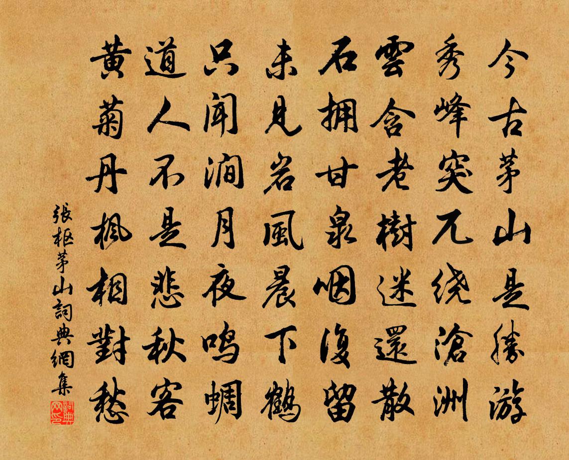 詩詞名句歷史字典書法欣賞書法字典國語詞典說文解字康熙字典古漢語字典標 題 作 者 詩 句 茅山作者:張樞 朝代:宋代茅山原文今古茅山是勝游,秀峰突兀繞滄洲。雲含老樹迷還散,石擁甘泉咽復留。未見岩風晨下鶴,只聞澗月夜鳴蜩。道人不是悲秋客,黃1/1菊丹楓相對愁。詩詞問答問:茅山的作者是誰?答:張樞問:茅山寫於哪個朝代?答:宋代張樞茅山書法欣賞茅山書法作品詩詞推薦贈苦行僧釋文珦〔宋代〕泯然諸念盡,木食貌常羸。林下身雖老,人間事不知。持經被艾衲,禮像爇楓脂。不是忘形者,終難學爾為。和王詹叔寄彭年四首韓維〔宋代〕層樓飛觀壓溪流,縹緲當從海上求。病間體輕塵慮靜,好追仙子御風游。次韻和度支蘇員外覆考進士文卷鎖宿景福殿宋庠〔宋代〕秘邃嚴廬斗極傍,知君此夕較連章。天移宿幕鄰堯屋,霞灩仙杯雜嵰霜。坐覺銅籤隨漏箭,臥驚銀漢入宮牆。精心答李頻秀才姚合〔唐代〕一年離九陌,壁上掛朝袍。物外詩情遠,人間酒味高。思歸知病長,失寢覺神勞。衰老無多思,因君把筆毫。用韻寄仲模鄭剛中〔宋代〕又暖屠蘇入酒杯,可憐年去復年來。但能雕琢愁肝腎,豈慣縱橫強頰腮。先子丘園荒不理,故人懷抱遠離開。行藏偈頌七十六首釋師觀〔宋代〕收麥才了插秧來,終日忙忙安在哉。直下更無迴避所,優缽羅花當處開。題寺壁二首劉克莊〔宋代〕柏子薰衣眉暈銷,女垣榆影冷蕭蕭。屏山一枕遊方夢,橫錫飄然過石橋。柳張耒〔宋代〕永豐坊里舊腰支,曾見青青初種時。看盡道邊離別恨,爭教風絮不狂飛。端午帖子九首曹勛〔宋代〕日華露重疏疏竹,寶砌風回楚楚松。酪粉冰壺驅薄暑,瑤琴永日得從容。江晦叔見訪於興國寺見庭中修竹兩竿雲竹雖不孔武仲〔宋代〕憶昨在江都,聯君城一曲。我家百色無,唯有數竿竹。琅玕淨相倚,蕭灑意常足。君亦時見過,笑語伴幽獨。別來白蘭王鎡〔宋代〕楚客曾因葬水中,骨寒化出玉玲瓏。生時不飲香魂醒,難著春風半點紅。挽黃提舉震三章陳著〔宋代〕當年時事誰,咄咄賦歸與。同是無枝鵲,危如游釜魚。偷生盟世好,訪遠記山居。已矣向誰慟,兒孫書滿廬。偈頌一百五十首釋心月〔宋代〕一夏三個月,已過兩個月。子細好生觀,只餘一個月。說與林下人,莫空度歲月。淳佑辛酉立秋後一日游鼓山釋道沖〔宋代〕野徑斜連石澗傍,草根昵昵語寒螿。郊原經雨多秋意,庭院無人自夕陽。風卷暮雲歸碧嶂,葉隨野水入寒塘。數家和叔夏田舍三絕胡寅〔宋代〕作堨辛勤雨更遲,桔槔誰語漢陰知。不嫌機事侵純白,一日何妨灌百畦。還東山洛上作岑參〔唐代〕春流急不淺,歸枻去何遲。愁客葉舟里,夕陽花水時。雲晴開螮蝀,棹發起鸕鶿。莫道東山遠,衡門在夢思。送賓貢登第後歸海東杜荀鶴〔唐代〕歸捷中華第,登船鬢未絲。直應天上桂,別有海東枝。國界波窮處,鄉心日出時。西風送君去,莫慮到家遲。郡樓曾鞏〔宋代〕滿眼青山更上樓,偶攜閒客此閒遊。飛花不盡隨風起,野水無邊帶雨流。懷舊有情惟社燕,忘機相得更沙鷗。黃金頌古三首釋欽〔宋代〕有句無句,明來暗去。活捉生擒,捷書露布。如藤倚樹,物以類聚。海外人參,蜀中附子。樹倒藤枯,切忌名模。憶仙姿/如夢令洪皓〔宋代〕乍到園亭清處。面面此君忘去。把酒挹幽人,仰止七賢高趣。吳語。吳語。弗見滿城風絮。名句推薦敗荷零落,衰楊掩映,岸邊兩兩三三,浣沙游女。柳永《夜半樂·凍雲黯淡天氣》 知足之心,可用之以處境,不可用之以讀書。王永彬《圍爐夜話·第一五九則》 水風輕,蘋花漸老,月露冷、梧葉飄黃。柳永《玉蝴蝶·望處雨收雲斷》 九衢雪小,千門月淡,元宵燈近。晁端禮《水龍吟·詠月》 坐到三更盡,歸仍萬里賒。戎昱《桂州臘夜》 見說新愁,如今也到鷗邊張炎《高陽台·西湖春感》 誤落塵網中,一去三十年。陶淵明《歸園田居·其一》 形勝三分國,波流萬世功。潘大臨《江間作四首·其三》 奈何今之人,雙目送飛鴻。李白《鞠歌行》 歌沉玉樹,古寺空有疏鍾發。李綱《六么令·次韻和賀方回金陵懷古鄱陽席上作》