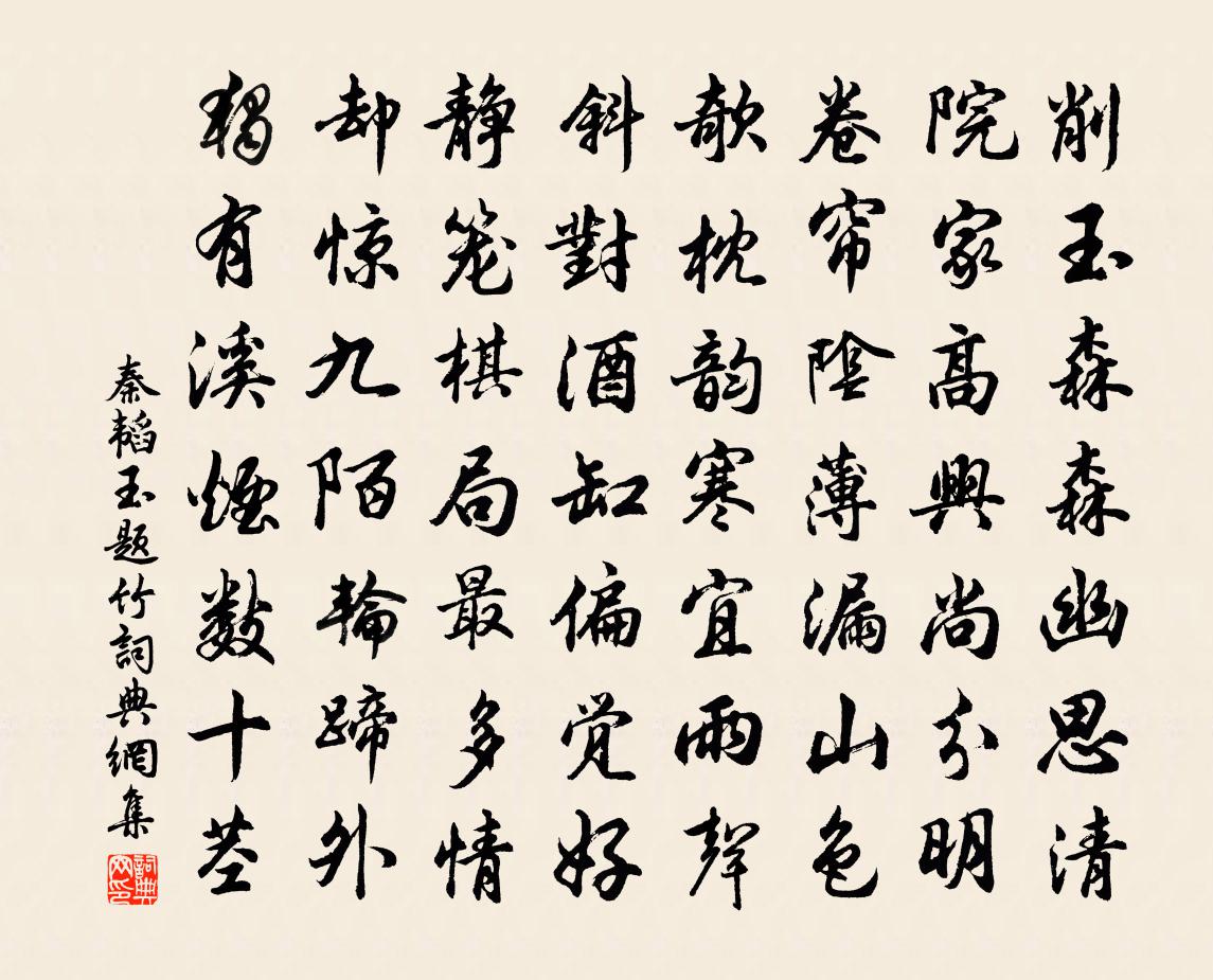 詩詞名句歷史字典書法欣賞書法字典國語詞典說文解字康熙字典古漢語字典標 題 作 者 詩 句 題竹作者:秦韜玉 朝代:唐代題竹原文削玉森森幽思清,院家高興尚分明。捲簾陰薄漏山色,欹枕韻寒宜雨聲。斜對酒缸偏覺好,靜籠棋局最多情。卻驚九陌輪蹄外,獨有溪煙數十莖。詩詞問答問:題竹的作者是誰?答:秦韜玉問:題竹寫於哪個朝代?答:唐代問:題竹是什麼體裁?答:七律秦韜玉題竹書法欣賞題竹書法作品注釋全唐詩:卷670-6詩詞推薦浪淘沙惠洪〔宋代〕山徑晚樵遠。深壑孱顏。孫山背後泊船看。手把遺編披白帔,剩卻清閒。籬落竹叢寒。漁業凋殘。水痕無底照秋寬【中呂】朝天子關漢卿〔元代〕書所見鬢鴉,臉霞,屈殺將陪嫁。規模全是大人家,不在紅娘下。笑眼偷瞧,文談回話,真如解語花。若咱得他,聽航船歌十首方回〔宋代〕莫笑船家生事微,新紅米飯緣蓑衣。一聲欸和一聲乃,誰識人間有是非。春日江居寓懷薛能〔唐代〕歸興乍離邊,蘭橈復錦川。斫春槎枿樹,消雪土膏田。岸暖尋新菜,舟寒著舊綿。臨邛若個是,欲向酒家眠。游青城山楊可弼〔宋代〕我笑羊叔子,峴首矜一生。又怪謝阿客,伐山覓崢嶸。豈如銅梁守,出門便赤城。烏夜啼(醉枕不能寐)程垓〔宋代〕白酒欺人易醉,黃花笑我多愁。一年只有秋光好,獨自卻悲秋。風急常吹夢去,月遲多為人留。半黃橙子和詩卷,西嶽雲台歌送丹丘子李白〔唐代〕西嶽崢嶸何壯哉!黃河如絲天際來。黃河萬里觸山動,盤渦轂轉秦地雷。榮光休氣紛五彩,千年一清聖人在。巨靈次韻楊廷秀郎中游西湖十絕喻良能〔宋代〕憶昔孤山和靖家,光風霽月總輸他。幾多水草連菸草,無限苹花雜藕花。偶成艾性夫〔宋代〕似是輪囷老蠹魚,尚饒蘭露入銅蜍。詩亡正恐魯無史,士賤豈容秦有書。世味幾時回橄欖,秋山隨地著蘧廬。多情送趙王賓三首文天祥〔宋代〕蕭然被褐不求知,歸倚溪船理釣絲。卻笑荊山空自售,未應有智不如葵。贈董無求吳則禮〔宋代〕董侯湖海俊,短小精悍姿。梁園固多士,未至獨好辭。相逢要作語,老語竟不奇。飽知匡鼎來,吾曹無說詩。乍涼陸游〔宋代〕涼風蘇病骨,搖落起詩情。一病輒數日,幾詩終此生?招呼丹灶客,結束玉霄行。預想溪橋路,三更待月明。句釋惠崇〔宋代〕江花凌霰發,山溜入池深。句徐安貞〔唐代〕暮雨衣猶濕,春風帆正開。(《雲溪友議》)菊花元稹〔唐代〕秋叢繞舍似陶家,遍繞籬邊日漸斜。不是花中偏愛菊,此花開盡更無花。日暮池上晁說之〔宋代〕客子難為夏,池塘眼暫開。蓮房隨月倚,萍陣信風來。自喜親茶杓,無煩問酒杯。故人行在樂,獻納有雲台。贈醫士詹翠峰熊禾〔宋代〕我觀卦氣先天圖,更參岐伯答問書。雖然三墳不可得,此即造化陰陽樞。超然便可會大道,學不至此應非儒。醫亦送錢太虛同年李流謙〔宋代〕不隔同年面,真情本弟兄。人能純白備,交自始終成。測管才窺豹,傾江試吸鯨。吾言蓍蔡驗,決矣看飛鳴。玉樓春(大石·第二)周邦彥〔宋代〕大堤花艷驚郎目。秀色穠華看不足。休將寶瑟寫幽懷,座上有人能顧曲。平波落照涵赬玉。畫舸亭亭浮澹淥。臨分葺居五首蘇轍〔宋代〕東南皆民居,屋敗如齬齒。一完誠未能,綴葺聊且爾。內修晨夜虞,外結比鄰喜。無心本何營,生理未免此。名句推薦反古者未必可非,循禮者未足多是也。商鞅《商君書·更法》 孝子之至,莫大乎尊親。孟子《孟子·萬章章句上·第四節》 饒人不是痴漢,痴漢不會饒人。佚名《增廣賢文·上集》 況復煩促倦,激烈思時康。杜甫《夏夜嘆》 春近寒雖轉,梅舒雪尚飄。陰鏗《雪裡梅花詩》 笑漸不聞聲漸悄,多情卻被無情惱。蘇軾《蝶戀花·春景》 千里搭長棚,沒有個不散的筵席曹雪芹《紅樓夢·第二十六回》 德彌盛者文彌縟,德彌彰者人彌明。王充《論衡·卷二十八·書解篇》 東風力,快將雲雁高送。吳文英《宴清都·送馬林屋赴南宮分韻得動字》 同心一人去,坐覺長安空。白居易《別元九後詠所懷》