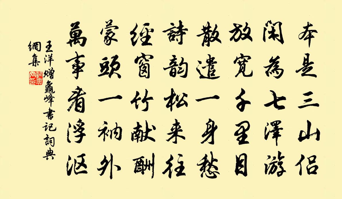 詩詞名句歷史字典書法欣賞書法字典國語詞典說文解字康熙字典古漢語字典標 題 作 者 詩 句 贈龜峰書記作者:王洋 朝代:宋代贈龜峰書記原文本是三山侶,閒為七澤游。放寬千里目,散遣一身愁。詩韻松來往,經窗竹獻酬。蒙頭一衲外,萬事看浮漚。詩詞問答問:贈龜峰書記的作者是誰?答:王洋問:贈龜峰書記寫於哪個朝代?答:宋代王洋贈龜峰書記書法欣賞贈龜峰書記書法作品詩詞推薦香閨十詠紫香囊張玉孃〔宋代〕珍重天孫剪紫霞,沉香羞認舊敏華。紉蘭獨抱靈均操,不帶春風兒女花。賢者之孝二百四十首竇融林同〔宋代〕璽書來萬里,鼎足許三分。解道為忠易,誰知以孝聞。上方寺范成大〔宋代〕檥棹古銷夏,搘筇新上方。珠灣鎖員折,冰鏡沉空光。楓纈醉晴日,橘黃明蚤霜。閒門松竹徑,隨處有清涼。奉酬襲美苦雨見寄陸龜蒙〔唐代〕松篁交加午陰黑,別是江南煙靄國。頑雲猛雨更相欺,聲似虓號色如墨。茅茨裛爛檐生衣,夜夜化為螢火飛。螢飛感遇岑參〔唐代〕五花驄馬七香車,雲是平陽帝子家。鳳凰城頭日欲斜,門前高樹鳴春鴉。漢家魯元君不聞,今作城西一古墳。昔來百寶裝/新燕過妝樓晁端禮〔宋代〕楓葉初丹,苹花漸老,蘅皋誰系扁舟。故人思我,征棹少淹留。一尊瀲灩西風裡,共醉倒、同銷萬古愁。況今宵自出郊用劭農韻三首吳潛〔宋代〕連檣載米去輸官,只得將為樂土看。餉互豚蹄秋願了,飽均雞犬午舂殘。門前掃刮犁鋤淨,屋上鋪添稾秸乾。識字池蓮四詠分韻葉劉子翬〔宋代〕郁烈香浮雨,團欒綠蔭波,近堤千葉亂,知有畫船過。青蓮池上客 俗青玉案攢三拆字 繼重陽韻馬鈺〔元代〕財寶俱捐也。憶些瀟灑。真修無苟且。調暢,自然舒*。馬回公惹。爐煉丹難捨。功如冶。山侗成清雅。神彩,莫伯父新園項安世〔宋代〕屋後回堤可當山,屋前溝港轉清灣。行人自笑高花外,倦客方吟積翠間。曲折故應憐窈窕,崎嶇未覺厭躋攀。小橋小築陸游〔宋代〕小築清溪尾,蕭森萬竹蟠。庵廬雖偪仄,庭戶亦平寬。摘果觀猿哺,開籠放鶴盤。澹然還過日,無處著悲歡。詠史下侯景陳普〔宋代〕曹操桓溫不自持,跛侯面上雨淋漓。奸人何事乾坤裹,一日雷霆十二時。興京陪祭福陵納蘭性德〔清代〕龍盤鳳翥氣佳哉,東指齋宮玉輦來。影入松楸仙仗遠,香升俎豆曉雲開。盛儀備處千官肅,神貺乘時萬馬回。豹尾詩酒陸游〔宋代〕我生寓詩酒,本以全吾真。酒既工作病,詩亦能窮人。每欲兩忘之,永為耕樵民;周旋日已久,棄去終無因。齒髮送僧歸護國寺宋綬〔宋代〕台嶺分燈契上機,政庭傳教及禪扉。供開薄饌持盂至,夢憶霞標振策歸。吟硯自澄晨磬徹,經窗間掩夕香微。袍紋題汪水雲詩卷十首胡斗南〔宋代〕老來無意謁侯門,自愛梅花水月村。更擬孤山結茅屋,杖藜聊覆信乾坤。寄江東李判官皇甫冉〔唐代〕遠懷不可道,歷稔倦離憂。洛下聞新雁,江南想暮秋。澄清佐八使,綱紀案諸侯。地識吳平久,才當晉用求。時賢老學庵陸游〔宋代〕老學衡茅底,秋毫敢自欺。開編常默識,閉戶有餘師。大節艱危見,真心夢寐知。唐虞元在眼,生世未為遲。奉和秘監洪丈迎諫議徐公建除之什並次元韻蘇籀〔宋代〕建極翊皇輿,蓬廬懷致主。除書肆時夏,提綱眾目舉。滿朝想風采,愛及巾墊雨。平平戒自守,落落進攻取。定傾送樊琯司業歸朝唐彥謙〔唐代〕近者蘇司業,文雄道最光。夫君居太學,妙譽繼中行。汲郡陵初發,汾陰篋久亡。寂寥方倚席,容易忽升堂。去日名句推薦杯酒相延,今夕不應慳。陳著《江城子·中秋早雨晚晴》 察見淵魚者不詳,智料隱匿者有殃。列子及其弟子《列子·說符》 道同方獲其利,道異惟受其害。來俊臣《羅織經·察奸卷第八》 審知四度,可以定天下,可安一國。佚名《黃帝四經·經法·四度》 行到水窮處,坐看雲起時。王維《終南別業 / 初至山中 / 入山寄城中故人》 牧童歸去橫牛背,短笛無腔信口吹。雷震《村晚》 掛席幾千里,名山都未逢。孟浩然《晚泊潯陽望廬山》 凍風時作,作則飛沙走礫。袁宏道《滿井遊記》 天長地久有時盡,此恨綿綿無絕期。白居易《長恨歌》 恩疏寵不及,桃李傷春風。李白《上之回》