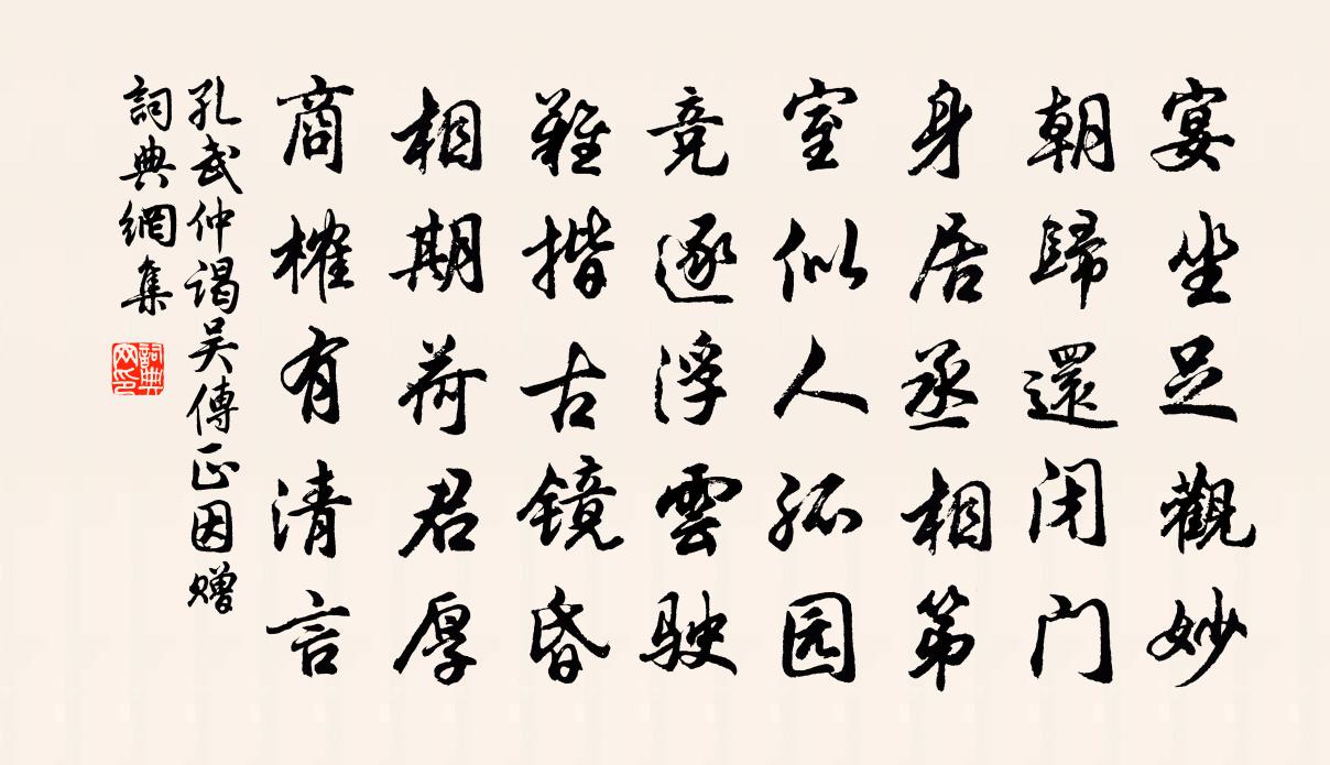 詩詞名句歷史字典書法欣賞書法字典國語詞典說文解字康熙字典古漢語字典標 題 作 者 詩 句 謁吳傳正因贈作者:孔武仲 朝代:宋代謁吳傳正因贈原文宴坐足觀妙,朝歸還閉門。身居丞相第,室似人孤園。競逐浮雲駛,難揩古鏡昏。相期荷君厚,商榷有清言。詩詞問答問:謁吳傳正因贈的作者是誰?答:孔武仲問:謁吳傳正因贈寫於哪個朝代?答:宋代孔武仲謁吳傳正因贈書法欣賞謁吳傳正因贈書法作品詩詞推薦居官一首呈大受明舉郭印〔宋代〕未有林泉分,紅塵且強顏。最憐官舍僻,不羨野人閒。疏密門前樹,高低城上山。偶逢佳客至,縱步得追攀。伯時往河東戲與廉夫分韻道相思之意三首傅察〔宋代〕之子何磊落,本是青雲才。委翅蓬蒿下,黧面垂髤{上髟下思}。卜鄰與我游,肝膽向人開。酒酣遺世累,謔浪絕是日宿水陸寺寄北山清順僧二首蘇軾〔宋代〕草沒河堤雨暗村,寺藏修竹不知門。拾薪煮藥憐僧病,掃地焚香淨客魂。農事未休侵小雪,佛燈初上報黃昏。年來送陳仲容寺丞知冤句梅堯臣〔宋代〕憶昨宿蘭省,每倦喜君談。月色夜正寒,舉杯無再三。既出罕相遇,必謂跨歸驂。忽來冒炎暑,別我為子男。冤句紙窗方回〔宋代〕梅水仙花插古銅,紙窗通日不通風。天香何假龍涎爇,地暖無勞獸炭烘。山林釋文珦〔宋代〕舊無卓錐地,今者亦忘錐。中心子無著,清淨如流離。野猿偶然來,問我何所為。道我此意真,長嘯不相疑。灞岸別友戴叔倫〔唐代〕車馬去遲遲,離言未盡時。看花一醉別,會面幾年期。樵路高山館,漁洲楚帝祠。南登回首處,猶得望京師。漁家傲張炎〔宋代〕辛苦移家聊處靜。掃除花徑歌聲趁。也學維摩閒示病。迂疏甚。松風兩耳和衣枕。頗倦扶筇尋捷徑。東牆藹藹紅香次韻和秀上人長安寺居言懷寄渚宮禪者鄭谷〔唐代〕舊齋松老別多年,香社人稀喪亂間。出寺只知趨內殿,閉門長似在深山。臥聽秦樹秋鍾斷,吟想荊江夕鳥還。唯恐先生跋所藏湯君墨梅約諸人賦詩俾文蔚亦題其陳文蔚〔宋代〕皎皎冰雪姿,黯然宜水墨。卻恐施丹素,翻令涴顏色。孤山水雲深,庾嶺林月黑。晴窗一揮染,想像意俱得。挽趙虛齋二首劉克莊〔宋代〕俱列儒臣侍細氈,各為逐客問歸船。親賢有詔徵劉向,疏遠無人贖史遷。當日金台諸客散,暮年鐵壁幾人全。傷心偈頌四十一首釋慧暉〔宋代〕小春霜刃,大家雪機。一堂禪侶,三世節制。時光可惜,歲花不留。自晨至暮,吃飯飲茶。道者一個,無得禪心。寄題陳晞顏敦復齋曾協〔宋代〕一入虛齋百慮覺,箇中何待覓知音。雪收未起龍蛇蟄,境靜初窺天地心。五里霧中藏豹穩,九重淵底得珠深。自從新晴有感宋孝宗〔宋代〕春風歸草木,曉日麗山河。物滯欣逢泰,時豐自此多。神州應未遠,當繼沛中歌。和陳南仲郎中見貽曹勛〔宋代〕潁川先生氣佳哉,軟語款細懷抱開。萬言倚馬有餘味,一室掃地無纖埃。懸知得句先缽韻,便覺北南瞻斗魁。向來它山堰次永嘉薛叔振韻魏峴〔宋代〕一朝堰此水,千載粒吾民。只仰溪為雨,何勞旱望雲。四時人飲碧,六月稻嘗新。流出心源澤,年年惠我鄞。句王隨〔宋代〕一聲啼鳥禁門靜,滿地落花春日長。春天吟邵雍〔宋代〕一片春天在眼前,眼前須識好春天。春秋冬夏能無累,雪月風花都一連。能用真腴為事業,豈防他物害暄妍。我生水調歌頭朱熹〔宋代〕不見嚴夫子,寂寞富春山。空餘千太危石,高插暮雲端。想像羊裘披了,一笑兩忘身世,來把釣魚竿。不似林間翮秋日病中張祜〔唐代〕析析檐前竹,秋聲拂簟涼。病加陰已久,愁覺夜初長。坐拾車前子,行看肘後方。無端憂食忌,開鏡倍萎黃。名句推薦恥之於人大矣。為機變之巧者,無所用恥焉。孟子《孟子·盡心章句上·第七節》 一看腸一斷,好去莫回頭。白居易《南浦別》 酒入愁腸,化作相思淚。范仲淹《蘇幕遮·懷舊》 意輕千金贈,顧向平原笑。李白《古風·齊有倜儻生》 但遠山長,雲山亂,曉山青。蘇軾《行香子·過七里瀨》 夫君子愛口,孔雀愛羽,虎豹愛爪,此皆所以治身法也。劉向《說苑·雜言》 大江東去,浪淘盡,千古風流人物。蘇軾《念奴嬌·赤壁懷古》 泠泠七弦上,靜聽松風寒。劉長卿《聽彈琴》 言極則怒,怒則說者危。呂不韋《呂氏春秋·論·貴直論》 遠村秋色如畫,紅樹間疏黃。晏殊《訴衷情·芙蓉金菊斗馨香》