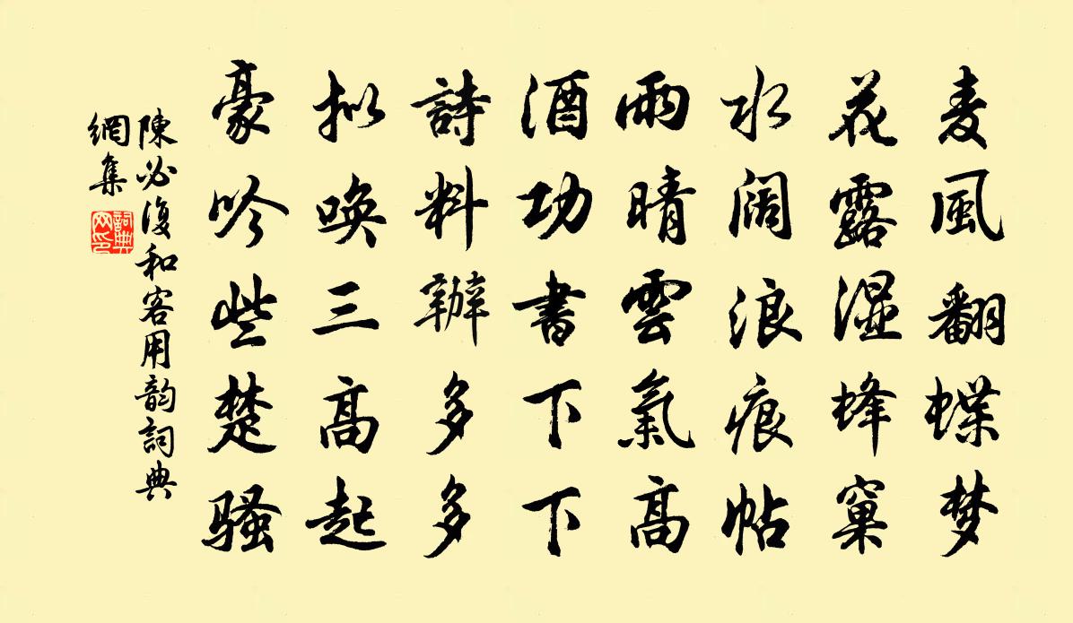 詩詞名句歷史字典書法欣賞書法字典國語詞典說文解字康熙字典古漢語字典標 題 作 者 詩 句 和客用韻作者:陳必復 朝代:宋代和客用韻原文麥風翻蝶夢,花露濕蜂窠。水闊浪痕帖,雨晴雲氣高。酒功書下下,詩料辦多多。擬喚三高起,豪吟些楚騷。詩詞問答問:和客用韻的作者是誰?答:陳必復問:和客用韻寫於哪個朝代?答:宋代陳必復和客用韻書法欣賞和客用韻書法作品詩詞推薦豫章東湖戴復古〔宋代〕亭亭綠荷葉,密密罩清波。為見湖光少,卻嫌荷葉多。春帖子詞皇帝閣十二首宋祁〔宋代〕東郊迎氣罷,暖信入嚴宸。暫遣星杓轉,令知天下春。漁家傲(贈蕭娘)李生〔宋代〕庭院黃昏人悄悄。兩情暗約誰知道。咫尺蓬山難一到。明月照。潛身只得聽言笑。特地嗟吁傳密耗。芳衷要使郎心題赤松宮(今蘭溪縣之赤松山。王初平亦稱赤松子)舒道紀〔唐代〕松老赤松原,松間廟宛然。人皆有兄弟,誰得共神仙。雙鶴沖天去,群羊化石眠。至今丹井水,香滿北山邊。自儆陸游〔宋代〕出仕每辭榮,歸休但力耕。儉勤貧亦足,戒懼禍終輕。學自不欺始,智由無事行。書紳及銘座,勉勉盡吾生。偈頌十六首釋如淨〔宋代〕靈靈而時時昧,不得月隨流水。歷歷而處處混,不得雨逐行雲。贈施道州二首劉克莊〔宋代〕胡塵突過劍門關,西顧於今尚未寬。早晚相如通僰道,蒼皇子美問長安。拮据自笑營巢拙,枘鑿明知合轍難。縱有徐倅尊人輓詩二首杜范〔宋代〕論子論交事契深,同年同里又同心。登堂未展龐公拜,夢奠俄驚尼父吟。自古陰功天所予,如公遐福世同歆。老成玉瀾堂乾隆〔清代〕又俯西窗蜃,湖天上下空。只觀鋪鏡影,遼待迭紈風。暖起浮霄蠓,寬棲度歲鴻。漫言冰尚冱,瀾意滿其中。文宣王及其弟子贊宋高宗〔宋代〕天清日明,密雨曷有。師命持蓋,子亦善扣。惟夫子博,三才允究。學者之樂,所得遂茂。締盟楊氏〔宋代〕珠簾半床月,青竹滿林風。何事今宵景,無人解與同。柬全小汀林則徐〔清代〕蓬山儔侶賦西征,累月邊庭並轡行。荒磧長驅回鶻馬,驚沙亂撲曼胡纓。但期繡隴成千頃,敢憚鋒車歷八城。丈室送李宣叔倅漳州王安石〔宋代〕閩山到漳窮,地與南越錯。山川郁霧毒,瘴癘春冬作。荒茅篁竹閒,蔽虧有城郭。居人特鮮少,市井宜蕭索。野花謝王繡使同二教舉充講賓王翊龍〔宋代〕繡衣玉斧下青冥,端為斯文主夏盟。師道更全雙璧白,講堂初奏六莖清。秦灰不燼詩書種,孔壁猶鏗絲竹聲。惟有懷成父趙蕃〔宋代〕竹里人家茅舍煙,竹籬崩缺澗鳴泉。幾聲啼鳥隔林喚,兩樹桃花相對然。古路經行斜更直,好山迎我後仍前。暫謀夫人閣四首蘇軾〔宋代〕扶桑初日映簾升,已覺銅瓶暖不冰。七種共挑人日菜,千枝先剪上元燈。丁亥歲朝把筆洪咨夔〔宋代〕雞喚璇杓一夜東,長天紺碧靜無風。年華老子歡娛裹,春事兒曹翰墨中。脫雪薺芽盤飣綠,晞陽椒蕾酒行紅。赭袍次令衿游玉壺高詠十絕對換席羲叟〔宋代〕絕景頻因警句夸,莫傳俚耳便紛拿。須知味道耽岩穴,志意難將富貴加。題環碧亭李石〔宋代〕十里漣漪陸瑁湖,一亭幽絕重先居。雲根數朵排青闥,泉沫雙流濺綠裾。竹鎖斷橋飛雁鶩,荷侵涼檻蔭龜魚。洛園酬皇甫庶子見寄白居易〔唐代〕掌綸不稱吾應笑,典郡無能我自知。別詔忽驚新命出,同寮偶與夙心期。春坊瀟灑優閒地,秋鬢蒼浪老大時。獨占名句推薦江南可採蓮,蓮葉何田田。佚名《江南》 秋已盡,日猶長,仲宣懷遠更淒涼。李清照《鷓鴣天·寒日蕭蕭上瑣窗》 縱浪大化中,不喜亦不懼。陶淵明《形影神三首》 冰合井泉月入閨,金缸青凝照悲啼。李白《夜坐吟》 角聲吹徹小梅花。夜長人憶家。趙長卿《阮郎歸·客中見梅》 寒山轉蒼翠,秋水日潺湲。王維《輞川閒居贈裴秀才迪》 十輪霜影轉庭梧,此夕羈人獨向隅。晏殊《中秋月》 陽生陰長,陽殺陰藏佚名《黃帝內經·素問·陰陽應象大論》 更深黃月落,夜久靨星稀。任希古《和長孫秘監七夕》 先生名利比塵灰,綠竹青鬆手自栽。王汝舟《詠歸堂隱鱗洞》