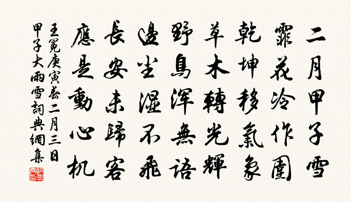 王冕庚寅春二月三日甲子大雨雪書法欣賞
