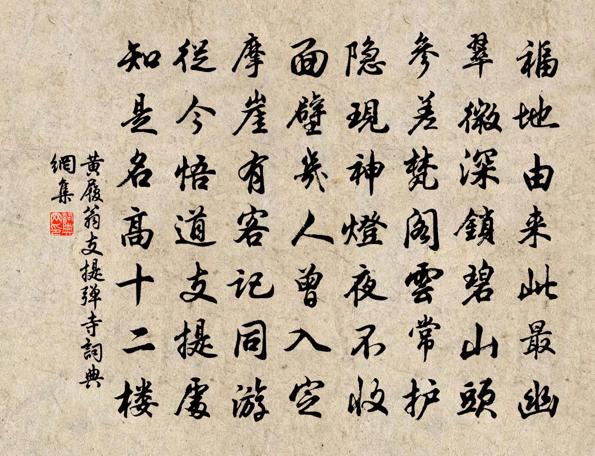 詩詞名句歷史字典書法欣賞書法字典國語詞典說文解字康熙字典古漢語字典標 題 作 者 詩 句 支提彈寺作者:黃履翁 朝代:宋代支提彈寺原文福地由來此最幽,翠微深鎖碧山頭。參差梵閣雲常護,隱現神燈夜不收。面壁幾人曾入定,摩崖有客記同游。從今悟道支提處,知是名高十二樓。詩詞問答問:支提彈寺的作者是誰?答:黃履翁問:支提彈寺寫於哪個朝代?答:宋代黃履翁支提彈寺書法欣賞支提彈寺書法作品詩詞推薦水調歌頭(春日舟行)楊冠卿〔宋代〕春漲一篙綠,江闊暮濤寒。龍驤萬斛飛舉,鯨飲酒杯寬。醉倚舵樓清嘯,目送孤鴻杳靄,景意與俱閒。恍若馭風去採蓮曲白居易〔唐代〕菱葉縈波荷颭風,荷花深處小舟通。逢郎欲語低頭笑,碧玉搔頭落水中。會稽秋晚奉呈於太守張繼〔唐代〕寂寂訟庭幽,森森戟戶秋。山光隱危堞,湖色上高樓。禹穴探書罷,天台作賦游。雲浮將越客,歲晚共淹留。醉落魄/一斛珠佚名〔宋代〕瓊搓粉滴。南枝只報江南坼。橫斜疏影溪邊窄。翦碎白雲,分付隴頭客。冰肌綽約疑姑射。鉛華消盡見真色。不隨句高橫槎〔宋代〕宦情薄於水,吟鬢早為霜。奉和聖制夏日游石淙山張易之〔唐代〕六龍驤首曉駸駸,七聖陪軒集潁陰。千丈松蘿交翠幕,一丘山水當鳴琴。青鳥白雲王母使,垂藤斷葛野人心。山中送通州通判刁國博梅堯臣〔宋代〕古郡見郎山,海雲遮一半。陽烏出滄波,光彩臨硯桉。小吏抱牘來,磨墨為點竄。豈以島嶼人,百事皆漫漫。朝廷丙寅舟次宋城作賀鑄〔宋代〕水館四邊村,登臨奈斷魂。黃作開小徑,紅粉哭高原。舟楫逢新火,松楸老故園。斜陽一千里,依約是蘇門。除夜寄張達羅隱〔唐代〕梅花已著眼,竹葉況粘唇。只此留殘歲,那堪憶故人。亂罹書不遠,衰病日相親。江浦思歸意,明朝又一春。和大尹李君錫龍圖留別詩邵雍〔宋代〕多情大尹辭春去,正是群芳爛漫時。自古英豪重恩意,群芳慎勿便離披。二月十七日欲招客飲而風霾不果有作張耒〔宋代〕欲攜佳客燕高堂,園館春風又作狂。猶挾冰霜余意氣,未分桃李好風光。青山無賴藏雲岫,流水生波灩野塘。不飲江州德化縣漪嵐堂盡得廬山之勝醉中作此呈趙戴復古〔宋代〕不羨君為花縣宰,羨君日坐漪嵐堂。有時酒興兼詩興,無限山光與水光。百姓熙熙知教化,群胥凜凜對風霜。公餘見諸公唱和暮春詩軸次韻作九首晁說之〔宋代〕那識春將暮,山頭躑躅紅。潮生芳草遠,鳥滅夕陽空。烏賊家家飯,槽船面面風。三吳窮海地,客恨極難窮。送呂周輔宗丞守崇慶樓鑰〔宋代〕從昔傳家學,當今良史才。聲名冠西蜀,風節象東台。朝跡何收速,歸心挽不回。一麾從此去,萬里可能來。病後衰甚非籃輿不能出門感嘆有賦陸游〔宋代〕酒興詩情尚自如,形骸可怪頓成疏。平生只倚雙鳧舄,此日常須一鹿車。寂寂豈惟慚鄧禹,厭厭更覺類曹蜍。晚窗南歌子(早春)程垓〔宋代〕梅塢飛香定,蘭窗翠色齊。水邊沙際又春歸。領略東風、能有幾人知。愛月眠須晚,尋花去未遲。誰家庭院更芳菲贈漢陽輔錄事其一李白〔唐代〕聞君罷官意,我抱漢川湄。借問久疏索,何如聽訟時。天清江月白,心靜海鷗知。應念投沙客,空餘吊屈悲。句釋惠崇〔宋代〕對酒淮潮起,題詩楚月新。官舍白居易〔唐代〕高樹換新葉,陰陰覆地隅。何言太守宅,有似幽人居。太守臥其下,閒慵兩有餘。起嘗一甌茗,行讀一卷書。早梅蜀中傷陳恕左丞張詠〔宋代〕英賢去世世同悲,管葛才能更比誰。心盡西山離隱後,名喧深殿受恩時。謀猷不枉稱人傑,精審真堪作吏師。漫就名句推薦事有所出,功有所止。劉向《戰國策·趙二·武靈王平晝閒居》 不見穿針婦,空懷故國樓。孟浩然《他鄉七夕》 紅橋路,正一派、畫船蕭鼓中流住。納蘭性德《摸魚兒·午日雨眺》 稚子金盆脫曉冰,彩絲穿取當銀鉦。楊萬里《稚子弄冰》 何事東君,解將芳思,巧綴一斛春冰。朱晞顏《一萼紅·盆梅》 知己知彼,將心比心。佚名《增廣賢文·上集》 西登香爐峰,南見瀑布水。李白《望廬山瀑布水二首》 孝子之事親也,居則致其敬,養則致其樂,病則致其憂,喪則致其 哀,祭則致其嚴。孔子及其弟子《孝經·紀孝行》 人間四月芳菲盡,山寺桃花始盛開。白居易《大林寺桃花》 素手把芙蓉,虛步躡太清。李白《古風·其十九》