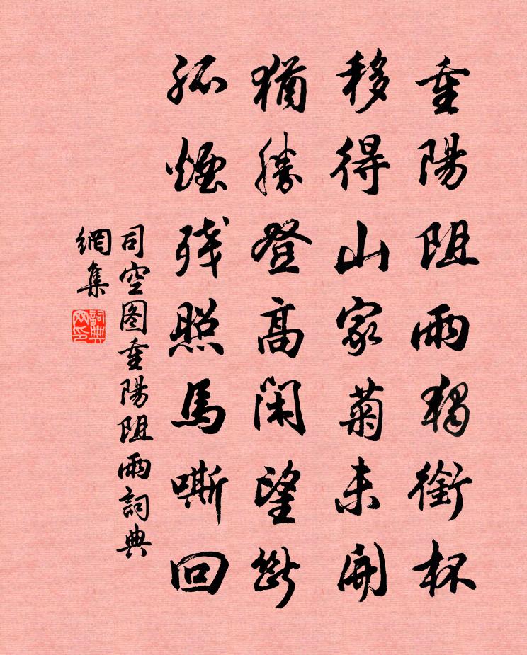 重陽阻雨獨銜杯,移得山家菊未開。猶勝登高閒望斷,孤煙殘照馬嘶回。