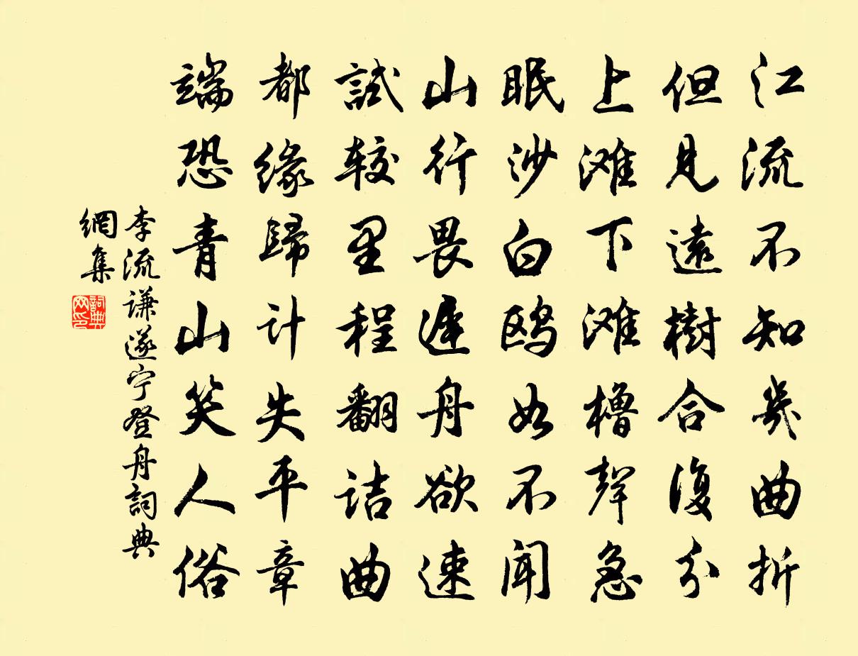 詩詞名句歷史字典書法欣賞書法字典國語詞典說文解字康熙字典古漢語字典標 題 作 者 詩 句 遂寧登舟作者:李流謙 朝代:宋代遂寧登舟原文江流不知幾曲折,但見遠樹合復分。上灘下灘櫓聲急,眠沙白鷗如不聞。山行畏遲舟欲速,試較里程翻詰曲。都緣歸計失平章,端恐青山笑人俗。詩詞問答問:遂寧登舟的作者是誰?答:李流謙問:遂寧登舟寫於哪個朝代?答:宋代李流謙遂寧登舟書法欣賞遂寧登舟書法作品詩詞推薦太清舞史浩〔宋代〕我今來訪煙霞侶。沸華堂簫鼓。疑是奏鈞天,宴瑤池金母。卻將桃種散階除,俾華實、須看三度。方記古人言,信居夷行陳與義〔宋代〕遭亂始知承平樂,居夷更覺中原好。巴陵十月江不平,萬里北風吹客倒。洞庭葉稀秋聲歇,黃帝樂罷川杲杲。君山自安仁至豫章途中雜興十九首趙蕃〔宋代〕野市穿殘路接溪,敗船糜索兩相依。居人慾渡頻回首,客子將行屢攬衣。再次竹溪韻劉克莊〔宋代〕聊為湯餅會親賓,豈敢誇張墮張麟。汝若上扳曾大父,翁堪下見我先人。善和書即傳家寶,儒行篇方聘度珍。莫遣疊翠亭王安石〔宋代〕煙籠遠浦迷芳草,日照澄湖浸碧峰。幸有清樽堪酩酊,忍陪良友不從容。頌證道歌證道歌釋印肅〔宋代〕取捨之心成巧偽,只應步步踏陰坑。大光普照盲無識,非時不共野狐爭。和謝吏部鐵字韻三十四首自敘三首鄧肅〔宋代〕萬物紛紛一馬耳,百川不同均一水。不將彼是作殊觀,坐使須彌納芥子。李白高視空無人,審言更作牙官嗔。可憐明堂樂章。雍和佚名〔唐代〕八牖晨披,五精朝奠。霧凝璇篚,風清金縣。神滌備全,明粢豐衍。載絜彝俎,陳誠以薦。埇橋舊業白居易〔唐代〕別業埇城北,拋來二十春。改移新徑路,變換舊村鄰。有稅田疇薄,無官弟侄貧。田園何用問,強半屬他人。滿江紅(立春招雲岩,再和以謝之)李曾伯〔宋代〕草草春盤,那敢賦、絲青玉白。湘波動、雁懷歸思,柳催行色。凍逐寒梢殘雪解,暖隨野燒輕煙入。舉人間、無物望海石胡融〔宋代〕枯藤拄苔磴,長嘯凌秋風。天空白露下,碧落摩青銅。夜半見海日,發軔扶桑紅。黃支與流求,出沒白浪中。久夸寄題宋職方翠樓余靖〔宋代〕層樓幽趣稱登臨,望遠憑高豁素襟。棋酒等閒忘世慮,溪山最樂是家林。松聲帶雨千峰外,潭影涵虛落照深。此景別劉孟容歲提乾二首王邁〔宋代〕吾莆諸壽雋,習靜魯靈光。有子麒麟種,群孫鴛鷺行。此行青眼眾,見謂白眉良。通籍何愁晚,庭椿樂未央。爇心香 本名行香子 夫婦分離馬鈺〔元代〕你是何人。我是何人。與伊家、元本無親。都緣媒妁,遂結婚姻。便落痴崖,貪財產,只愁貧。你也迷塵。我也迷詠史二首劉禹錫〔唐代〕驃騎非無勢,少卿終不去。世道劇頹波,我心如砥柱。賈生明王道,衛綰工車戲。同遇漢文時,何人居貴位。八月四日夜夢中作陸游〔宋代〕太華巉巉敷水長,白驢依舊系斜陽。山深乳洞藥爐冷,花發雲房醅瓮香。鄰叟一樽迎谷口,蠻童三髻拜溪傍。中原醉花陰楊無咎〔宋代〕滿城風雨無端惡。孤負登高約。佳節若為酬,盛與歌呼,勝卻秋蕭索。菊花旋摘揉青萼。滿滿浮杯杓。老鬢未侵霜南園雜詩六首苦雨司馬光〔宋代〕今春憂亢陽,引領望雲族。首夏忽滂沱,意為蒼生福。自爾無虛日,高原亦沾足。連年困饑饉,此際庶和熟。如何千周風歌程公許〔宋代〕華清舞徹霓裳散,五音繁會宵達旦。人間何限失意人,西商淒切離騷亂。我所思兮在東周,小雅盡廢心之憂。更堪舟中即事三首鄧深〔宋代〕騰身赤鯉江心躍,浮鼻烏牛渡口過。雨後風清雲淨盡,一眉新月映寒皮。名句推薦從善如順流,去惡如探湯。房玄齡《晉書·列傳·第五十七章》 夜來攜手夢同游,晨起盈巾淚莫收。白居易《夢微之》 起來無語理朝妝,寶匣鏡凝光顧敻《虞美人·觸簾風送景陽鍾》 日暮秋煙起,蕭蕭楓樹林。戴叔倫《過三閭廟》 相思不作勤書禮,別後吾言在訂頑。王守仁《諸門人送至龍里道中二首》 相望試登高,心隨雁飛滅。孟浩然《秋登蘭山寄張五》 見人善,即思齊。縱去遠,以漸躋。李毓秀《弟子規·信》 薄倖郎君何日到,想自當初,莫要相逢好。施耐庵《蝶戀花·一別家山音信杳》 西風惡。數聲新雁,數聲殘角。黃機《憶秦娥·秋蕭索》 將者,上不制於天,下不制於地,中不制於人。尉繚《尉繚子·兵談》