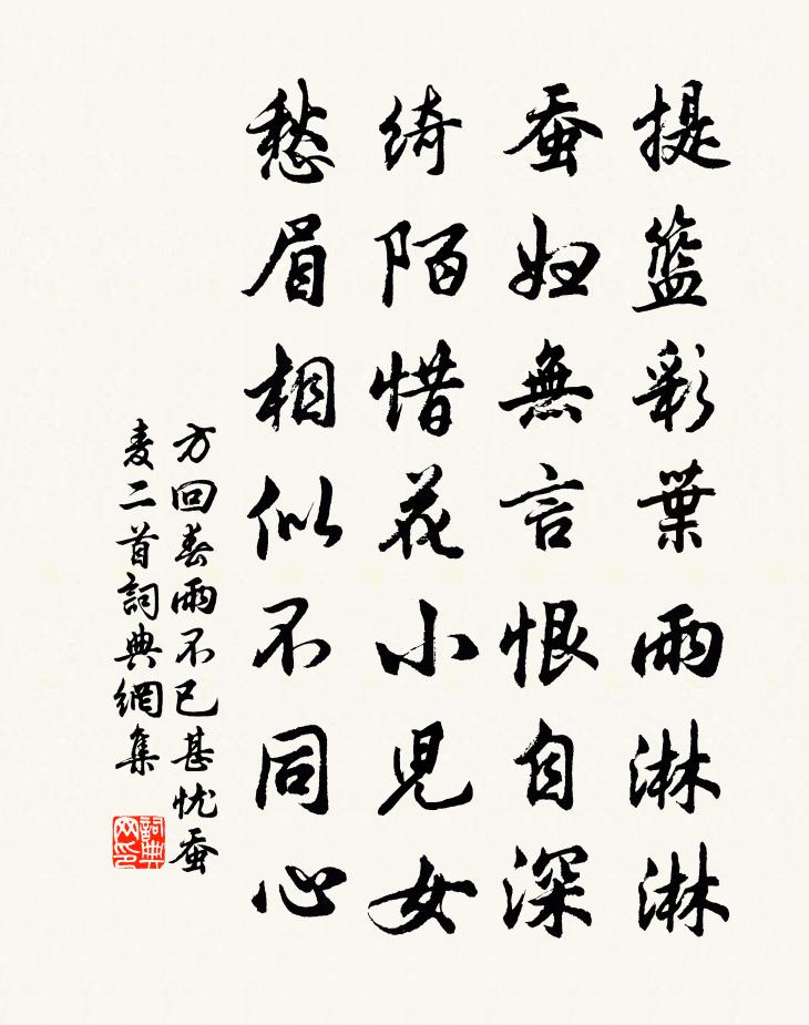詩詞名句歷史字典書法欣賞書法字典國語詞典說文解字康熙字典古漢語字典標 題 作 者 詩 句 春雨不已甚憂蠶麥二首作者:方回 朝代:宋代春雨不已甚憂蠶麥二首原文提籃彩葉雨淋淋,蠶婦無言恨自深。綺陌惜花小兒女,愁眉相似不同心。詩詞問答問:春雨不已甚憂蠶麥二首的作者是誰?答:方回問:春雨不已甚憂蠶麥二首寫於哪個朝代?答:宋代方回春雨不已甚憂蠶麥二首書法欣賞春雨不已甚憂蠶麥二首書法作品詩詞推薦西江月 勸劉先生夫婦馬鈺〔元代〕欲繼許君龐老,捫心自忖須知。同心同德做修持。稍有相霞遠離。三個不如兩個,兩人談是談非。孤雲野鶴任東西送識上人游金山寺范仲淹〔宋代〕空半簇樓台,紅塵安在哉。山分江色破,潮帶海聲來。煙景諸鄰斷,天光四望開。疑師得仙去,白日上蓬萊。留守與賓客會開元龍興寺觀燈余有故不預中夜蘇轍〔宋代〕燈引雙旌萬點紅,傾城車馬在城東。使君行樂人人共,倦客安眠夜夜同。夢想笑談傾滿坐,臥聞歌筦逐春風。三更江西鐃歌二首楊維楨〔元代〕繄龍興,藩西江,二皈章,國駿龐。江有砥柱,胡為鴻流洚。勍蠻效尤,蟊賊內訌,三台映太微,國士俱無雙。王蘭陵王 春恨張元乾〔宋代〕卷珠箔,朝雨輕陰乍閣。闌乾外、煙柳弄晴,芳草侵階映紅藥。東風妒花惡,吹落梢頭嫩萼。屏山掩、沉水倦熏,亭午熱甚過石子澗項安世〔宋代〕一掬見童數樹涼,兩三桅子野花香。荒山赤日相逢處,便是天台見石樑。酹江月·和友驛中言別文天祥〔宋代〕乾坤能大,算蛟龍元不是池中物。風雨牢愁無著處,那更寒蛩四壁。橫槊題詩,登樓作賦,萬事空中雪。江流如此九月望日同君謨侍郎泛西湖夜飲張先〔宋代〕清歌曲麯酒巡巡,一舉金蕉五十分。山影與天都在水,風光為月不留雲。節迴路口千門待,樂過湖心四岸聞。莫笑偈頌八首釋宗印〔宋代〕鐵崑崙兒吃一攧,南海波舞不徹。夜半失卻攔腰帛,笑倒東村王大伯。句王子俊〔宋代〕數椽月屋愛岩阿。石版歌李鹹用〔唐代〕雲根劈裂雷斧痕,龍泉切璞青皮皴。直方挺質貞且真,當庭卓立凝頑神。春雨流膏成立文,主人性靜看長新。明月冬日諸禪自商山禮正師真塔回見訪無可〔唐代〕久思今忽來,雙屨污青苔。拂雪從山起,過房禮塔回。偈留閒夜作,禪請暫時開。欲作孤雲去,賦詩餘不才。感月悲逝者白居易〔唐代〕存亡感月一潸然,月色今宵似往年。何處曾經同望月?櫻桃樹下後堂前。恭進度宗皇帝輓詞馬廷鸞〔宋代〕道遠年何駛,民肥身獨癯。寶龜傳聖子,玉幾導宸謨。百世尊王度,千秋拱帝圖。孤臣斬舜輔,悉絕望蒼梧。望茅山六言三首周文璞〔宋代〕昔年唱采芝歌,已老頭顱柰何。不見飈輪碾處,白雲出沒常多。西江月(癸巳自壽)程珌〔宋代〕底事中秋無月,元來留待今宵。群仙拍手度仙橋。驚起眠龍夭矯。天上靈槎一度,人間八月江潮。西興渡口幾魂消歸闕感懷陳堯佐〔宋代〕望闕二年余,中宵夢玉除。忽聞天上詔。乍厭海邊居。歸路尋芳草,空囊載舊書。君恩何以報,零淚落塵裾。元夕二首項安世〔宋代〕臘雪初消御路乾,暖風吹面不成寒。月華滿地春如酒,不是燒燈也合看。偈頌一百二十三首釋祖欽〔宋代〕群陰剝盡,一陽復來。萬頃清湘,寒冰發焰。千年古柏,枯榦花開。何滿子/河滿子仇遠〔宋代〕舞褥行雲襯步,歌紈片月生懷。歌殘舞罷花困軟,凝情猶小徘徊。髻滑頻扶墮珥,裙低略露弓鞋。當日凝香清燕,名句推薦笑別廬山遠,何煩過虎溪。李白《別東林寺僧》 黃鸝驚夢破,青鳥喚春還。張弘范《臨江仙·憶舊》 若農服田力穡,乃亦有秋。佚名《尚書·商書·盤庚上》 東園載酒西園醉,摘盡枇杷一樹金。戴復古《初夏遊張園》 早歲那知世事艱,中原北望氣如山。陸游《書憤五首·其一》 情共天涯秋黯,朱橋鎖深巷。吳文英《解蹀躞·醉雲又兼醒雨》 停杯投箸不能食,拔劍四顧心茫然。李白《行路難·其一》 肯救人坑坎中,便是活菩薩王永彬《圍爐夜話·第二八則》 如貧得寶,如暗得燈,如飢得食,如旱得雲。馮夢龍《警世通言·卷九》 淚彈不盡臨窗滴。就硯旋研墨。晏幾道《思遠人·紅葉黃花秋意晚》