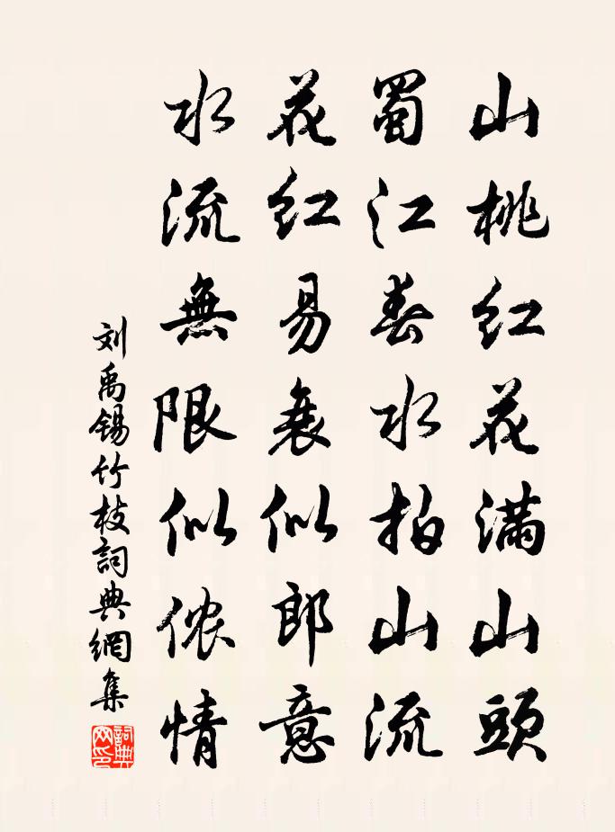 山桃紅花滿山頭,蜀江春水拍山流。花紅易衰似郎意,水流無限似儂情。