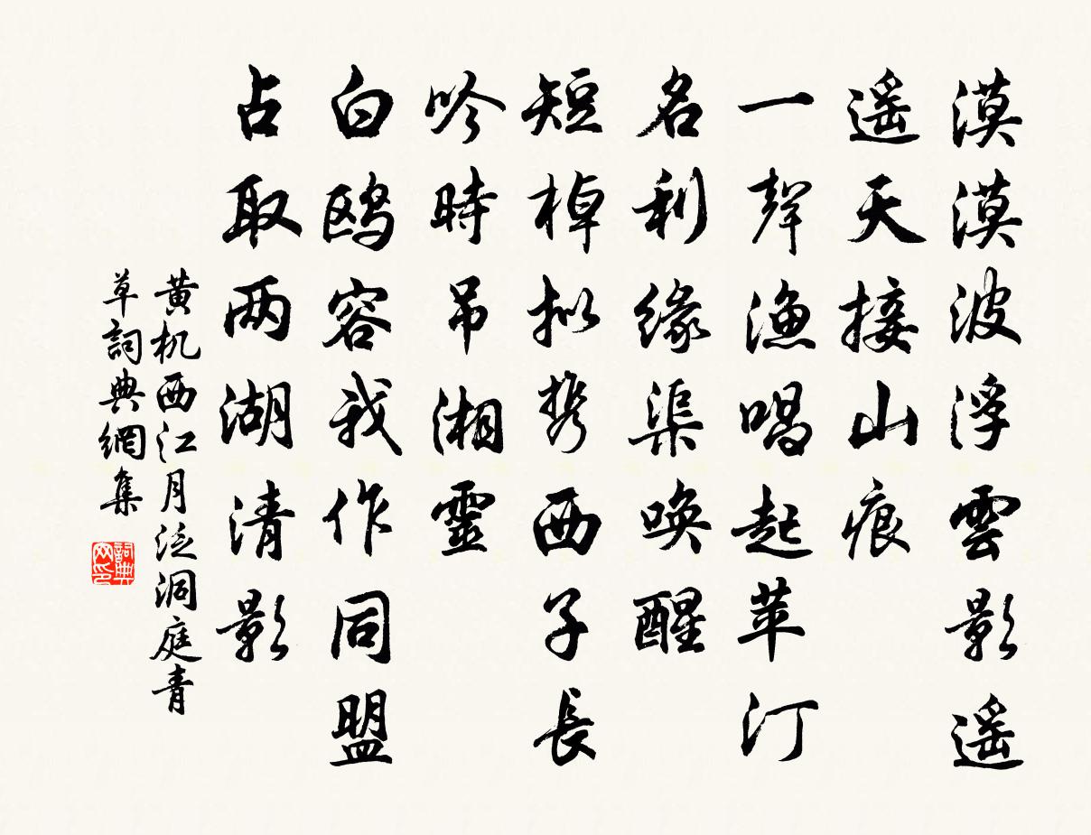 詩詞名句歷史字典書法欣賞書法字典國語詞典說文解字康熙字典古漢語字典標 題 作 者 詩 句 西江月(泛洞庭青草)作者:黃機 朝代:宋代西江月(泛洞庭青草)原文漠漠波浮雲影,遙遙天接山痕。一聲漁唱起苹汀。名利緣渠喚醒。短棹擬攜西子,長吟時吊湘靈。白鷗容我作同盟。占取兩湖清影。詩詞問答問:西江月(泛洞庭青草)的作者是誰?答:黃機問:西江月(泛洞庭青草)寫於哪個朝代?答:宋代問:西江月(泛洞庭青草)是什麼體裁?答:詞黃機西江月(泛洞庭青草)書法欣賞西江月(泛洞庭青草)書法作品詩詞推薦次韻王鞏上元見寄三首蘇轍〔宋代〕棄擲良宵君謂何,清天流月鑒初磨。莫辭病眼羞紅燭,且試春衫剪薄羅。蓮艷參差明繡戶,舞腰輕瘦颭驚鼉。少年送劉尚書再守贛之一年移帥豫章曾豐〔宋代〕贛農雖懶連歲豐,贛囚雖黠連歲空。農囚今昨性豈異,今守蓋與昨不同。鬼窺莫見活城手,酒澆不下憂民胸。十年驀山溪(怨別)趙孟堅〔宋代〕桃花雨動,測測輕寒小。曲檻面危闌,對東風、傷春懷抱。酒邊心事,花下舊閒情,流年度,芳塵杳,懊惱人空老歲仗羅鄴〔唐代〕玉帛朝元萬國來,雞人曉唱五門開。春排北極迎仙馭,日捧南山入壽杯。歌舜薰風鏗劍佩,祝堯嘉氣靄樓台。可憐感皇恩李彌遜〔宋代〕花院小迴廊,庭萱成行。水面紅妝翠綃帳。蓬萊雲近,風露一番清曠。星郎來碧落,長庚象。素志未酬,丹心益壯雨聲陸游〔宋代〕雨聲點滴朝復暮,中有詩人絕塵句。雲門鹹池渺千古,斷譜遺音此其緒。雨聲點滴夜不休,中有羈臣去國愁;九疑相和歌辭。日出行李賀〔唐代〕白日下崑崙,發光如舒絲。徒照葵藿心,不照遊子悲。折折黃河曲,日從中央轉。□谷耳曾聞,若木眼不見。奈爾西江月佚名〔宋代〕八月秋中玉律,十分月滿瑤台。芳姿謫下佛宮來。疑是東方世界。黛綠旋聞香發,桃紅新暈芳腮。春風滿面笑容開大衍易吟四十首方回〔宋代〕履若蹈虎尾,五剛亨厥躬。乾三獨柔變,是以咥人凶。眉嫵 新月王沂孫〔宋代〕漸新痕懸柳,澹彩穿花,依約破初暝。便有團圓意,深深拜,相逢誰在香徑。畫眉未穩,料素娥、猶帶離恨。最堪李處郁語佚名〔唐代〕飧若入咽,百無一全。點絳唇(再次王景源使君韻,賦第三首)向子諲〔宋代〕明月山頭,古香吹墮青林底。世情無味。伴我千岩里。詩老風流,也向花留意。歌新擬。調高難比。半坐分君醉。清平樂晏幾道〔宋代〕春雲綠處,又風歸鴻去。側帽風前花滿路,冶葉倡條情緒。紅樓桂酒新開,曾攜翠袖同來。醉弄影娥池水,短簫吹水龍吟(紹興甲子上元有懷京師)向子諲〔宋代〕華燈明月光中,綺羅弦管春風路。龍如駿馬,車如流水,軟紅成霧。太一池邊,葆真宮裡,玉樓珠樹。見飛瓊伴侶王殿丞赴莫州日就余求釣竿數莖以往今因其使梅堯臣〔宋代〕去日覓釣竿,定能垂釣否。若不暇釣魚,釣竿當去取。次韻竹子彬五言二首劉克莊〔宋代〕短章足光怪,夭矯暮天虹。俗子仙丹判,詩人伎倆同。君奚慚有道,吾欲訪無功。肉眼非弘景,何由見碧瞳。次韻酬陳伯冶監倉張鎡〔宋代〕小築才成賜也牆,傳家那是釣徒張。非求世上人看好,但要閒中句律昌。成陣游鯈波上暖,打團飛蝶菊初荒。隣翁弟茝飲至醉醉歸蹶道中荊棘中陳著〔宋代〕聖俞小飲亦百杯,高叉兩手無欹頹。曼卿登樓終日飲,端坐人謂神仙來。二賢佳語三百載,磊磊亦有梅山在。有人茸山道中感懷范成大〔宋代〕侍臣筆裹舊西班,大將麾幢又百蠻。掛席南箕宿昔事,閃旗東井何時還,日增衰病復一日,山隔舊遊知幾山?倦拂又答袁卿相子一首劉克莊〔宋代〕百篇端可補詩亡,形穢何堪在玉傍。方薴蘿山尤覺艷,入旃檀國不知香。一枝我欲簪蓬葆,七字君宜和柏梁。臥雪名句推薦大鵬飛兮振八裔,中天摧兮力不濟。李白《臨路歌》 夫魚食其餌,乃牽於緡;人食其祿,乃服於君。姜子牙《六韜·文韜·文師》 黃雲連白草,萬里有無間。王鎡《塞上曲》 勞苦之事則爭先,饒樂之事則能讓。荀子《荀子·修身》 可憐白骨攢孤冢,盡為將軍覓戰功。張蠙《吊萬人冢》 二月黃鶯飛上林,春城紫禁曉陰陰。錢起《贈闕下裴舍人》 千里之行,始於足下。老子《老子·德經·第六十四章》 秋風夜渡河,吹卻雁門桑。王昌齡《塞下曲·秋風夜渡河》 午枕夢初殘,高樓上,獨憑闌乾。朱栴《青杏兒·秋》 世情薄,人情惡,雨送黃昏花易落。唐婉《釵頭鳳·世情薄》