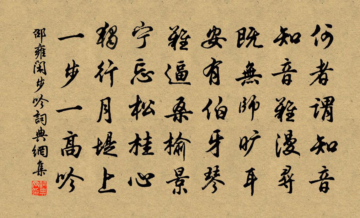 詩詞名句歷史字典書法欣賞書法字典國語詞典說文解字康熙字典古漢語字典標 題 作 者 詩 句 閒步吟作者:邵雍 朝代:宋代閒步吟原文何者謂知音,知音難漫尋。既無師曠耳,安有伯牙琴。難逼桑榆景,寧忘松桂心。獨行月堤上,一步一高吟。詩詞問答問:閒步吟的作者是誰?答:邵雍問:閒步吟寫於哪個朝代?答:宋代邵雍閒步吟書法欣賞閒步吟書法作品詩詞推薦紹興祀先農攝事七首佚名〔宋代〕靈游載臨,見先陳贄。有嚴篚實,式將純意。肸鄉既接,禮行有次。神兮安留,歆我社禮。太廟樂章皇帝閣六首周麟之〔宋代〕聖主清心仍寡慾,惟於筆硯未忘懷。彤廷仗下春朝散,獨擁圖書坐損齋。戲題無常鍾二絕范成大〔宋代〕合成四大散成空,草木經春便有冬。生滅去來相對代,為君題作有常鍾。游延安宿馬太博東館司馬光〔宋代〕高館寂無嘩,它閒勝在家。暮煙凝塞土,堠火落天涯。坐久筆生凍,夜闌燈作花。主人意未盡,歸路不為賒。織圖二十四首經樓璹〔宋代〕素絲頭緒多,羨君好安排。青鞋不動塵,緩步交去來。眽眽意欲亂,眷眷首重回。王言正如絲,亦付經綸才。六街塵薛逢〔唐代〕六街塵起鼓冬冬,馬足車輪在處通。百役並驅衣食內,四民長走路岐中。年光與物隨流水,世事如花落曉風。名利偈頌一百零四首釋紹曇〔宋代〕一二千碩谷,四五百籮粟。{左禾右罷}稏熟天風,高低布雲麓。辛勤收拾歸來,碓搗明璣,缽盛香玉。無位真人寄劉蘇州白居易〔唐代〕去年八月哭微之,今年八月哭敦詩。何堪老淚交流日,多是秋風搖落時。泣罷幾回深自念,情來一倍苦相思。同年雜詠黃庚〔宋代〕人非陶令空看菊,詩不林逋漫詠梅。晉宋後來愛花者,輸他高節與高才。奉贈宣義大師英公李若拙〔宋代〕昔歲高名動九重,衡山別後碧雲空。紫袍親受龍墀上,白足頻登虎殿中。小篆每輕秦相法,隸書猶鄙晉臣功。多才避暑趙友直〔宋代〕寰區皆是火,何地避炎官。散發鬆陰下,掛巾石壁間。詩題疏竹潤,酒入碧筒寒。不必頻揮羽,清風無汗顏。送廣西鄭經乾半簡經略曾由基〔宋代〕五嶺宜人地,君今捧檄行。但拚窮徹骨,不到黯無聲。婉畫從違里,編氓休戚情。祖筵誰孰爵,三祝石先生。予寓家龜溪賦廩郡故事郡將始至及其將行皆一王洋〔宋代〕房湢齋庖間翠鋪,環山環水綠雲扶。不知幾許中人產,支慧居前後阿樞。以筍送諸公二首趙蕃〔宋代〕昔聞市上三時賣,今已春深見未嘗。莫道寒歷只寒相,及時也復事分張。湖西雜感詩釋智圓〔宋代〕猛虎磨牙踞蔭林,幽幽一路晚煙深。行行君子休疑懼,此物由來食獸心。頌古二十五首釋崇岳〔宋代〕京師出大黃,見賊便見贓。竹杖化龍去,痴人戽夜塘。寓興賈島〔唐代〕真集道方至,貌殊妒還多。山泉入城池,自然生渾波。今時出古言,在眾翻為訛。有琴含正韻,知音者如何。一生再謝周顒之句二首鄧忠臣〔宋代〕眼看秋雁歌汾水,心到陽關唱謂城。卻被維摩居士笑,海潮音作斷腸聲。沁園春(壽楚陽趙宰·四月初二)佚名〔宋代〕瑞就柯山,昴宿儲祥,嵩岳降神。羨堂堂玉瑩,汪汪陂量,一襟風月,滿腹經綸。試部丹砂,聊乘鳧舄,來種錦江升香林洞黃初庵〔宋代〕日射岩扉曉霧開,杖藜拄石破蒼苔。一雙蛺蝶隨人去,知是香林洞裡來。名句推薦殊方日落玄猿哭,舊國霜前白雁來。杜甫《九日五首·其一》 聞道皇華使,方隨皂蓋臣。王維《送李判官赴東江》 星垂平野闊,月涌大江流。杜甫《旅夜書懷》 勸君頻入醉鄉來,此是無愁無恨處。晏幾道《玉樓春·雕鞍好為鶯花住》 君看六幅南朝事,老木寒雲滿故城。韋莊《金陵圖》 卻愁擁髻向燈前,說不盡、離人話納蘭性德《一絡索·過盡遙山如畫》 相逢處,自有暗塵隨馬。周邦彥《解語花·上元》 多少淚珠何限恨,倚欄乾李璟《攤破浣溪沙·菡萏香銷翠葉殘》 楊柳乍如絲,故園春盡時。納蘭性德《菩薩蠻·問君何事輕離別》 東風動百物,草木盡欲言。李白《長歌行》