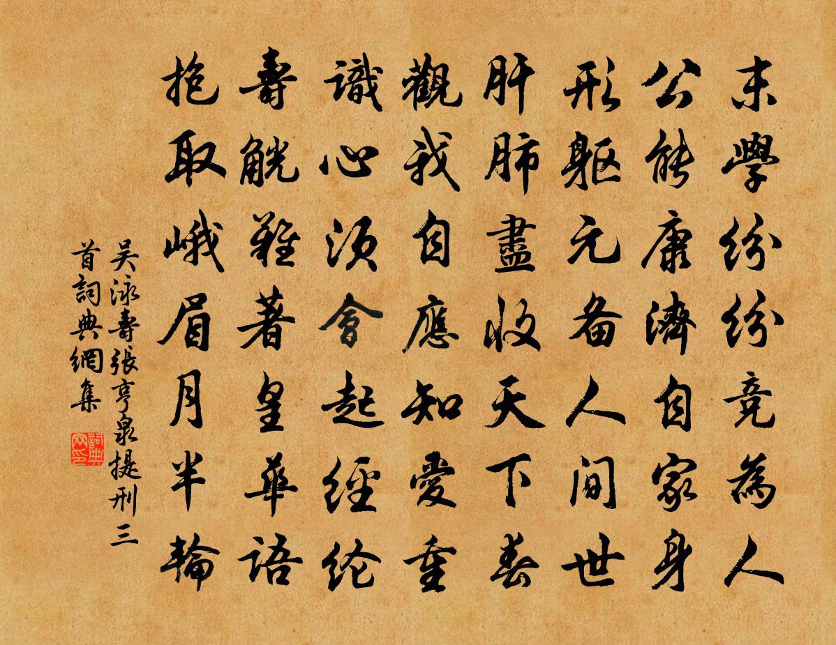 詩詞名句歷史字典書法欣賞書法字典國語詞典說文解字康熙字典古漢語字典標 題 作 者 詩 句 壽張亨泉提刑三首作者:吳泳 朝代:宋代壽張亨泉提刑三首原文末學紛紛競為人,公能康濟自家身。形軀元備人間世,肝肺盡收天下春。觀我自應知愛重,識心須會起經綸。壽觥難著皇華語,抱取峨眉月半輪。詩詞問答問:壽張亨泉提刑三首的作者是誰?答:吳泳問:壽張亨泉提刑三首寫於哪個朝代?答:宋代吳泳壽張亨泉提刑三首書法欣賞壽張亨泉提刑三首書法作品詩詞推薦題開元寺牡丹徐凝〔唐代〕此花南地知難種,慚愧僧閒用意栽。海燕解憐頻睥睨,胡蜂未識更徘徊。虛生芍藥徒勞妒,羞殺玫瑰不敢開。惟有紙衾三首沈說〔宋代〕繭面新乾帶露揉,春回斗帳伴吟愁。殘年已辦蒙頭過,風雪從教打戍樓。賀新郎楊炎正〔宋代〕十日狂風雨。掃園林、紅香萬點,送春歸去。獨有荼開未到,留得一分春住。早楊柳、趁晴飛絮。可奈暖埃欺晝永採桑子侯善淵〔元代〕吾輩可傷嗟。棄玄珠,流浪天涯。浮雲飛絮無根蒂,便心歧徑,隨他念起,舉步偏斜。聞早悟煙霞。仙景里、也好十月三十日晴暖而梅意殊冷也舒岳祥〔宋代〕良月今日盡,始見小春天。明日為子正,陽復於此焉。牆陰委宿莽,已覺青娟娟。壞壁出凍蠅,亦解飛翾翾。向來題可翁塔丘葵〔宋代〕至人埋骨地,草木總皆玄。未臘梅先覺,無風竹亦禪。燈緣千載焰,名共四松傳。舊日經行處,瓶盂常儼然。西溪李商隱〔唐代〕近郭西溪好,誰堪共酒壺。苦吟防柳惲,多淚怯楊朱。野鶴隨君子,寒松揖大夫。天涯常病意,岑寂勝歡娛。定之方中佚名〔先秦〕定之方中,作於楚宮。揆之以日,作於楚室。樹之榛栗,椅桐梓漆,爰伐琴瑟。升彼虛矣,以望楚矣。望楚與堂,重陽宴集同用寒字張登〔唐代〕錫宴逢佳節,窮荒亦共歡。恩深百日澤,雨借九秋寒。望氣人謠洽,臨風客以難。座移山色在,杯盡菊香殘。欲識韓莊閘舟中七夕姚燮〔清代〕木蘭槳子藕花鄉,唱罷廳紅晚氣涼。煙外柳絲湖外水,山眉澹碧月眉黃。娥江市陸游〔宋代〕小聚依江近,支流入浦分。荒寒孤店雨,零亂野祠雲。薄餉炊畲粟,珍烹采澗芹。年來去健羨,摩腹自欣欣。句吳璋〔宋代〕惜別有情空執手,贈行我緒不成章。送巨中教授解官毛滂〔宋代〕天公憐我欲元鄰,得近芝蘭久益芬。定免幼安還割席,擬從東野若為雲。歸鞭那有藍關雪,別夢應通魯水芹。強飯瑞鶴仙熊禾〔宋代〕翠旗迎鳳輦。正金母、西遊瑤台寶殿。蓬來都歷偏。□飄然來到,笙歌庭院。朱顏綠鬢。須盡道、人間罕見。更恰夏夜露坐白玉蟾〔宋代〕披襟岸幘藕花橋,一片哀鴻度碧霄。新月出來真解事,嫩蟬吟得自無聊。梓州與溫商夜別(一作夜別溫商梓州)陳羽〔唐代〕鳳凰城裡花時別,玄武江邊月下逢。客舍莫辭先買酒,相門曾忝共登龍。近風騷屑千家竹,隔水悠揚五夜鍾。明日雲岩馬子嚴〔宋代〕林深路轉山,岩虛雲觸石。是中立數椽,僅足安一室。斷罅開碧落,當晝懸心白。虬櫱掛乳竇,飛鼠傳石脊。山中仲冬詔追造朝供尚書郎職舟行阻風青泥三首楊萬里〔宋代〕江神風伯戰方酣,北浪吹翻總向南。未放人扶下江柁,卻教眼看上江帆。贈周敬伯楊萬里〔宋代〕萬方英傑集橋門,作麽吾州不數人。之子獨攜一方策,短檠以外四無鄰。歲雲暮矣猶為客,皈去來兮未立身。待上淳熙十二年加上太上皇帝太上皇后尊號十一首佚名〔宋代〕天相慈皇,慶臻台闈。徽柔內修,壽興天齊。既承皇歡,載皇母行。懿典鴻名,永緌多祺。名句推薦不信妾斷腸,歸來看取明鏡前。李白《長相思·其二》 遊說萬乘苦不早,著鞭跨馬涉遠道。李白《南陵別兒童入京》 秋空明月懸,光彩露沾濕。孟浩然《秋宵月下有懷》 未收天子河湟地,不擬回頭望故鄉。令狐楚《少年行四首·其三》 宣父猶能畏後生,丈夫未可輕年少。李白《上李邕》 謀無主則困,事無備則廢。管仲《管子·霸言》 主人有酒歡今夕,請奏鳴琴廣陵客。李頎《琴歌》 兵出無名,事故不成班固《漢書·紀·高帝紀上》 肌膚若冰雪,淖約若處子;不食五穀,吸風飲露;乘雲氣,御飛龍,而游乎四海之外莊子《莊子·內篇·逍遙遊》 雁聚河流濁,羊群磧草膻。齊己《送人游塞》