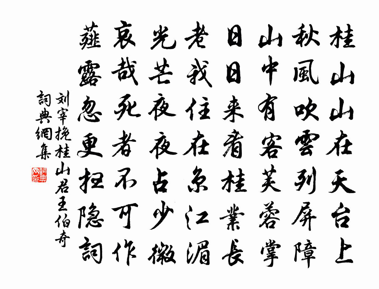 詩詞名句歷史字典書法欣賞書法字典國語詞典說文解字康熙字典古漢語字典標 題 作 者 詩 句 挽桂山君王伯奇作者:劉宰 朝代:宋代挽桂山君王伯奇原文桂山山在天台上,秋風吹雲列屏障。山中有客芙蓉掌,日日來看桂業長。老我住在京江湄,光芒夜夜占少微。哀哉死者不可作,薤露忽更掃隱詞。詩詞問答問:挽桂山君王伯奇的作者是誰?答:劉宰問:挽桂山君王伯奇寫於哪個朝代?答:宋代劉宰挽桂山君王伯奇書法欣賞挽桂山君王伯奇書法作品詩詞推薦馮深居輓詞釋文珦〔宋代〕天地一深翁,匡廬氣所鍾。親傳厚齋業,優得考亭宗。勁筇霜崖竹,高標雪嶠松。滄溟含雅量,乾莫避辭鋒。元老碧霄李昴英〔宋代〕未到白雲先碧霄,瘦藤支我上山腰。煙橫遠樹醉眸豁,竹引清泉塵慮澆。酒滴松根和露飲,茶烹石鼎抱茅燒。平生吳農謠楊維楨〔元代〕吳農竭力耕王田,王賦已供常餓眠。鄧通董賢何為者,一生長用水衡錢。偈頌一百二十三首釋普度〔宋代〕拘屍那城有生滅,我此世界生滅無。桃紅李白花時節,是處江山開畫圖。三月十七日以檄出行賑貸旬日而復反自州門至趙蕃〔宋代〕大麥初齊積漸黃,青青小麥更連岡。去冬屢雪有如此,今歲一豐端可望。負籠不須嗟甚苦,腰鎌行且看爭忙。太倉朝中措(陳左藏生日)劉克莊〔宋代〕海天萬頃碧玻璃。風露洗炎曦。鸚鵡綠毛導從,蟾□雪色追隨。分明來處,補陀大士,先後同時。覓取善財童子,鳳凰台王渭卿〔宋代〕江山還似六朝時,老盡梧桐鳳不知。保大空存前殿佛,元嘉已沒舊廊碑。幾年何德之衰也,曷日覽輝而下之。不見釋奠詩應令江總〔隋代〕肅仰鴻化。恭聞盛典。人握懸藜。家藏瑚璉。顧惟朽謝。暮識膚淺。恩謬爵浮。心慚貌{忄典}。道州觀野火呂溫〔唐代〕南風吹烈火,焰焰燒楚澤。陽景當晝遲,陰天半夜赤。過處若彗掃,來時如電激。豈復辨蕭蘭,焉能分玉石。蟲蛇無俗念 暮秋丘處機〔元代〕霜風盪*,舞飄零、木葉斜飛阡陌。極目長郊凝望處。衰菊斕*猶坼。點點蒼苔,漫漫朝露,漸結清霜白。山川高偈頌一百零四首釋紹曇〔宋代〕圖畫天開,春風剪裁。爛銀庭院,白玉樓台。將謂乳峰貧徹骨,敵君王富自何來。晨讀道書陸游〔宋代〕家貧悔嗜酒,年邁思學道;雖雲善補過,見事恨不早。儒生守章句,忽忽遂將老,岩間得奇書,足以慰華皓。丹液失調名佚名〔宋代〕這愁緒、仗他誰。賦得沙上雁耿湋〔唐代〕衡陽多道里,弱羽復哀音。還塞知何日,驚弦亂此心。夜陰前侶遠,秋冷後湖深。獨立汀洲意,寧知霜霰侵。浣溪沙·爭挽桐花兩鬢垂周邦彥〔宋代〕爭挽桐花兩鬢垂,小妝弄影照清池。出簾踏襪趁蜂兒。跳脫添金雙腕重,琵琶撥盡四弦悲。夜寒誰肯剪春衣。浣溪沙陳允平〔宋代〕睡起朦騰小篆香。素紈輕度玉肌涼。竹深荷淨少炎光。雨過亂蟬嘶古柳,日斜雙鷺立閒塘。更將心事自商量。九江郡齋分韻送魏六兄好文游鄂渚得陽字曹彥約〔宋代〕倦客尋閒誤入忙,飄然上水擊潯陽,鈴齋有伴期三友,玉千何人似六郎。千晨江山時聚散,滿城風月夜淒涼。西風羸駿白居易〔唐代〕驊騮失其主,羸餓無人牧。向風嘶一聲,莽蒼黃河曲。踏冰水畔立,臥雪冢間宿。歲暮田野空,寒草不滿腹。豈無山中貽崔六琪華儲光羲〔唐代〕恍惚登高嶺,裴回看落日。遙想仲長園,如親幼安室。春渚菖蒲登,山中撥穀鳴。相思不道遠,太息未知情。意君達磨贊釋明辯〔宋代〕升元閣前懡?,洛陽峰畔乖張。皮髓傳成話霸,雙履無處埋藏。不是一番寒徹骨,爭得梅花撲鼻香。名句推薦龍噓氣成雲,雲固弗靈於龍也。韓愈《雜說一·龍說》 求財恨不多,財多害自己。佚名《增廣賢文·上集》 白日登山望烽火,黃昏飲馬傍交河。李頎《古從軍行》 雁行緣石徑,魚貫度飛梁。鮑照《代出自薊北門行》 恨無千日酒,空斷九迴腸。劉彤《臨江仙·千里長安名利客》 誰料同心結不成,翻就相思結。夏完淳《卜運算元·秋色到空閨》 萬里橋西一草堂,百花潭水即滄浪。杜甫《狂夫》 風雨滿城,何幸兩重陽之近;文天祥《回董提舉中秋請宴啟》 摘青梅薦酒,甚殘寒,猶怯薴蘿衣。湯恢《八聲甘州·摘青梅薦酒》 夫惡有同方取不取同而已者乎?墨子《墨子·01章 親士》