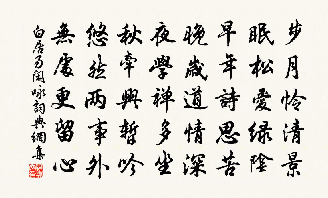 步月憐清景,眠松愛綠陰。早年詩思苦,晚歲道情深。