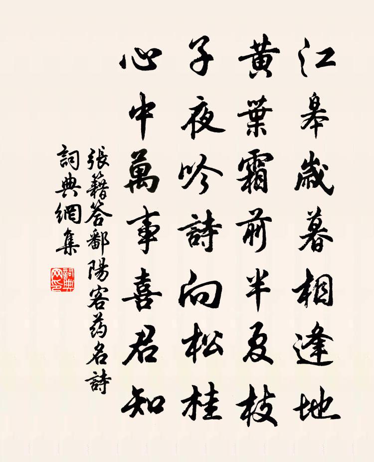 江皋歲暮相逢地,黃葉霜前半夏枝。子夜吟詩向松桂,心中萬事喜君知。