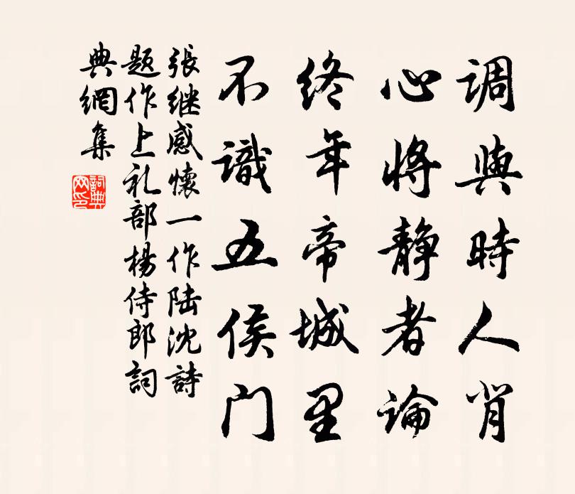 調與時人背,心將靜者論。終年帝城裡,不識五侯門。