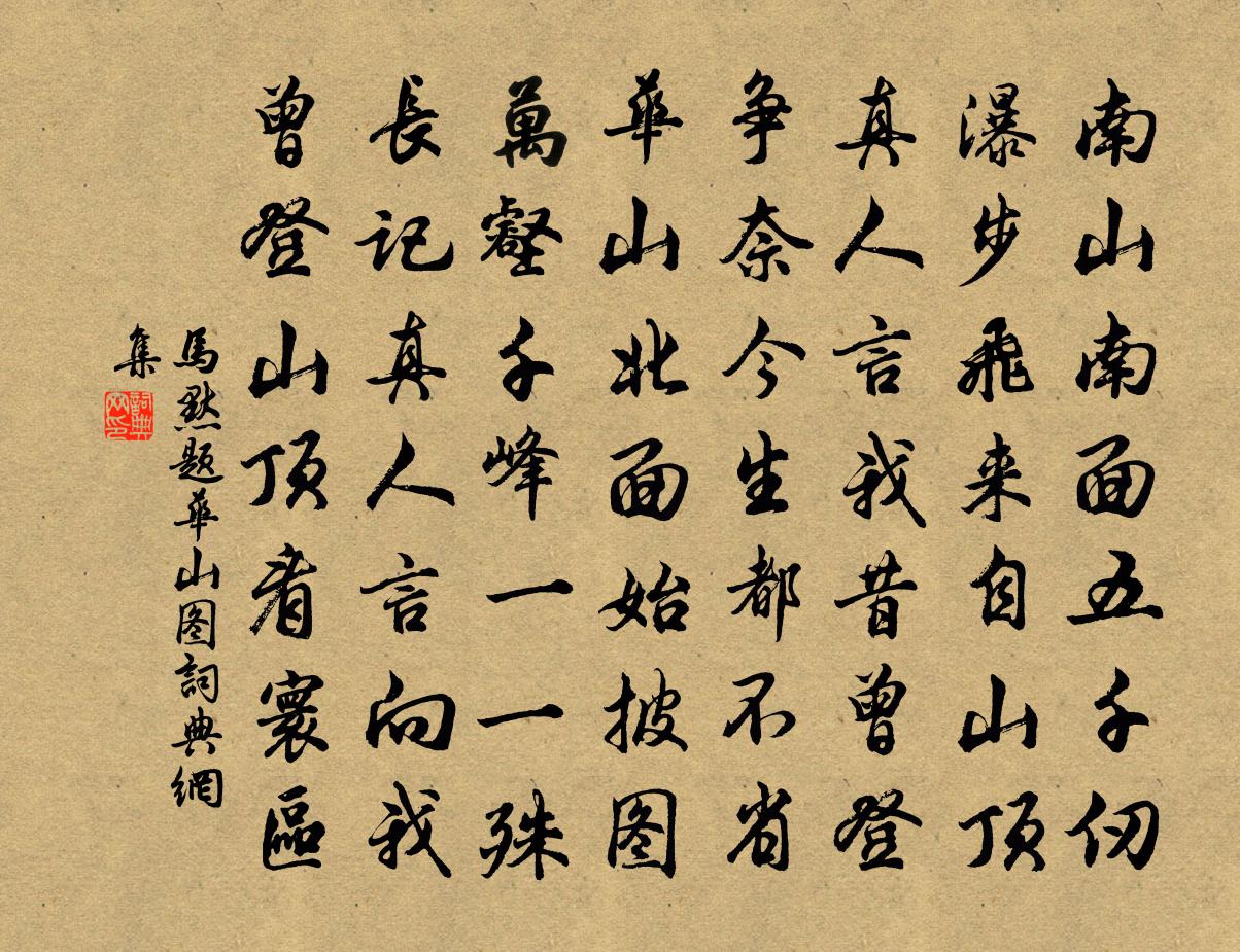 詩詞名句歷史字典書法欣賞書法字典國語詞典說文解字康熙字典古漢語字典標 題 作 者 詩 句 題華山圖作者:馬默 朝代:宋代題華山圖原文南山南面五千仞,瀑步飛來自山頂。真人言我昔曾登,爭奈今生都不省。華山北面始披圖,萬壑千峰一一殊。長記真人言向我,曾登山頂看寰區。詩詞問答問:題華山圖的作者是誰?答:馬默問:題華山圖寫於哪個朝代?答:宋代馬默題華山圖書法欣賞題華山圖書法作品詩詞推薦六言二首陳與義〔宋代〕種竹可侔千戶,擁書不假百城。何必思之爛熟,熱官無用分明。浣溪沙 臨川別席張翥〔元代〕昨夜花前送玉鍾。綠鬟歌罷落梅風。不知離思為誰濃。醉語低回銀燭背,夢雲重疊繡幃中。只愁歸路見芙蓉。寄元齡弟五首裘萬頃〔宋代〕莫怪窮年不入州,載書前已會盟鷗。市朝畢竟多塵事,且傍溪山靜處留。穴泉強至〔宋代〕泠泠西穴間,終日滴甘乳。道傍渴者多,切莫飲豺虎。八月十五日夜月意偃蹇夜久微明須臾復瞻叔兄魏了翁〔宋代〕長風送月九霄寬,無賴浮雲告亦頑。本自無私長委照,不應有礙似偏慳。蒼生望治東山隱,四海傾風釣瀨閒。潛復李與賢來訪,自言所居幽勝,甚似剡溪。因以楊萬里〔宋代〕溪上新橋是鳳林,殘風剩雨做秋陰。先生小試南風手,寫得一川山水音。二十年前與曾恭仲為忘年之交歲辛亥值便賦長曾豐〔宋代〕孔欲華顛禰妙齡,忘年不足更忘形。弟兄偏是子眉白,朋友獨於吾眼青。心若互馳常鑒寐,跡如相避各雲萍。十年菩薩蠻祖可〔宋代〕誰能畫取沙邊雨。和煙澹掃蒹葭渚。別岸卻斜暉。採蓮人未歸。鴛鴦如解語。對浴紅衣去。去了更回頭。教儂特地虞萬州生日魏了翁〔宋代〕初度相望十日期,一尊無路扣江扉。羈人職事門重鍵,堆案文書山四圍。未辦五千餘卷讀,空慚三十九年非。遙思江上逢故人韋莊〔唐代〕前年送我曲江西,紅杏園中醉似泥。今日逢君越溪上,杜鵑花發鷓鴣啼。來時舊里人誰在,別後滄波路幾迷。江畔壽成惠聖慈佑太皇太后合端午帖子衛涇〔宋代〕人間無處避炎蒸,身在瑤台最上層。學士大書金字帖,宮中巧篆降綃繒。緣識宋太宗〔宋代〕促軫調弦急,碎聲用意彈。指頭輕妙處,鶯舌五音端。望行人二首張舜民〔宋代〕望行人,行人在何所。燕雁不齊飛,參商竟相阻。別以三秋為久,生以百歲為期。不如還家對親戚,浮名浮利徒爾永嘉顧況〔唐代〕東甌傳舊俗,風日江邊好。何處樂神聲,夷歌出煙島。逸士墳周文璞〔宋代〕魂歸魄散兩逍遙,小小丘亭慰寂寥。守墓未須耘宿草,白蟾方護紫芝苗。早夏閒興白居易〔唐代〕簟冷乍逞新氣味,扇涼重敘舊恩情。口號十首呈程殿撰陳造〔宋代〕童顏緩緩閱莊靈,鬢影青青表帝庭。後四六年同北夜,台星光映老人生。臨別瓜州王令〔宋代〕十年來往常依依,此日復去來何時。青山有意退弗忍,白髮不逢歸未遲。乾坤不盡萬里望,草木無限西風悲。塵纓石油詩沈括〔宋代〕二郎山下雪紛紛,旋卓穹廬學塞人。化盡素衣冬不老,石油多似洛陽塵。約僧宿北山庵先寄平甫王令〔宋代〕上人合動山間興,吾恨衰遲學謝安。納屐操筇那有限,吹雲落雨漫無端。先戚報信春枝破,預想分題雪屋寒。林下名句推薦請君看取東流水,方識人間別意長。嚴仁《鷓鴣天·惜別》 驕奢淫逸,所自邪也。左丘明《左傳·隱公·隱公三年》 傷心枕上三更雨,點滴霖霪。李清照《添字醜奴兒·窗前誰種芭蕉樹》 可譽而不譽,非仁也。墨子《墨子·46章 耕柱》 江晚正愁予,山深聞鷓鴣。辛棄疾《菩薩蠻·書江西造口壁》 七八個星天外,兩三點雨山前。辛棄疾《西江月·夜行黃沙道中》 更滿眼、殘紅吹盡,葉底黃鸝自語。韓元吉《薄倖·送安伯弟》 塞上秋風鼓角,城頭落日旌旗。少年鞍馬適相宜。元好問《江月晃重山·初到嵩山時作》 後庭花一曲,幽怨不堪聽。劉禹錫《金陵懷古》 元方難為兄,季方難為弟。劉義慶《世說新語·德行》