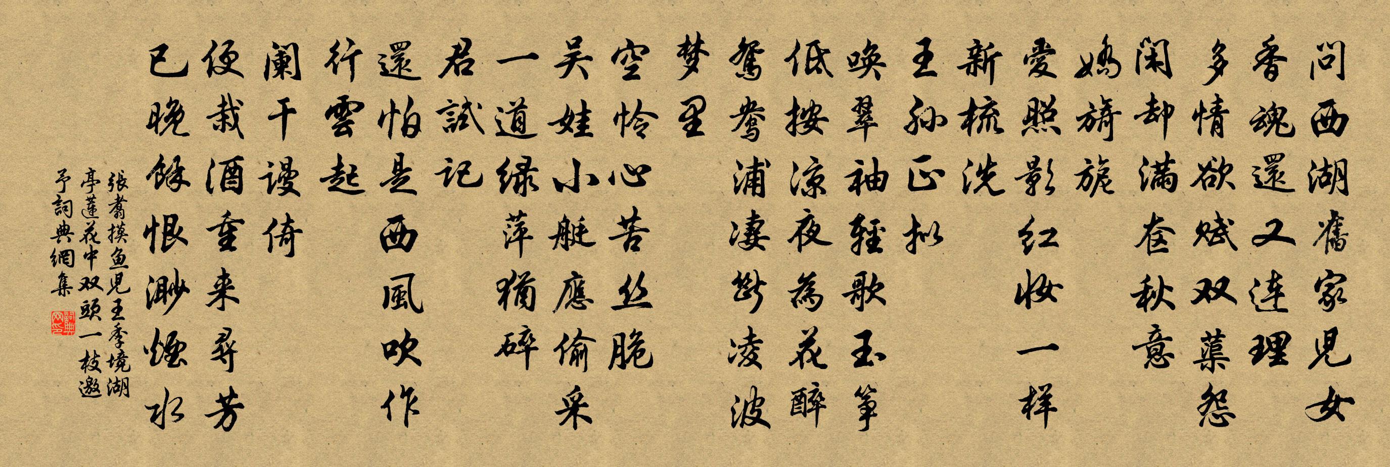 摸魚兒 王季境湖亭,蓮花中雙頭一枝,邀予書法作品