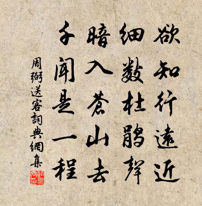 詩詞名句歷史字典書法欣賞書法字典國語詞典說文解字康熙字典古漢語字典標 題 作 者 詩 句 送客作者:周弼 朝代:宋代送客原文欲知行遠近,細數杜鵑聲。暗入蒼山去,千聞是一程。詩詞問答問:送客的作者是誰?答:周弼問:送客寫於哪個朝代?答:宋代周弼送客書法欣賞送客書法作品詩詞推薦秋日懸清光陶拱〔唐代〕秋至雲容斂,天中日景清。懸空寒色淨,委照曙光盈。泫泫看彌上,輝輝望最明。煙霞輪乍透,葵藿影初生。鑒下西河 一春索居味殊惡,賦此紀懷 以上四印齊邵亨貞〔元代〕春夢覺,一聲何處啼鳥。東風二月舊江南,庾郎暗老。暖寒日日禁單衣,闌乾憑遍清曉。水涯柳條漸好。玉*幾度臨刑詩鄭頲〔唐代〕幻生還幻滅,大幻莫過身。安心自有處,求人無有人。哭韓綽杜牧〔唐代〕平明送葬上都門,紼翣交橫逐去魂。歸來冷笑悲身事,喚婦呼兒索酒盆。句劉象功〔宋代〕千尋雙劍截不斷,一片閒雲飛過來。郴江百詠並序溫泉阮閱〔宋代〕誰將炎熱換清涼,可使澄泓作沸揚。從賜驪山妃子沐,人間處處得溫湯。清江台金君卿〔宋代〕貢章湍險吁可驚,岸翻石走轟雷霆。崩奔出{左章右貢}一千里,江勢到此才淵渟。道出仙府相照映,盤泊下飲蒼冬夜讀書示子聿陸游〔宋代〕殘雪初消薺滿園,糝羹珍美勝羔豚。吾曹舌本能知此,古學工夫始可言。雪後出遊戲作陸游〔宋代〕小巘平岡雪陸離,幽人又賦探春詩。典琴沽酒元非俗,著屐觀碑又一奇。大度乾坤容落托,多情風月笑衰遲。吾生呈李書史四首王夢應〔宋代〕火龍騎日雪飛空,勁草亭亭不見風。臣亮南陽今未老,一鋤雲碎日猶紅。清平樂·檢校山園書所見辛棄疾〔宋代〕連雲松竹,萬事從今足。拄杖東家分社肉,白酒床頭初熟。西風梨棗山園,兒童偷把長竿。莫遣旁人驚去,老夫靜偈頌一百零二首釋慧遠〔宋代〕文殊盡力一問,維摩結舌無言。布袋長時落魄,飲光論劫坐禪。鼻孔只在面上,口皮不離唇邊。四個合成兩個,三送韋侍御量移金州司馬(時予官獨未出)白居易〔唐代〕春歡雨露同沾澤,冬嘆風霜獨滿衣。留滯多時如我少,遷移好處似君稀。臥龍雲到須先起,蟄燕雷驚尚未飛。莫恨贈晁十七張耒〔宋代〕應之風骨世絕倫,濯濯芳柳當青春。瓊瑤冰雪照一坐,我恐子是神仙人。十年聲名望不見,一日邂逅情相親。安仁題龍潭石岩馬大同〔宋代〕攬轡觀風只課程,風雲要挹楚鄉清。晨旌幾礙觀山目,夜柝翻驚夢月情。觀者寧知部使者,平生元是老書生。滄浪歡喜吟邵雍〔宋代〕揚善不揚惡,記恩不記讎。人人自歡喜,何患少交遊。寄南安李使君三章趙蕃〔宋代〕如聞舍策已蹁躚,神物護持非蕊痊。為州莫漫貪良醞,把節何遲復舊氈。但期米許頻仍乞,敢望舟同縹緲仙。別久化城山主化田釋紹曇〔宋代〕古柳堤邊展化機,要人一飽便忘飢。誰將奪食驅耕手,拚卻良田種蒺藜。讀毛秘新新詩梅堯臣〔宋代〕毛公明於詩,其系宜善續。前示五長篇,大須傾幾曲。豈特元和間,咳唾成珠玉。再賦荔枝樓陸游〔宋代〕只道文書撥不開,未妨高處獨徘徊。山橫瓦屋披雲出,水自牂牁裂地來。暝入簾陰吹細雨,涼生樓角轉輕雷。痴頑名句推薦樂遊原上清秋節,鹹陽古道音塵絕。李白《憶秦娥·簫聲咽》 不憤不啟,不悱不發,舉一隅不以三隅反,則不復也。孔子弟子《論語·述而篇》 野店桃花紅粉姿,陌頭楊柳綠菸絲。趙孟頫《東城》 不畏浮雲遮望眼,只緣身在最高層王安石《登飛來峰》 且夫有高人之行者,固見負於世;有獨知之慮者,必見驁於民。商鞅《商君書·更法》 烈士暮年,壯心不已。曹操《龜雖壽》 且欲近尋彭澤宰,陶然共醉菊花杯。崔曙《九日登望仙台呈劉明府容》 青春幾何時,黃鳥鳴不歇。李白《江南春懷》 人攀明月不可得,月行卻與人相隨。李白《把酒問月·故人賈淳令予問之》 三年遇寒食,盡在洛陽城。白居易《洛橋寒食日作十韻》
