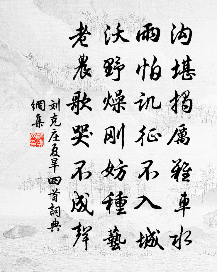 詩詞名句歷史字典書法欣賞書法字典國語詞典說文解字康熙字典古漢語字典標 題 作 者 詩 句 夏旱四首作者:劉克莊 朝代:宋代夏旱四首原文溝堪揭厲難車水,雨怕譏征不入城。沃野燥剛妨種藝,老農歌哭不成聲。詩詞問答問:夏旱四首的作者是誰?答:劉克莊問:夏旱四首寫於哪個朝代?答:宋代問:劉克莊的名句有哪些?答:劉克莊名句大全劉克莊夏旱四首書法欣賞夏旱四首書法作品詩詞推薦殘菊陸游〔宋代〕殘菊一枝香未殘,夜窗拈起百回看。過時只恐難相笑,我是三朝舊史官。達磨祖師贊釋師範〔宋代〕大破六宗,單傳一心。游梁歷魏,罕遇知音。少室九年空面壁,誰向同霜夜月沉沉。蜂羅隱〔唐代〕不論平地與山尖,無限風光盡被占。採得百花成蜜後,為誰辛苦為誰甜?屏居釋文珦〔宋代〕屏居泉石間,所樂在閒縱。山田與山果,皆吾手自種。禾穗已垂穎,栗包初拆縫。一鮑既可期,肯復作詩用。頌古四十五首釋如珙〔宋代〕鐘鳴眾集歸方丈,苦殺堂頭請法人。法法本來無一法,若言無法法纏身。田家 其五華岳〔宋代〕緋褲青衫紫系腰,攬衣隨過水平橋。雖然不識風流事,也向人前學逞嬌。題馬氏避暑宮開福寺蓮湖趙善括〔宋代〕金仙樓觀郁嵯峨,昔日曾容萬綺羅。不見園林蒙錦繡,空教鐘鼓喚笙歌。印花寶甃封蒼蘚,倚檻晴山擁翠螺。涼夜兩頭纖纖范成大〔宋代〕兩頭纖纖小秤衡,半白半黑月未明。腷腷膊膊扣戶聲,磊磊落落金盤冰。和曇域上人寄贈之什齊己〔唐代〕百病煎衰朽,棲遲戰國中。思量青壁寺,行坐赤松風。道寄虛無合,書傳往復空。可憐禪月子,香火國門東。工部發引日屬傷足臥疾不遂執紼權德輿〔唐代〕子春傷足日,況有寢門哀。元伯歸全去,無由白馬來。笳簫里巷咽,龜筮墓田開。片石潺湲淚,含悲敘史才。陳伯量輓詩二乎曹彥約〔宋代〕我晚慚初學,公才又壯年。同盟覺山寺,共飲玉溪泉。薄宦身常隔,高懷骨易仙。傷心風作惡,不助過湖船。和楊仲軻春難度文同〔宋代〕春難度。紅梢梢,尋縷縷。朝披煙,暮結雨。勸君飲酒莫用訴。春難度。和乘雪游山韻王柏〔宋代〕千丈層崖玉作堆,瑤林璀璨路縈迴。寒光徹骨清無敵,第一軒中第一杯。送天雄監兵李中吉宋祁〔宋代〕督府監軍重,清時握節榮。長雲抱漢壘,殘月偃邊兵。戍霧漁撾疊,衢風鶴蓋平。不應煩暑路,河朔趁飛觥。聞州中有宴寄崔大夫兼簡邢群評事許渾〔唐代〕簫管筵間列翠蛾,玉杯金液耀金波。池邊雨過飄帷幕,海上風來動綺羅。顏子巷深青草遍,庾君樓迥碧山多。甘心醉眠亭四首晁端佐〔宋代〕一枕雙湖意浩然,狂歌酒盡即高眠。吾生久與時相棄,好逐君歸作二仙。和李白潯陽紫極宮感秋謝枋得〔宋代〕雨歇月明松,天碧光入竹。好懷一時開,乾坤清可掬。相攜塵外游,此樂豈我獨。掃開松上雲,恐有鶴來宿。爽氣和寄陳士元趙希逢〔宋代〕開禧一失晚方收,在位諸公似拙謀。逞志真成窮鴨綠,憫寒誰識遣貂裘。王恢首事徒開釁,廣利邀功要覓侯。多少賦歸吟金朋說〔宋代〕松菊存陶徑,弦歌絕武城。江東新發櫂,僮僕笑相迎。偈頌一百零九首釋可湘〔宋代〕一大藏教,了無關鑰。奇峰峨峨,幽石落落。撥轉機輪話已行,到底不留元字腳。名句推薦垂楊拂綠水,搖艷東風年。李白《折楊柳》 煙橫水際,映帶幾點歸鴉,東風銷盡龍沙雪。賀鑄《石州引·薄雨初寒》 閒處光陰易過曹雪芹《紅樓夢·第一回》 十年種木,一年種穀,都付兒童。元好問《人月圓·重岡已隔紅塵斷》 曉戰隨金鼓,宵眠抱玉鞍。李白《塞下曲六首·其一》 五馬如飛龍,青絲結金絡。李白《陌上桑》 夜雨做成秋,恰上心頭。納蘭性德《浪淘沙·夜雨做成秋》 雨晴煙晚。綠水新池滿。馮延巳《清平樂·雨晴煙晚》 故人具雞黍,邀我至田家。孟浩然《過故人莊》 漢臣曾此作縲囚,茹血衣毛十九秋。汪遵《詠北海》