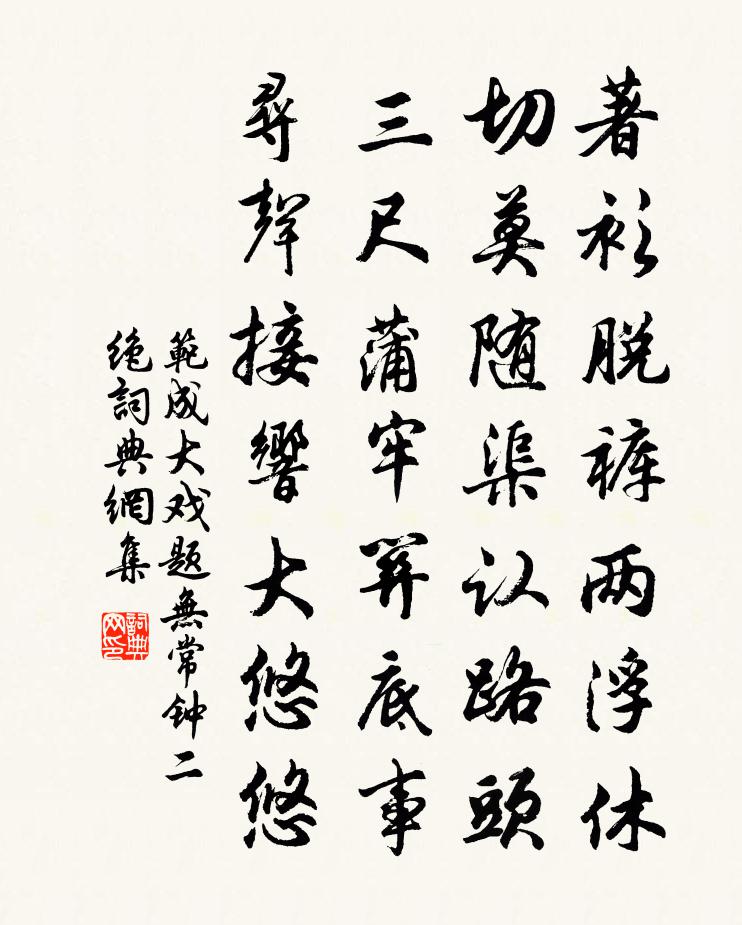 著衫脫褲兩浮休,切莫隨渠認路頭。三尺蒲牢關底事,尋聲接響大悠悠。