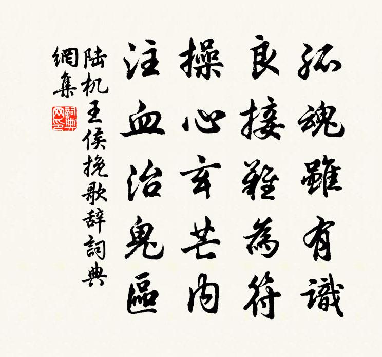 詩詞名句歷史字典書法欣賞書法字典國語詞典說文解字康熙字典古漢語字典標 題 作 者 詩 句 王侯輓歌辭作者:陸機 朝代:魏晉王侯輓歌辭原文孤魂雖有識。良接難為符。操心玄芒內。注血治鬼區。詩詞問答問:王侯輓歌辭的作者是誰?答:陸機問:王侯輓歌辭寫於哪個朝代?答:魏晉問:王侯輓歌辭是什麼體裁?答:樂府陸機王侯輓歌辭書法欣賞王侯輓歌辭書法作品詩詞推薦贈高黃二子陳造〔宋代〕平昔金蘭契,過逢意自饒。乘閒無窘步,命笑有嘉招。翠斂歌眉黛,紅生醉頰潮。歸驂眾惜夜,小待玉笙調。謁堯帝廟(桂州堯廟有開元二年彌明謁堯詩,,自宋鐫石)軒轅彌明〔唐代〕祖龍開國盡遐荒,廟建唐堯鎮此邦。山卷白雲朝帝座,林疏紅日列仙幢。巍巍聖跡陵松嶠,蕩蕩恩波洽桂江。瞻仰病起三首楊公遠〔宋代〕一病已兼旬,朝來試整襟。眼前驚霧散,耳底怪蟬吟。檢點塵侵硯,爬搔雪滿簪。春歸渾未省,綠樹又成陰。行路難張耒〔宋代〕人生動與衣食關,百年役役誰為閒。四時睡足鞍馬上,去歲錢塘今長安。車愁羊腸夜險折,船畏人鮓晨驚湍。九州漱玉軒為邑之佳處頃春祝寺僧少葺之重來則眼李石〔宋代〕泉上觀音駕海潮,白芙蕖里碧雲飄。便當踏月隨天步,環佩無風自動搖。詠雪於清虛堂火閣白玉蟾〔宋代〕長空慘慘晝如夜,嚴風颳得雪片下。寒猿傍樹不敢聲,江梅羞開恐易謝。萬山無限落葉愁,處處凝煙纏草舍。枯槎初冬近飲酒作范成大〔宋代〕天水邊陲南接蜀,秦山翠照峨峨緑。世間豈有糞金牛,枉使五丁斧山玉。罷侯置守自蜀始,監郡東來兩成轂。至今綿州魏成縣驛有羅江東詩云芳草有情皆礙馬好陸游〔宋代〕老夫乘興忽西遊,遠跨秦吳萬里秋。尊酒登臨遍山寺,歌辭散落滿江樓。孤城木葉蕭蕭下,古驛灘聲虢虢流。未許道山座主先生平章呂公輓歌辭五首方回〔宋代〕乃公同此老,兩柱共擎天。初作二千石,才生十九年。漢陽□最大,嶺外帥何緣。極恨湖濱相,奸臣喜弄權。四月上澣日同寮約游西湖十絕張鎡〔宋代〕豐樂樓前未夕暉,可堪魚鑰限城扉。詩成快向歸時寫,丹墨明朝與興違。無題范成大〔宋代〕聞道明朝送舊官,無情更鼓夜將闌。此生見面知何日?忍淚須臾子細看。十月九日初謁衛真太清宮二首晁補之〔宋代〕虛庭下拜初形肅,秘殿瞻容更魄驚。何必囊函窺至妙,始知塵垢負平生。同安權縣林丞和餘二首趁韻答之劉克莊〔宋代〕雖與尊公甲子同,懸鶉久矣愧華蟲。程仇不□□□魏,王貢安能勝鮑龔。時有放歌吟屋破,且無□□□途窮。故山通源驛別顏茂才蔡襄〔宋代〕躍馬東來不記時,酒醒寒色入征衣。垂楊官道連天去,落日郵亭別我歸。次韻立方何園沈說〔宋代〕春事覺垂垂,春行似後期。草根花片積,人語鳥聲隨。酒病因過量,棋輸為好奇。欲歸愁路遠,月色若為私。湘上二首孔武仲〔宋代〕南歸曾泛碧湘船,擊伏臨流似浩然。平野幾枯殘歲草,淥波猶浸舊時天。簿書倥傯嗟岩邑,樽酒歡娛憶少年。尺水偈二首釋守仁〔宋代〕雲從龍,風從虎,吹散江村寒露雨。麗天杲日絕纖埃,有路明明吞佛祖。物見主,眼卓豎。天邊白雁送寒歸,籬下建中癸亥歲奉天除夜宿武當山北茅平村戴叔倫〔唐代〕歲除日又暮,山險路仍新。驅傳迷深谷,瞻星記北辰。古亭聊假寐,中夜忽逢人。相問皆嗚咽,傷心不待春。江城子 五月十二壽萬拙齊謝應芳〔元代〕去年今日瀉天瓢。水滔滔。斷藍橋。阻我群仙,鸞鶴赴蟠桃。獨有商羊偏喜雨,跳且舞,上山椒。今年南極見丹霄別詩佚名〔兩漢〕骨肉緣枝葉,結交亦相因。四海皆兄弟,誰為行路人。況我連枝樹,與子同一身。昔為鴛和鴦,今為參與辰。昔者名句推薦自憐人憐,自棄人棄。心無滯礙,害不侵矣。來俊臣《羅織經·保身卷第七》 天下未有不學而成者也。王通《中說·卷六·禮樂篇》 夜雨做成秋,恰上心頭。納蘭性德《浪淘沙·夜雨做成秋》 意內稱長短,終身荷聖情。杜甫《端午日賜衣》 莫辭秉燭通霄坐,明日相思隔隴煙。王守仁《諸門人送至龍里道中二首》 今日江頭兩三樹,可憐和葉度殘春。元稹《離思五首》 執手相看淚眼,竟無語凝噎。柳永《雨霖鈴·寒蟬淒切》 春欲盡,日遲遲,牡丹時歐陽炯《三字令·春欲盡》 路逢險處須迴避,事到臨頭不自由。佚名《增廣賢文·上集》 休對故人思故國,且將新火試新茶。詩酒趁年華。蘇軾《望江南·超然台作》