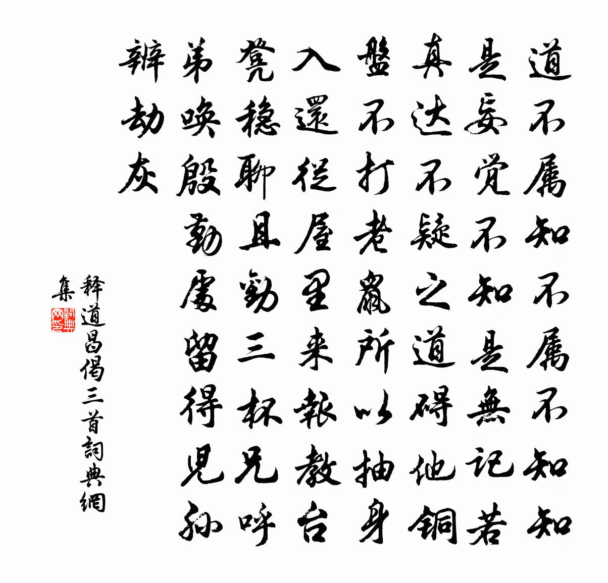 詩詞名句歷史字典書法欣賞書法字典國語詞典說文解字康熙字典古漢語字典標 題 作 者 詩 句 偈三首作者:釋道昌 朝代:宋代偈三首原文道不屬知,不屬不知。知是妄覺,不知是無記。若真達不疑之道,礙他銅盤不打老鼠。所以抽身入,還從屋裡來。報教台凳穩,聊且勸三杯。兄呼弟喚殷勤處,留得兒孫辨劫灰。詩詞問答問:偈三首的作者是誰?答:釋道昌問:偈三首寫於哪個朝代?答:宋代釋道昌偈三首書法欣賞偈三首書法作品詩詞推薦病起金君卿〔宋代〕黃祖城邊下石船,蕉林暗地雨如煙。只知問俗求民瘼,卻愧經旬臥癉天。別一章改韻同五詩呈堯夫司馬光〔宋代〕家雖在城闕,蕭瑟似山阿。遠去名利窟,自稱安樂窩。雲歸白石洞,鶴立碧松柯。得喪非吾事,何須更寤歌。病中絕句范成大〔宋代〕溽暑薰天地湧泉,變跧避濕掛行纏。出門斟酌無忙事,睡過黃梅細雨天。西江月 清河書畫舫卷六引書史會要案影印洪丘處機〔元代〕屈指追思前世,低頭省悟令望。今生若不做修行。又與輪迴作爭。幸遇直常要妙,點頭莫故昏蒙。便揮寶劍殺三朋村舍陸游〔宋代〕生理嗟彌薄,吾居久未完。蝶飛窗紙碎,龜坼壁泥乾。小雨牛欄洷,微霜碓舍寒。晚禾蟲獨少,鄰里共相寬。觀魚軒歐陽修〔宋代〕當年下澤驅羸馬,今見犀兵擁碧油。位望愈隆心愈靜,每來臨水翫游鯈。過都造朝入見之日蒙恩延登賜坐感天荷德退而宋庠〔宋代〕出守西周又許田,白頭何幸再朝天。升階子細瞻堯日,不似侏儒夢灶年。秋朝覽鏡薛稷〔唐代〕客心驚落木,夜坐聽秋風。朝日看容鬢,生涯在鏡中。次吳園親友韻馬廷鸞〔宋代〕乞得危身百尺竿,冥心晦息掩柴關。自尋別墅開荒徑,忽見高軒厭轡環。海宇泬寥黃鵠舉,風濤浩蕩白鷗閒。劍花梅花絕句陸游〔宋代〕士窮見節義,木槁自芬芳。坐回萬物春,賴此一點香。西江月(壽李知丞)郭應祥〔宋代〕明日恰當人日,今年遠勝常年。瓣香卮酒壽藍田。喜色津然滿面。及戍人方競進,懸車公獨高騫。身閒便是地行仙經湛長史草堂呂渭〔唐代〕岩居舊風景,人世今成昔。木落古山空,猿啼秋月白。誰同西府僚,幾謝南平客。摧殘松桂老,蕭散煙雲夕。跡留贈江州李十使君員外十二韻白居易〔唐代〕我本江湖上,悠悠任運身。朝隨賣藥客,暮伴釣魚人。跡為燒丹隱,家緣嗜酒貧。經過剡溪雪,尋覓武陵春。豈有三洞於石〔宋代〕群峭摩天不染埃,凝嵐滴翠郁崔嵬。簾垂飛瀑無人卷,舟引遊仙出洞來。一竅中誰開混沌,三山外亦有蓬萊。捫蘿再次韻文潛病起晁補之〔宋代〕淮浦見之子,春風初策名。頗訝謫仙人,有籍白玉京。晚遇廣文直,老交心愈傾。同升芸香府,偶坐華發生。斯人醉蓬萊(端午)趙長卿〔宋代〕見浴蘭才罷,拂掠新妝,巧梳雲髻。初試生衣,恰三裁貼體。艾虎宜男,朱符辟惡,好儲祥納吉。金鳳釵頭,應時西江月(送公棠戎)陳著〔宋代〕錢影何曾過眼,筆頭那肯虧心。系門瘦馬影沈沈。夜柝不驚春枕。一去輕如蕉夢,三鄉都是棠陰。等閒換取印黃金百一詩 十七應璩〔魏晉〕洛水禁罾罟。魚鱉不為殖。空令自相啖。吏民不得食。同諸友尋幽登飛來峰釋文珦〔宋代〕湖際山何限,飛來獨著名。玲瓏疑鬼鑿,崷崒自天成。猿去猶存洞,龍歸尚有泓。樹因含玉潤,泉為煉丹清。桂了偈十三首釋慧空〔宋代〕雪峰禪,無星子,只見升堂打鼓。賺得大眾上來,近日山中有虎。長至令晨,顛言倒語。名句推薦蠶無夏織桑充寨,田廢春耕犢勞軍。杜荀鶴《題所居村舍》 望征路愁迷,離緒難整陸叡《瑞鶴仙梅》 歸志寧無五畝園,讀書本意在元元。陸游《讀書》 花不語,水空流。年年拚得為花愁。晏幾道《鷓鴣天·守得蓮開結伴遊》 無善而致人譽,不如無惡而致人毀。洪應明《菜根譚·概論》 雲無心以出岫,鳥倦飛而知還。陶淵明《歸去來兮辭·並序》 坐蔭從容煩暑退,清心恍惚微香觸。陸容《滿江紅·詠竹》 盡日空濛無所見,雁行斜去字聯聯。韋莊《登鹹陽縣樓望雨》 歲夜高堂列明燭,美酒一杯聲一曲。李頎《聽安萬善吹觱篥歌》 上不臣天子,下不事諸侯;慎靜而尚寬,強毅以與人,博學以知服;近文章砥厲廉隅;雖分國如錙銖,不臣不仕。戴聖《禮記·儒行》