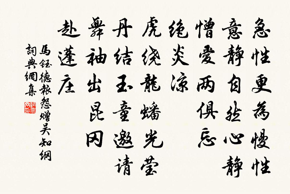 詩詞名句歷史字典書法欣賞書法字典國語詞典說文解字康熙字典古漢語字典標 題 作 者 詩 句 德報怨 贈吳知綱作者:馬鈺 朝代:元代德報怨 贈吳知綱原文急性更為慢性。意靜自然心靜。憎愛兩俱忘。絕炎涼。虎繞龍蟠光瑩。丹結玉童邀請。舞袖出崑岡。赴蓬莊。詩詞問答問:德報怨 贈吳知綱的作者是誰?答:馬鈺問:德報怨 贈吳知綱寫於哪個朝代?答:元代問:德報怨 贈吳知綱是什麼體裁?答:詞馬鈺德報怨 贈吳知綱書法欣賞德報怨 贈吳知綱書法作品詩詞推薦敬和九鎖步虛詞雲璈鎖趙汝湜〔宋代〕悠悠劫為朝,萬民恣遨遊。三山眇如塊,舉步身彌高。絳宮近咫尺,天風度騷騷。至音非笙歌,泠然八琅璈。送尹叔之象州曾幾〔宋代〕歲星一別又回天,貧賤交情老更堅。傳世典型清徹骨,向人懷抱直如弦。經營象郡三椽屋,漂泛龍城一葉船。風雨宗兄端叟年七十六來訪二首方回〔宋代〕年才逾壯早相知,北騎南船幾別離。二老皆鄰八旬壽,一生誰賦萬篇詩,特承枉顧元無說。獲侍同行識者誰,流水鏈丹井釋智圓〔宋代〕仙去遺蹤在,泠泠翠岳邊。泠光涵碧甃,暗脈洩寒泉。月映冰壺淺,秋澄古鑒圓。羽人居止近,閒汲灌芝田。贈劉子卿時劉將赴官鎮江並以道別三首趙蕃〔宋代〕吾友周信道,坐思終死窮。眼中寧復有,地下亦難同。夢絕西州路,愁聞北固鴻。並游惟伯厚,還愧尺書通。四皓二首王安石〔宋代〕秦敺九州逃,知力起經綸。重利誘眾策,頗知聚秦民。頹然此四老,上友千載魂。采芝商山中,一視漢與秦。靈珠南鄉子葉夢得〔宋代〕數枝,喜之,為賦山畔小池台。曾記幽人著意栽。亂石參差春至晚,徘徊。素景沖寒卻自開。絕絕照瓊瑰。孤負芳晨炊翫鞭亭二首楊萬里〔宋代〕老賊平欺晉鼎輕,一輪五色夢中驚。寶鞭脫急非無策,何似休將日遶營。題兩畫軸章甫〔宋代〕綠樹無多雨過,青山一半雲遮。斷岸野橋春水,閉門茆屋誰家。頌古九十八首釋印肅〔宋代〕拈古談今我尚無,木奴草女辨工夫。草木恰知非外物,含靈那信自毗盧。正月六日七日書所見晁說之〔宋代〕扶光歲首當何辰,薦視變異紛無垠。既驚馬日不為馬,況復人日不成人。鹹疑白晝懸月魄,嘩言日月本斗格。如負留獻彭門郭常侍羅鄴〔唐代〕受得彭門擁信旗,一家將謂免羈離。到來門館空歸去,羞向交親說受知。層構尚無容足地,尺波寧有躍鱗時。到頭問菊黃庚〔宋代〕山岡獨立對秋光,一袖西風兩屐霜。笑倚東籬問寒菊,自淵明後幾番香。賀新郎吳潛〔宋代〕一笑春無語。但園林、陰陰綠樹,老紅三數。底事東風猶自妒,片片狂飛亂舞。便燕懶、鶯殘初起。芍藥荼還又是龍湖歸丘葵〔宋代〕策蹇下玉崗,東風忽吹晴。不暖亦不寒,夜氣覺自清。書生澹無事,復戀舊短檠。開卷見聖賢,愧我猶編氓。便思苞苴行鄭俠〔宋代〕苞苴來,苞苴去,封書裹信不得住。君不見箕山之下有仁人,室無杯器,以手的捧水,不願風瓢掛高樹。白蓮雨後漸衰釋居簡〔宋代〕曉池芳柄褭殘馨,褪雨欹風鷺委翎。碧展一奩秋練練,似憐玉色鏡中零。項里溪上見珍禽日溪鵲相隨數十步不去陸游〔宋代〕涉溪來過東溪老,斷枝槁葉紛如掃。忽逢溪鵲昔未識,言語惺憁羽毛好。異哉馴狎若可呼,跡雖甚疏情有餘。上穿送任浙東廉使董天吉〔宋代〕曾聞鼻祖牧宣州,又見邦人送我侯。世閱雙旌相絢映,人生五馬自風流。西偏清嘯獨孤觀,北望高吟小謝樓。此去國清寺樓鑰〔宋代〕夾道青松引客來,五峰雙澗擁樓台。豐乾饒舌留公案,隨帝遺書暗古煤。最喜親知來里社,真成春月上天台。陰雲名句推薦恰似春風相欺得,夜來吹折數枝花。杜甫《絕句漫興九首·其二》 玄都觀里桃千樹,花落水空流。元好問《人月圓·玄都觀里桃千樹》 雲雨朝還暮,煙花春復秋。李珣《巫山一段雲·古廟依青嶂》 世有伯樂,然後有千里馬。千里馬常有,而伯樂不常有。韓愈《雜說四·馬說》 可惜一片清歌,都付與黃昏。黃孝邁《湘春夜月·近清明》 荷葉生時春恨生,荷葉枯時秋恨成。李商隱《暮秋獨游曲江》 潯陽江頭夜送客,楓葉荻花秋瑟瑟。白居易《琵琶行 / 琵琶引》 一晌凝情無語,手捻梅花何處。王之道《如夢令·一晌凝情無語》 行善濟人,人遂得以安全,即在我亦為快意王永彬《圍爐夜話·第五一則》 臥聞兒女夸翁健,詩句年光一樣新劉克莊《戊午元日二首》