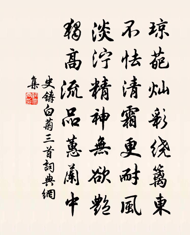 詩詞名句歷史字典書法欣賞書法字典國語詞典說文解字康熙字典古漢語字典標 題 作 者 詩 句 白菊三首作者:史鑄 朝代:宋代白菊三首原文瓊葩燦彩繞籬東,不怯清霜更耐風。淡濘精神無欲艷,獨高流品蕙蘭中。詩詞問答問:白菊三首的作者是誰?答:史鑄問:白菊三首寫於哪個朝代?答:宋代史鑄白菊三首書法欣賞白菊三首書法作品詩詞推薦遊仙詞三十三首王鎡〔宋代〕修成功行滿三千,或在人間或在天。留下九還丹一粒,城南老樹得升仙。唐修撰義問輓詞二首蘇轍〔宋代〕我返南荒日,君臨舊許初。笑談寬老病,旌旆擁茅廬。酒盞開雖數,溪堂到尚疏。誰言生死隔,近在浹旬余。長子伯溫失解以詩示之邵雍〔宋代〕儒家所尚者,行善與文章。用舍何嘗定,枯榮未易量。乾求便黽勉,得失是尋常。外物不可必,其言味甚長。薤露行曹植〔魏晉〕天地無窮極。陰陽轉相因。人居一世間。忽若風吹塵。願得展功勤。輪力於明君。懷此王佐求。慷慨獨不羣。鱗介贈侍中李良定公輓詞王珪〔唐代〕悲簫忽犯曉樓鍾,樽酒應非昔餞同。家貴曾還金鉞寵,時清不見玉關功。佳城蔓草千年閉,後院繁絃一夕空。惟有春貼子詞皇后閣五首司馬光〔宋代〕種稑獻新種,褘褕汗舊衣。玉鉤隨步輦,行持採桑歸。登西樓二首馮時行〔宋代〕林際虹霓掛晚晴,西樓無事翠煙橫。荷花半落水風遠,桂子欲飄山月明。黃卷久忘塵世事,白雲猶動故園情。無端攜癭尊醉梅花下陸游〔宋代〕楠癭作尊容斗許,擁腫輪囷元媚嫵;肯從放翁來住山,誰雲置身不得所?山房寂寞久不飲,作意欲就梅花語。我病梅花徐介軒〔宋代〕香梅爛漫見紅梅,白白朱朱取次開。料得故園春色滿,有人花下正徘徊。句繆鑒〔宋代〕門當車馬道,簾隔利名塵。謝富相公見示新詩一軸邵雍〔宋代〕文章天下稱公器,詩在文章更不疏。到性始知真氣味,入神方見妙功夫。閒將歲月觀消長,靜把乾坤照有無。辭比齋中雜興十首以丈夫貴壯健慘戚非朱顏為韻陸游〔宋代〕成童入鄉校,諸老席函丈。堂堂韓有功,英概今可想。從父有彥遠,早以直自養,始終臨川學,力守非有黨。紛紛摸魚子許有壬〔元代〕買陂塘旋載楊柳,田園忙勝官務。放魚種藕常無暇,移竹又當新雨。由近渚。駕一葉扁舟,時復還吾嶼。花香為語煎茶丁謂〔宋代〕開緘試雨前,須汲遠山泉。自繞風爐立,誰聽石碾眠。輕微緣入麝,猛沸卻如蟬。羅細烹還好,鐺新味更全。花隨木客李公佐仆〔唐代〕酒盡君莫沽,壺傾我當發。城市多囂塵,還山弄明月。送覺上人釋斯植〔宋代〕送君千里去,又見落花飛。水國今宵別,天涯隔歲歸。岸多春樹密,灘小夕陽微。後夜扁舟月,應逢宿鳥稀。皇太子妃請就徑山升座末後說偈釋鹹傑〔宋代〕佛身無為,不墮諸數。隨機示現,應無所住。如月行空,光照寰宇。廓徹信心,莊嚴福聚。記得先賢曾有言,皇天寄廬岳鑒上人李中〔唐代〕岳寺棲瓶錫,常人親亦難。病披青衲重,晚剃白髭寒。烘壁茶煙暗,填溝木葉乾。昔年皆禮謁,頻到碧雲端。曉起林景怡〔宋代〕天雞弄喔咿,殘星在斜漢。整衣出幽扉,山城漏初斷。微微水風生,冉冉田露散。此時游葛天,淡然空百羨。海色用葵軒送定叟平時兄弟間首句送季永弟赴省吳泳〔宋代〕平時兄弟間,如友相箴規。每於和順中,切切而偲偲。筆硯三十年,風雨無停披。草衣而糲食,穴坯而敗帷。子文名句推薦夫綴文者情動而辭發,觀文者披文以入情,沿波討源,雖幽必顯。劉勰《文心雕龍·知音》 叢菊兩開他日淚,孤舟一系故園心。杜甫《秋興八首·其一》 有孫母未去,出入無完裙。杜甫《石壕吏》 清江一曲柳千條,二十年前舊板橋。劉禹錫《楊柳枝 / 柳枝詞》 若順吾皇意,即無臣子心。棲蟾《送遷客》 斗萬花樣巧,深染蜂黃。吳文英《惜黃花慢·菊》 家住層城臨漢苑,心隨明月到胡天。皇甫冉《春思》 燕歸花謝,早因循、又過清明。納蘭性德《紅窗月·燕歸花謝》 聲樂之入人也深,其化人也速。荀子《荀子·樂論》 雪後燕瑤池,人間第一枝。趙令畤《菩薩蠻·春風試手先梅蕊》