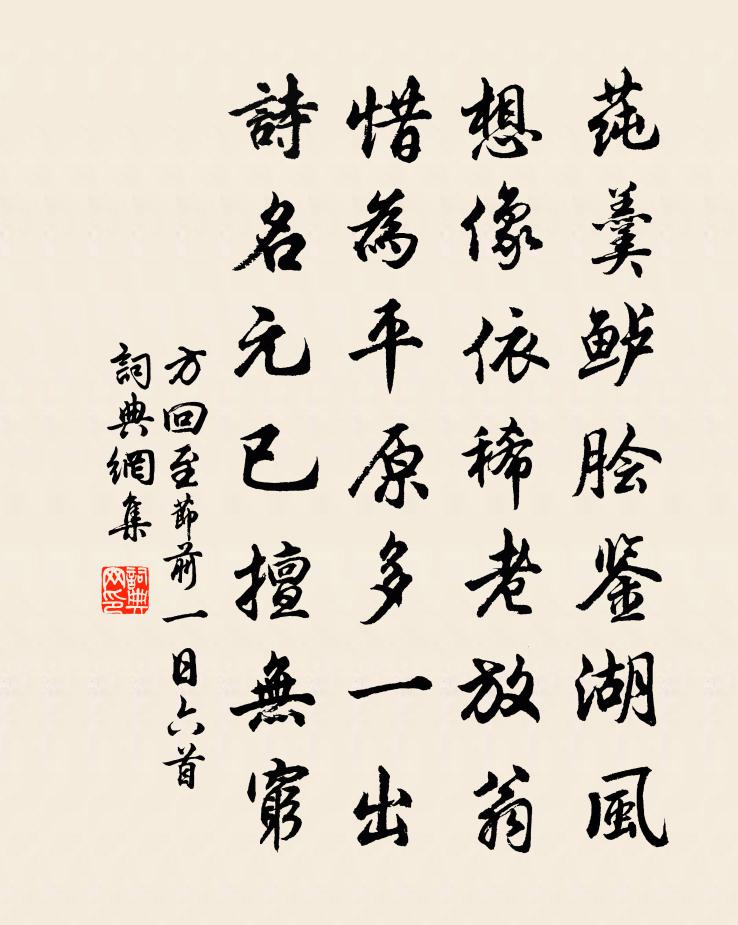 詩詞名句歷史字典書法欣賞書法字典國語詞典說文解字康熙字典古漢語字典標 題 作 者 詩 句 至節前一日六首作者:方回 朝代:宋代至節前一日六首原文蓴羹鱸膾鑑湖風,想像依稀老放翁。惜為平原多一出,詩名元已擅無窮。詩詞問答問:至節前一日六首的作者是誰?答:方回問:至節前一日六首寫於哪個朝代?答:宋代方回至節前一日六首書法欣賞至節前一日六首書法作品詩詞推薦題曾口縣江月亭二首張嵲〔宋代〕江城月暗山岑郁,默坐但聽巴水聲。向使江清山月白,欲教遷客若為情。上嚴廉訪十首熊禾〔宋代〕大哉伊洛傳,正統接洙泗。一源肇南來,九曲清日泚。百年尚無有,千載那可俟。崇台勵風化,此是第一義。句楊億〔宋代〕巍巍百尺樓上槐,來樓清密葉已繁。生查子楊炎正〔宋代〕金蓮照夜紅,玉腕扶春碧。曲妙遏雲行,人好欺花色。歡生酒面濃,笑染爐香濕。飲盡十玻璃,月墮東方白。送彭司戶之官三山戴復古〔宋代〕祭酒家風重,民曹官職卑。公勤為己任,清白取人知。臘月三山雪,梅花一路詩。舊時來往處,今有夢相隨。飲馬長城窟王炎〔宋代〕春風塞草青,胡兒區脫靜。秋風塞草黃,胡騎角弓勁。秦人驅丁夫,築城備強胡。城成有虧日,胡來無已時。哀笳用東坡武昌寒溪韻三篇朱槔〔宋代〕東坡謫官未放回,桃花不系玄都栽。機牙愛獨造物手,五見江雨肥江梅。扁舟一笑凌浩渺,瘦筇結伴登崔嵬。窪尊可笑口號文同〔宋代〕可笑陵陽太守家,閒無一事只栽花。已開漸落並才發,長作亭中五色霞。望湘人(春思)賀鑄〔宋代〕厭鶯聲到枕,花氣動簾,醉魂愁夢相半。被惜餘薰,帶驚剩眼。幾許傷春春晚。淚竹痕鮮,佩蘭香老,湘天濃暖。次韻原仲竹劉子翬〔宋代〕夕煙浮野圃,春竹過鄰牆。石澗深深影,風軒遠遠涼。禪心敲有韻,翠袖倚生香。不有冰霜勁,蒿萊到汝長。竹齋述事裘萬頃〔宋代〕夢魂驚斷渺難續,臥聽竹晨風泠泠。寒蛩爭鳴繞四壁,缺月並墮橫疎欞。平生細字發欲白,午夜短檠燈尚青。稻粱某忝命守餘杭楊元素內翰洎兩禁諸公出祖佛寺蘇頌〔宋代〕內閣臨邊貴,鑾坡主席優。賦詩嘉趙孟,載酒餞韓侯。何幸江城守,容陪禁序游。煙霄慚久隔,聲氣荷相求。笑語蟻劉克莊〔宋代〕呼童掃蟻子,勿上法堂階。渠出賣廳角,雲參妙喜來。春日懷淮陽六首張耒〔宋代〕西城門外古壕清,太昊祠前春草生。早晚粗酬身計了,長為閒客此間行。送侯判官赴廣州從軍張籍〔唐代〕年少才高求自展,將身萬里赴軍門。辟書遠到開呈客,公服新成著謝恩。驛舫過江分白堠,戍亭當嶺見紅幡。海花頌古三十二首釋明辯〔宋代〕大寂宗風示後昆,金剛寶劍利當門。瞎驢滅卻 * 眼,那個男兒解出群。唐律寄呈父鳳山提舉十首汪元量〔宋代〕愁來不可更禁當,望鬼門關斷盡腸。無處告訴只欲死,有時顛倒忽成狂。三湘風雨失舟檝,萬里路岐多雪霜。遙憶定風波(三·淥水橋)仲殊〔宋代〕南徐好,橋下淥波平。畫柱千年嘗有鶴,垂楊三月未聞鶯。行樂過清明。南北岸,花市管弦聲。邀客上樓雙榼酒,瑞慶園觀稼奉聖旨次韻寇準〔宋代〕善苗棲畝昭靈貺,禁苑鳴鑾值素秋。斂籍神倉符禮本,采詩良耜慶農收。宴開雲幄皇慈洽,日駐天衢睿賞留。千載禁菸前一日招幕屬小集林提乾有詩和韻李曾伯〔宋代〕草草登樓適,英流邁昔賢。詩篇長慶集,人物永和年。訪古宜聯社,傷春又禁菸。青簾家酒賤,剩飲莫論錢。名句推薦撥雲尋古道,倚石聽流泉。李白《尋雍尊師隱居》 假金方用真金鍍,若是真金不鍍金。李紳《答章孝標》 楊柳乍如絲,故園春盡時。納蘭性德《菩薩蠻·問君何事輕離別》 君命無違,榮之本也,智者捨身亦存續。來俊臣《羅織經·固榮卷第六》 望望不見君,連山起煙霧。李白《金鄉送韋八之西京》 真積力久則入。荀子《荀子·勸學》 自伐者無功;自矜者不長。老子《老子·道經·第二十四章》 果仁者,人多畏,言不諱,色不媚。李毓秀《弟子規·親仁》 零淚向誰道,雞鳴徒嘆息。沈約《夜夜曲》 人無千日好,花無百日紅。馮夢龍《醒世恆言·卷一》