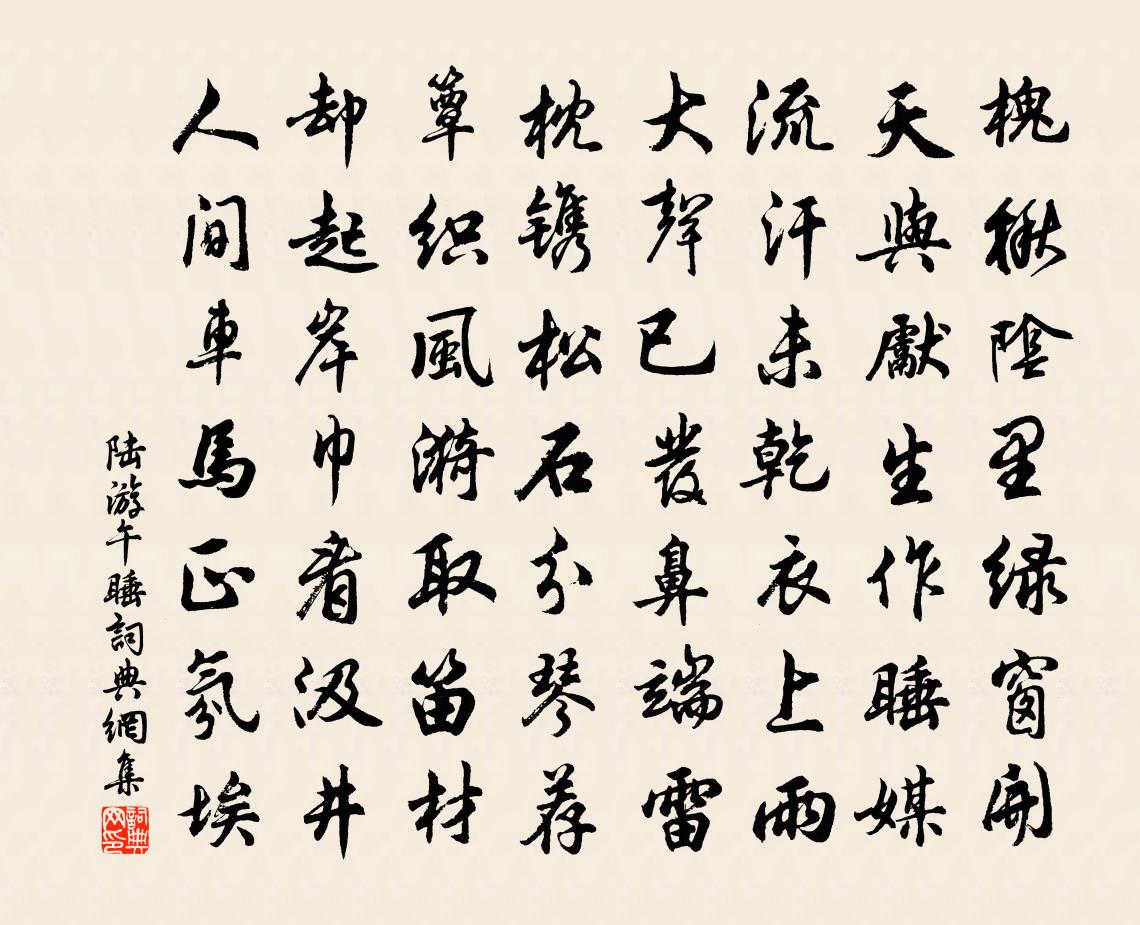 槐楸陰里綠窗開,天與先生作睡媒。流汗未乾衣上雨,大聲已發鼻端雷。